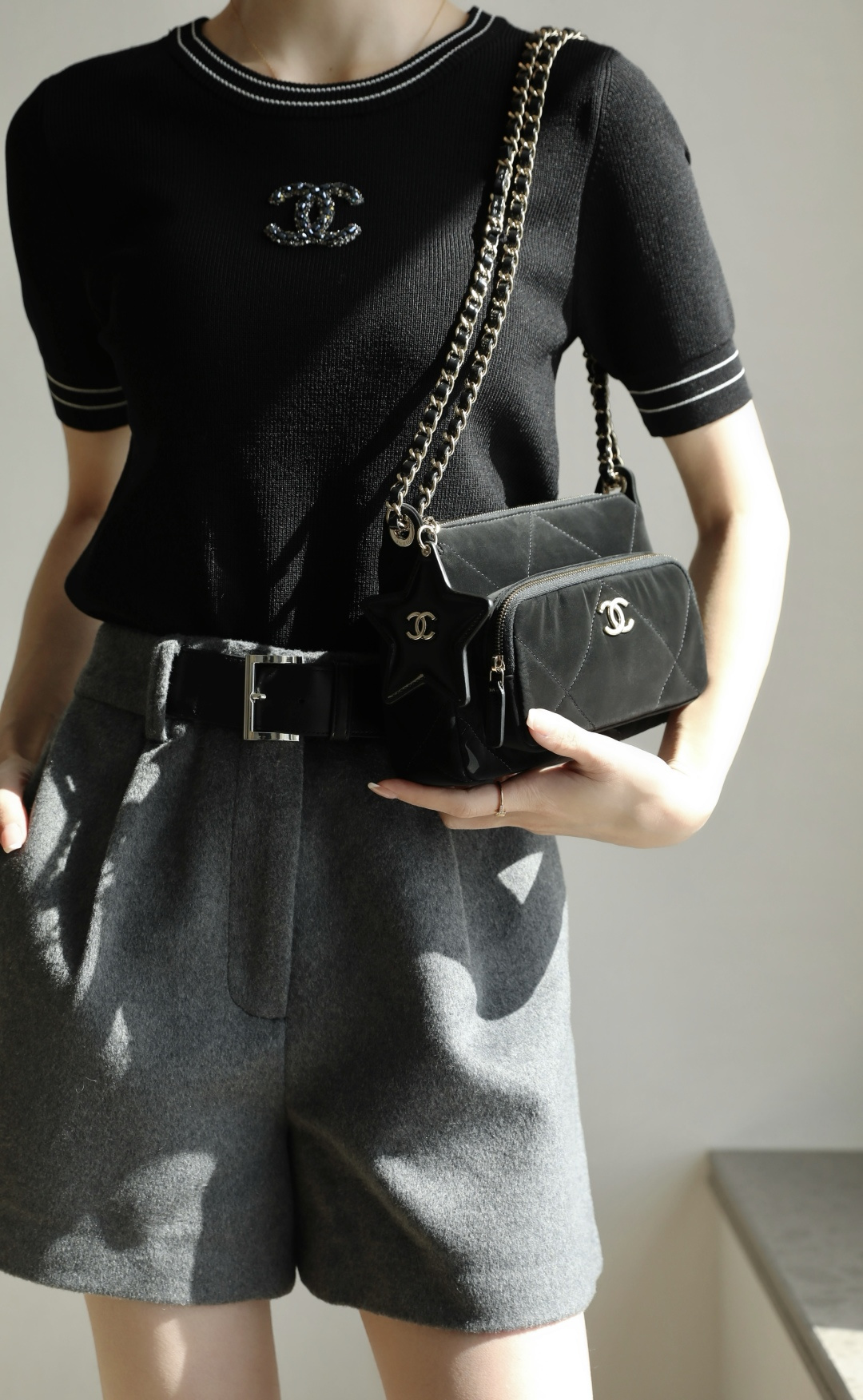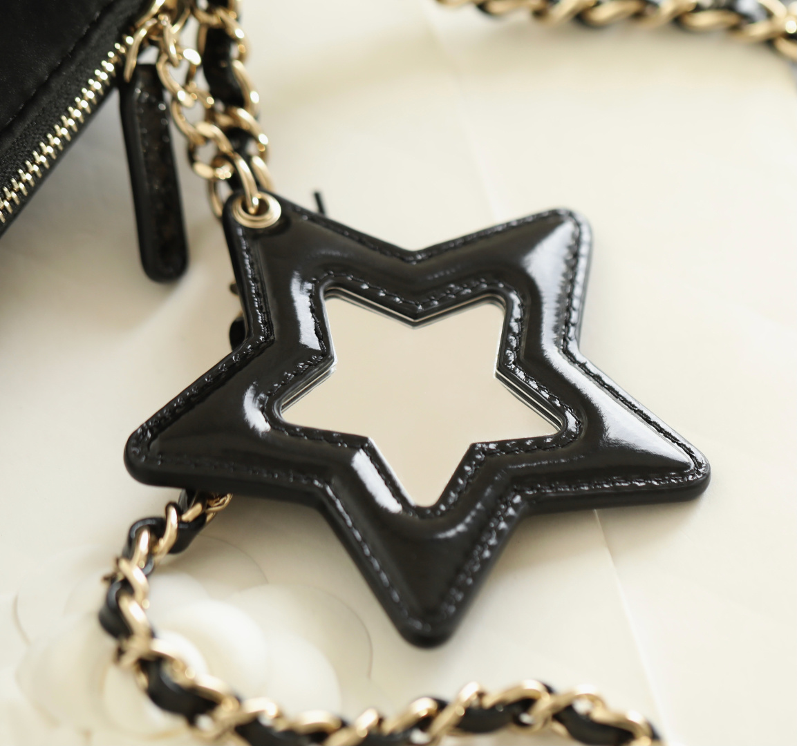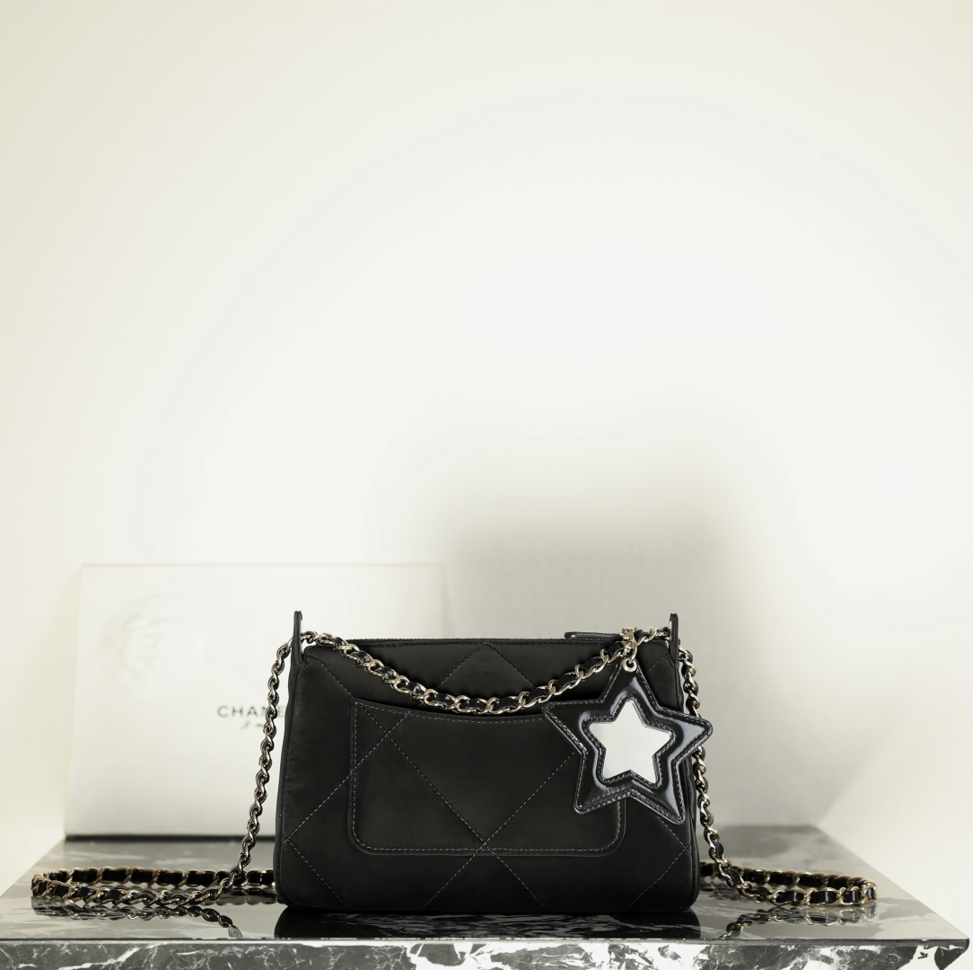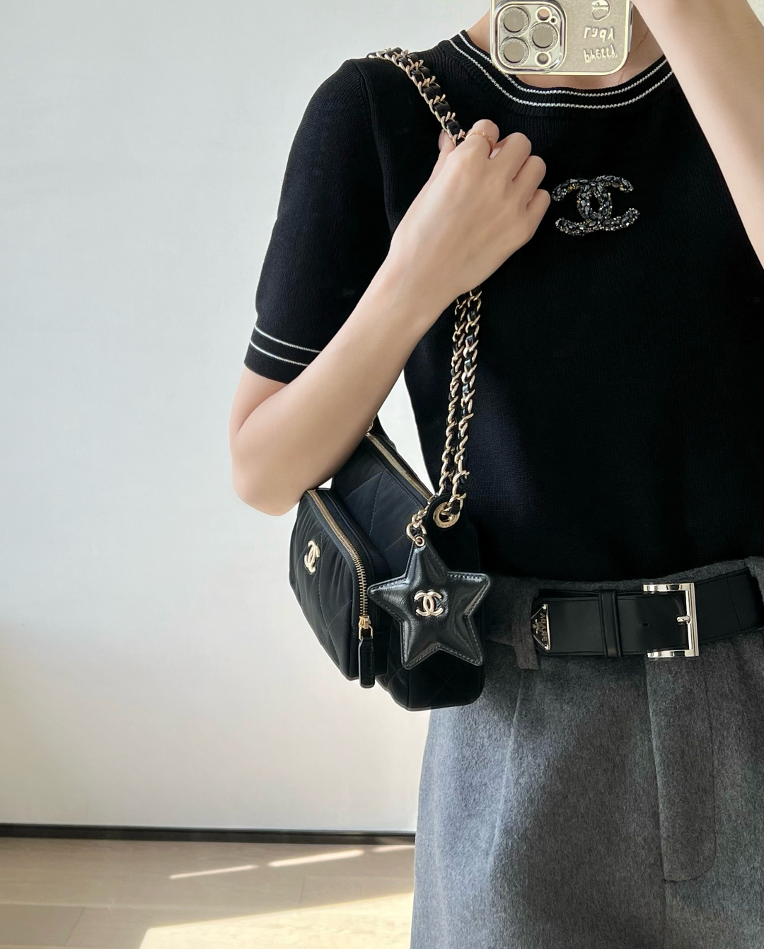 𝟮𝟱𝗡全新𝗖𝗼𝗰𝗼 𝗡𝗲𝗶𝗴𝗲滑雪系列 星星挂饰相机包黑色♥ 专柜售价𝟥𝟣𝟧𝟢𝟢𝗋𝗆𝖻购入开发~ 火热上线𝖢𝗈𝖼𝗈𝖭𝖾𝗂𝗀𝖾链条小挎包 直接把甜酷氛围感焊在身上了! 软乎乎的,摸起来像云朵一样☁️ 丝绒面料配上星星挂饰小镜子🪞 瞬间戳中少女心又带点拽姐范儿~ 五金:厚镀𝟣𝟦𝖪淡金扣 皮料:定制丝光绸面料 尺寸:𝟣𝟧*𝟤𝟣*𝟩.𝟨 𝖼𝗆