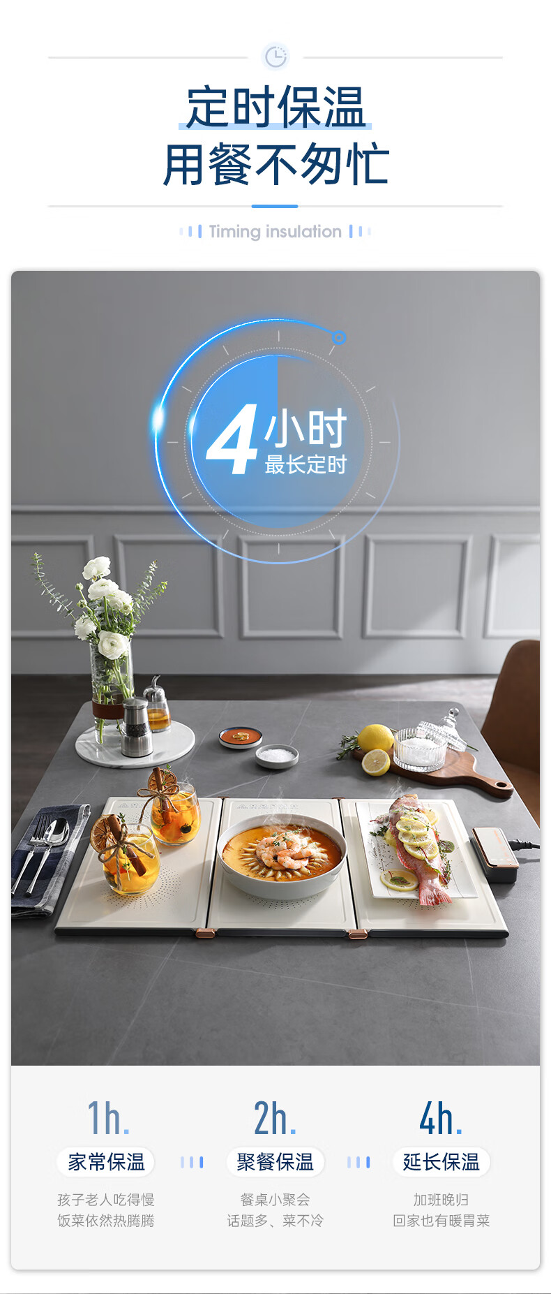 摩飞电器(Morphyrichards)折叠暖菜板 饭菜保温板热菜板 加热桌垫菜板 纤薄机身开合设计 不挑锅具定时饭菜保温神器 MR8300