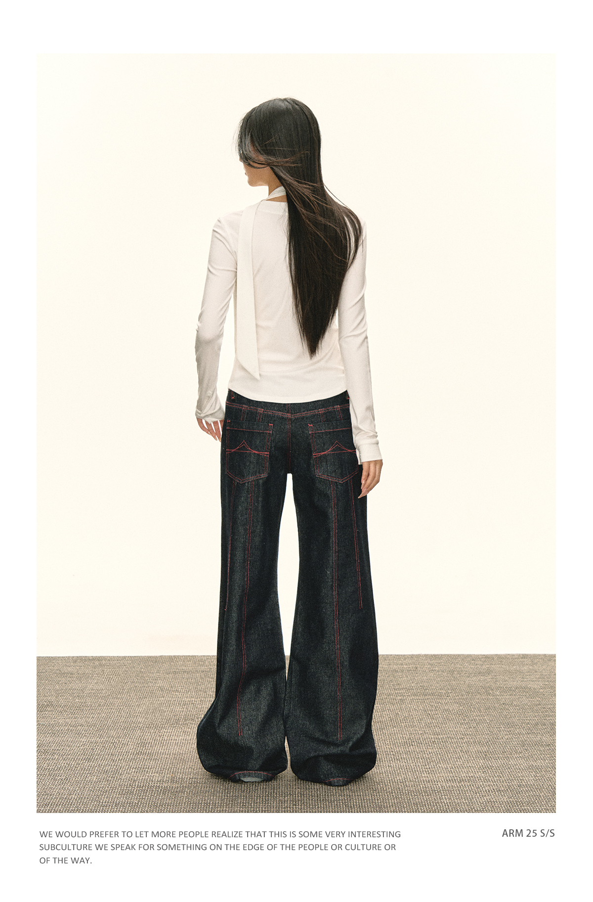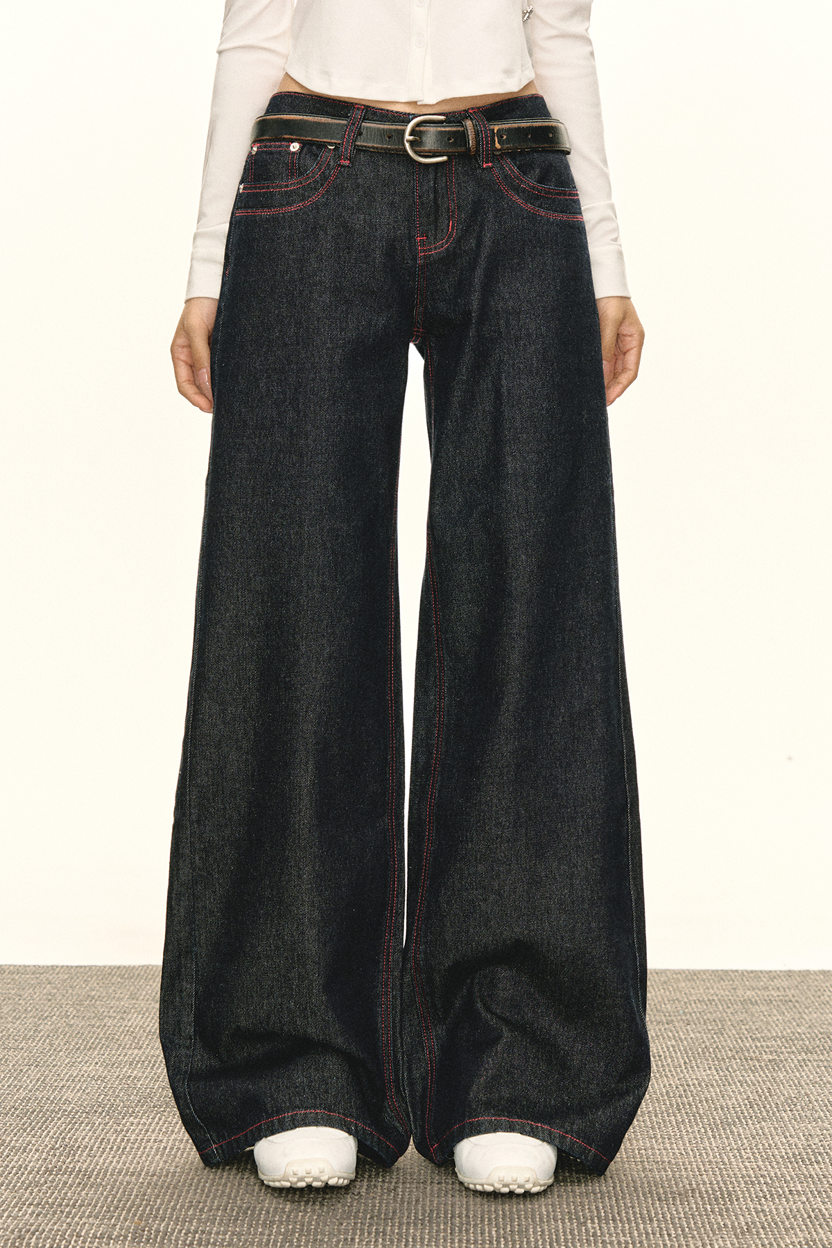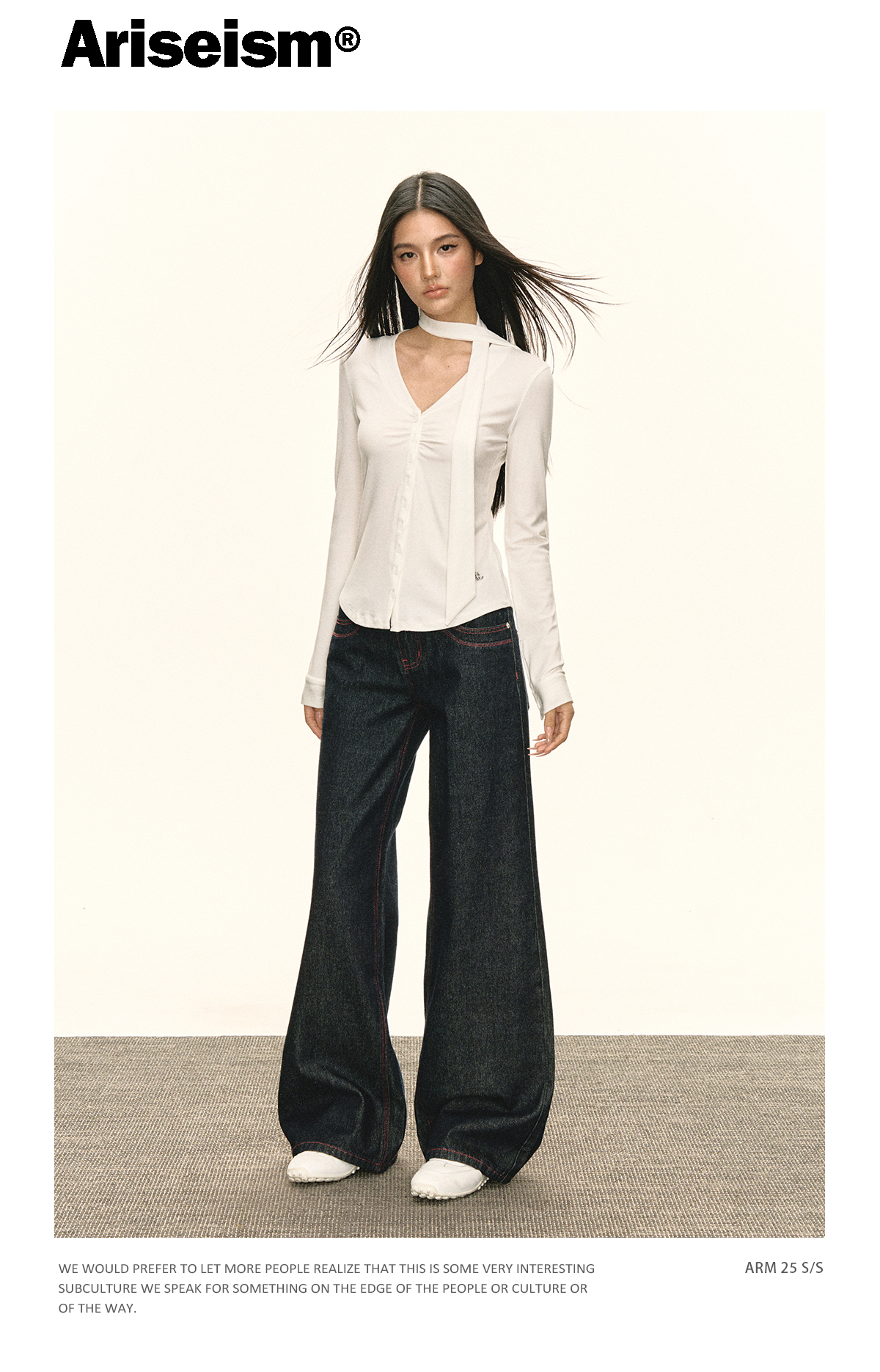 Ariseism 美式复古设计感阔腿深色牛仔裤秋季新款长裤子