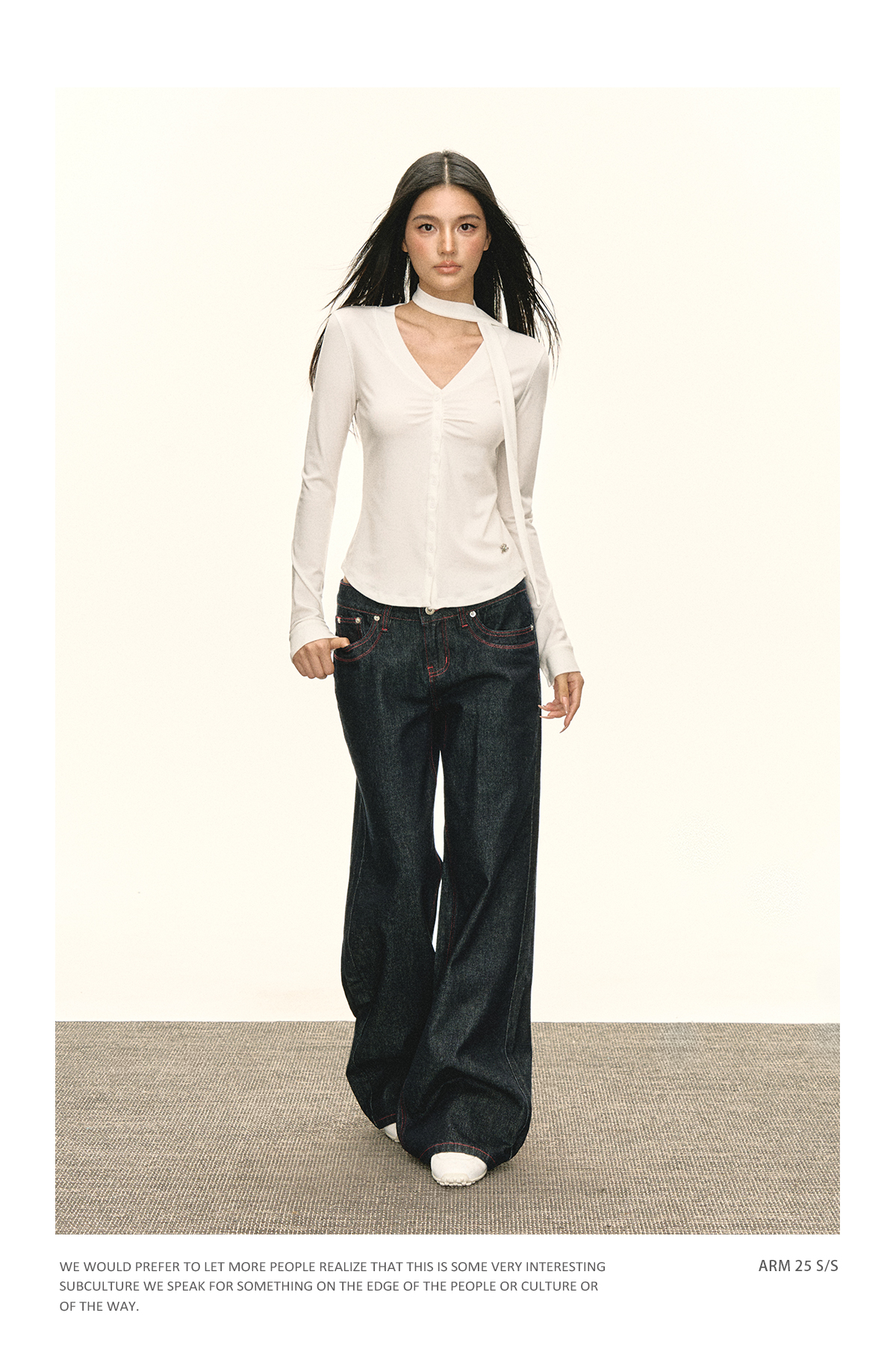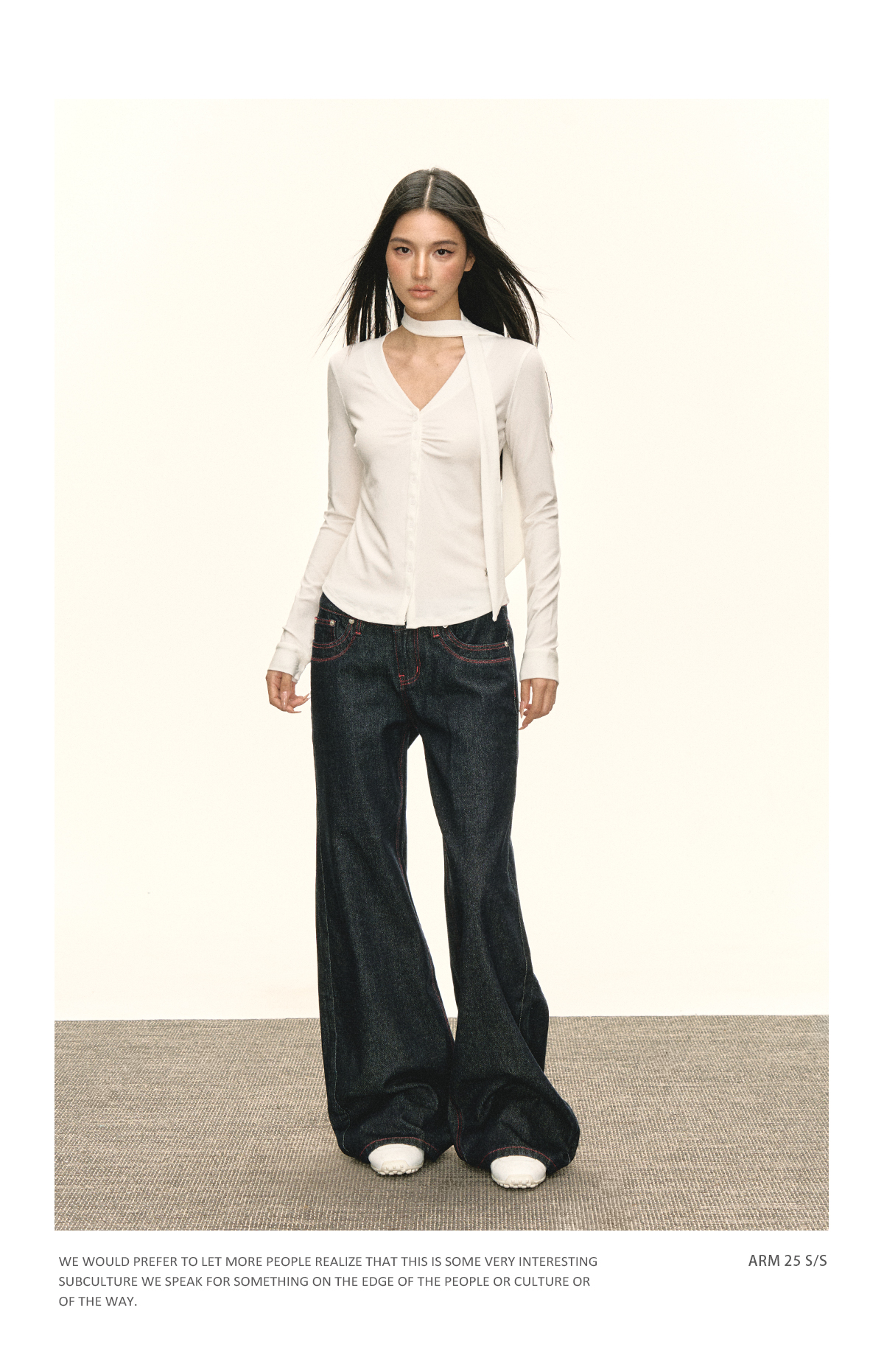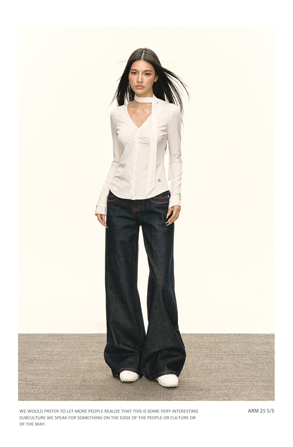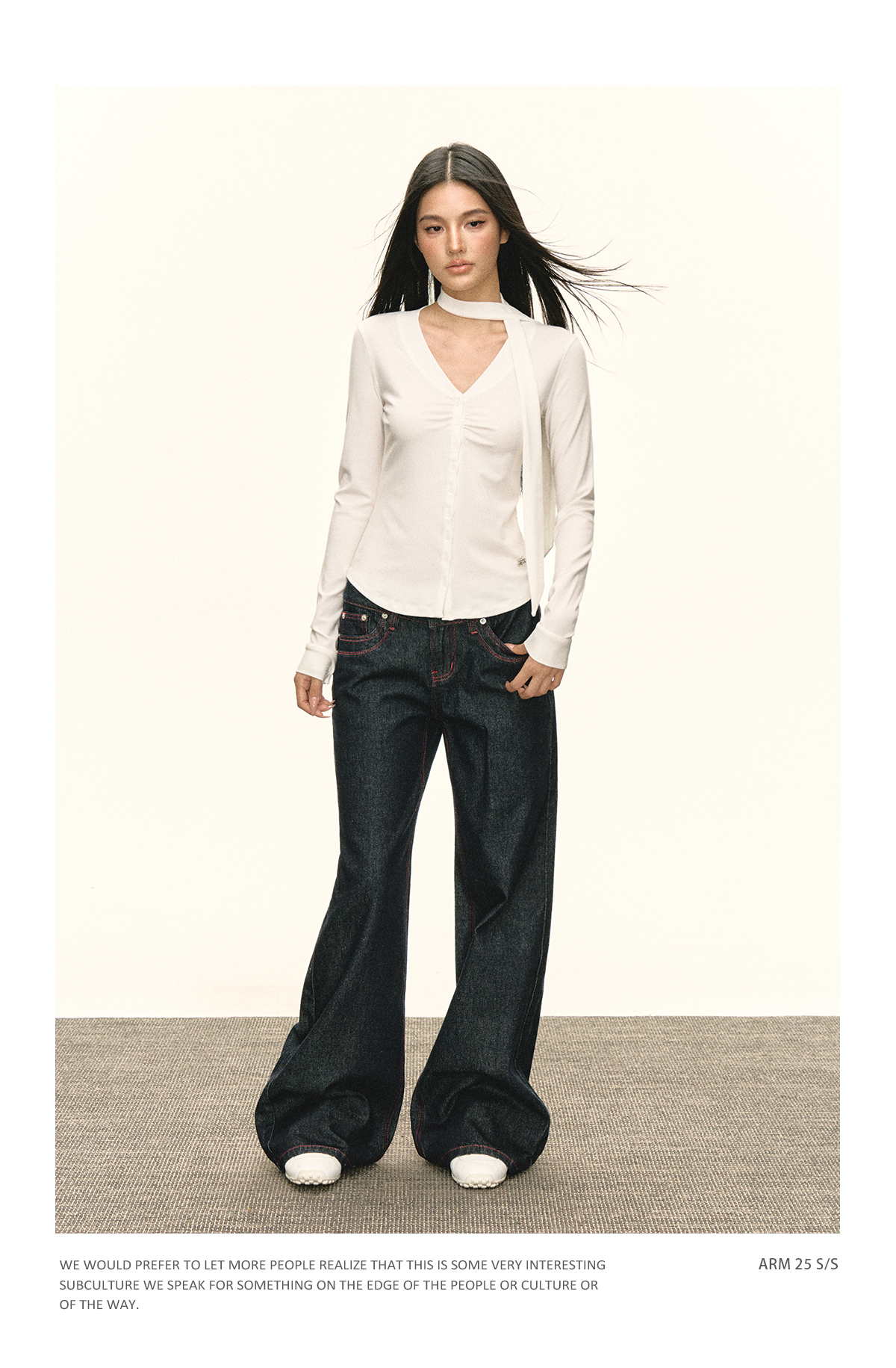 Ariseism 美式复古设计感阔腿深色牛仔裤秋季新款长裤子