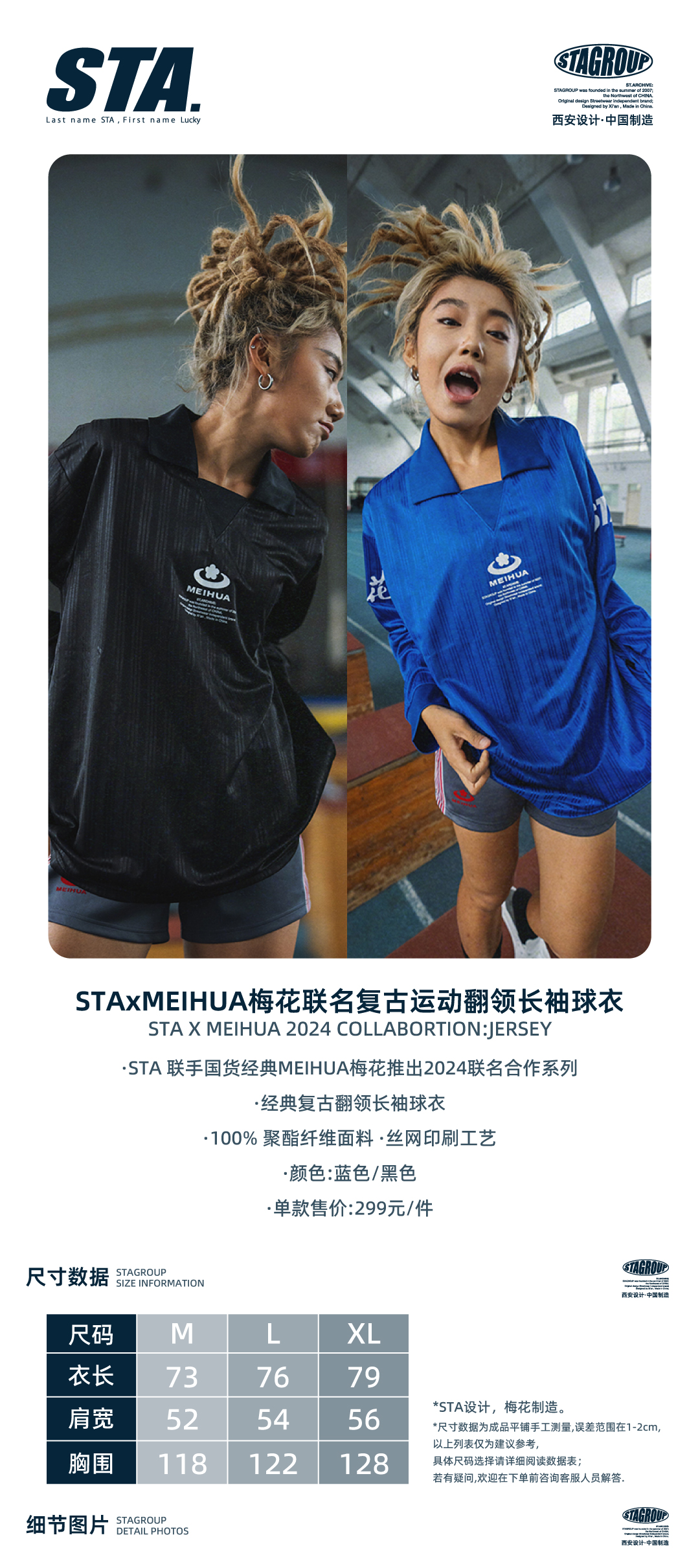 STAxMEIHUA梅花联名复古运动翻领长袖球衣