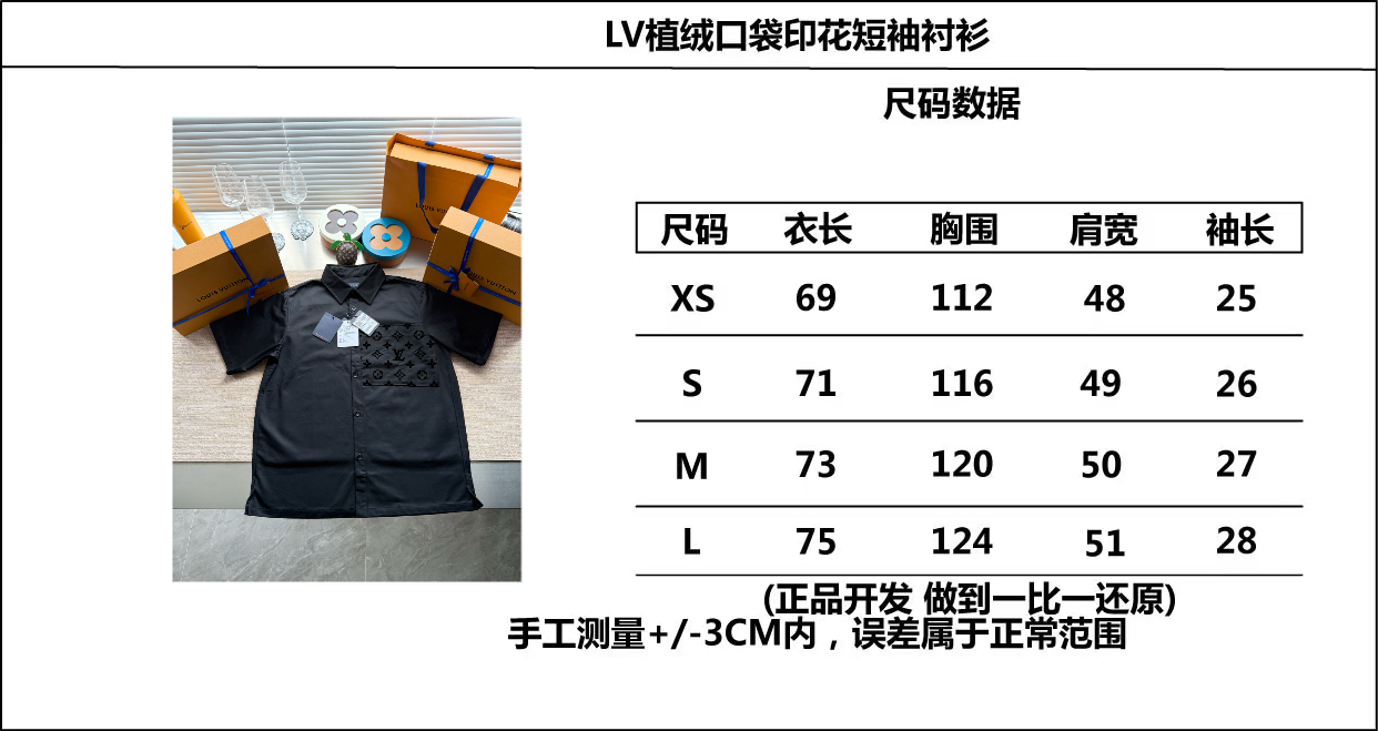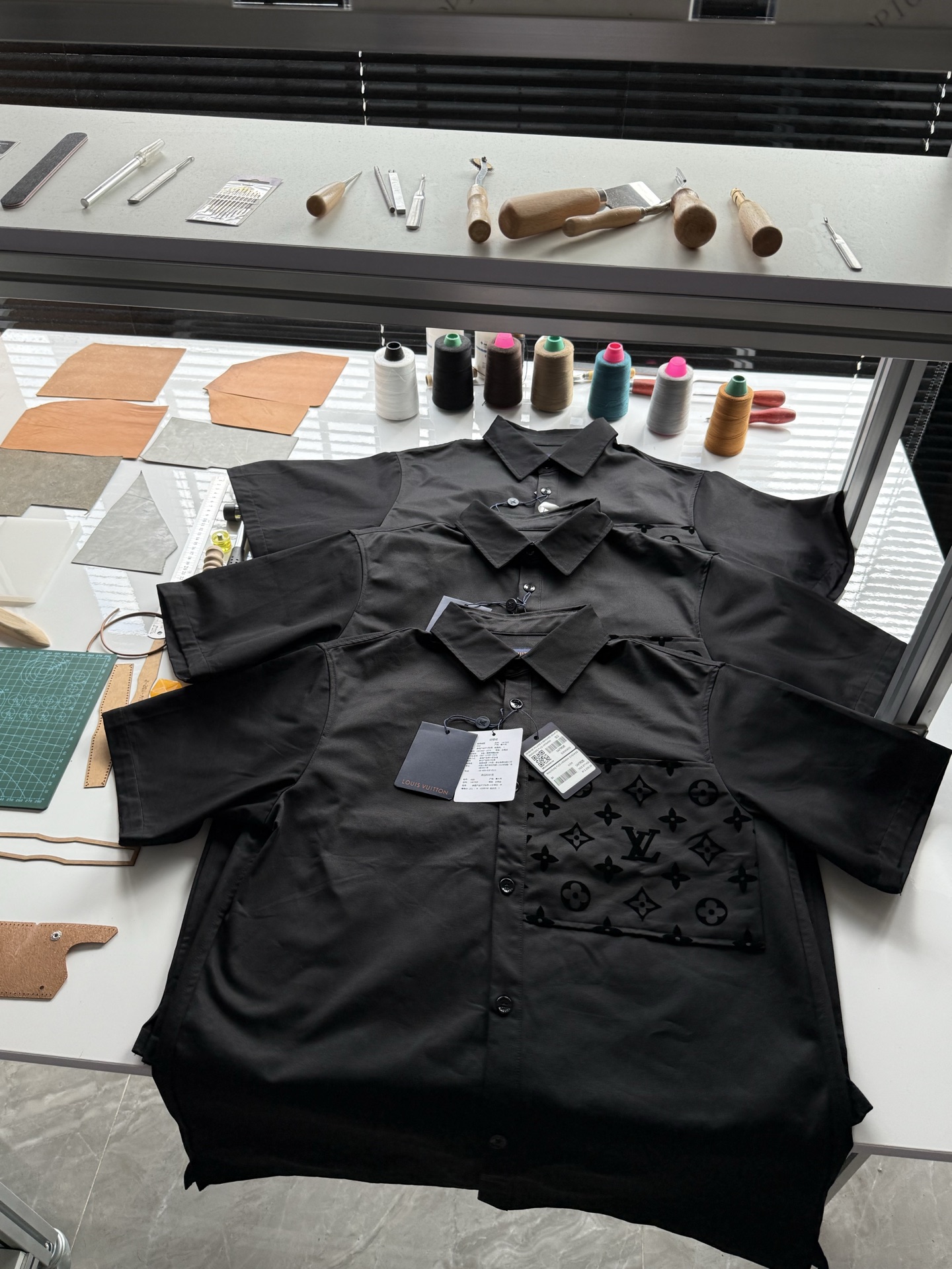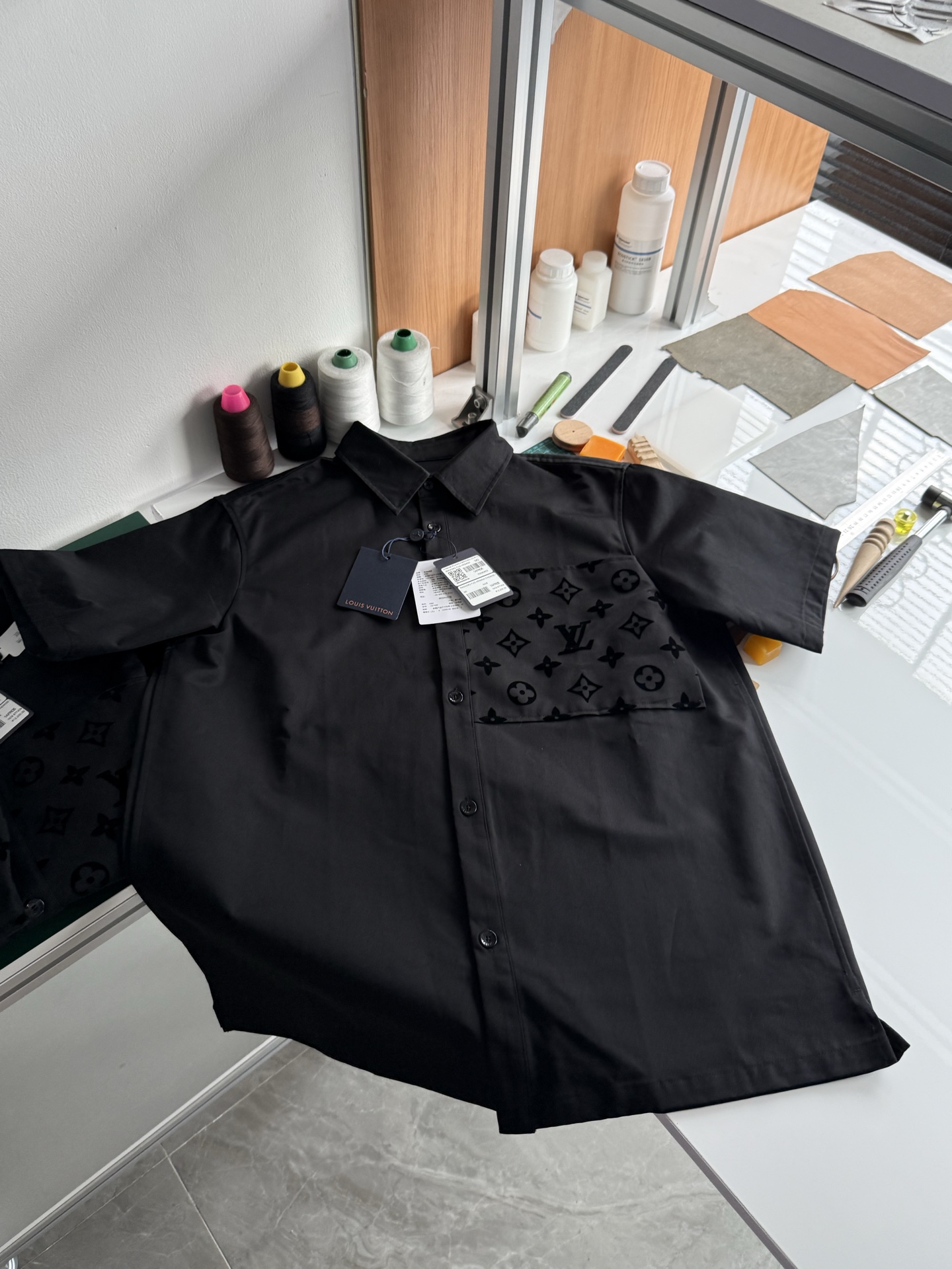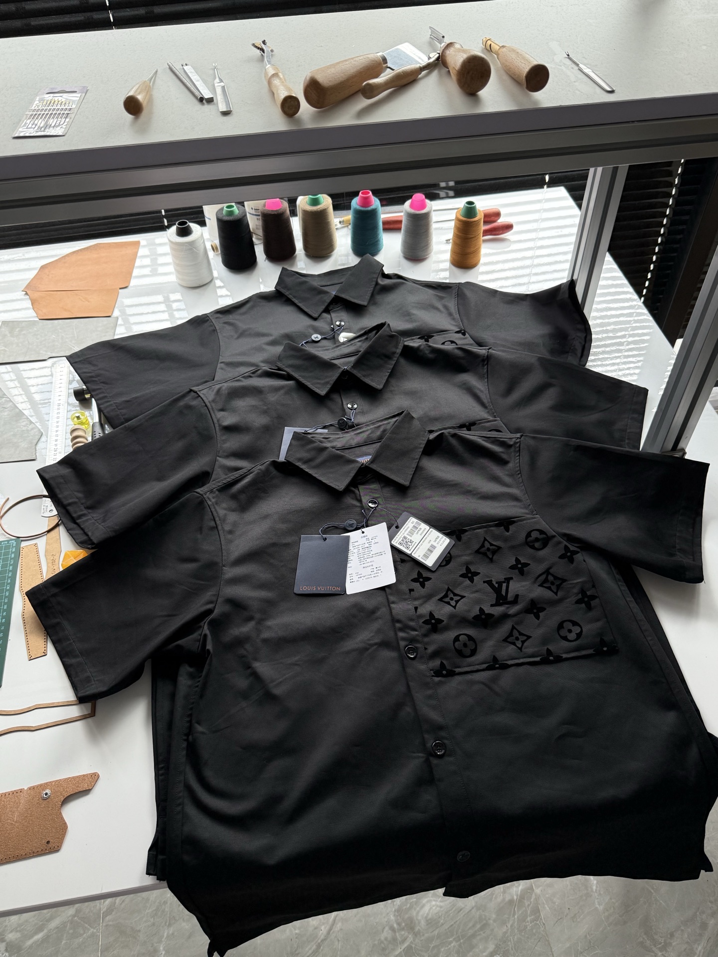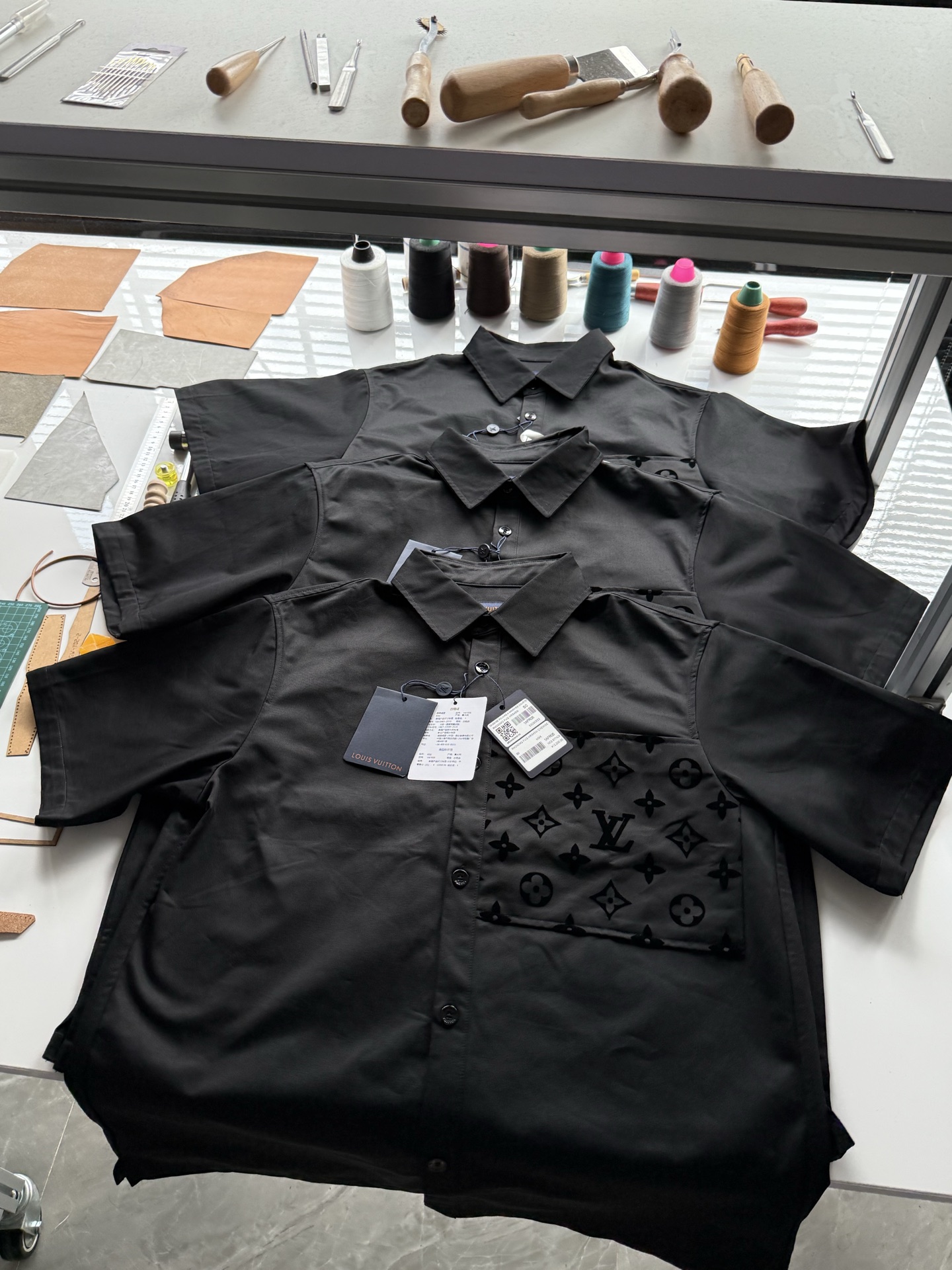 Louis Vuitton25ss植绒口袋印花短袖衬衫‼️整件衣服12200购买ZP拆解打造,采用定制棉质混纺面料,意大利进口制造,胸前贴袋设计,饰以Monogram植绒花卉,门襟开模定制LV字母标识镀金纽扣,真正做到1:1copy 码数:XS S M L