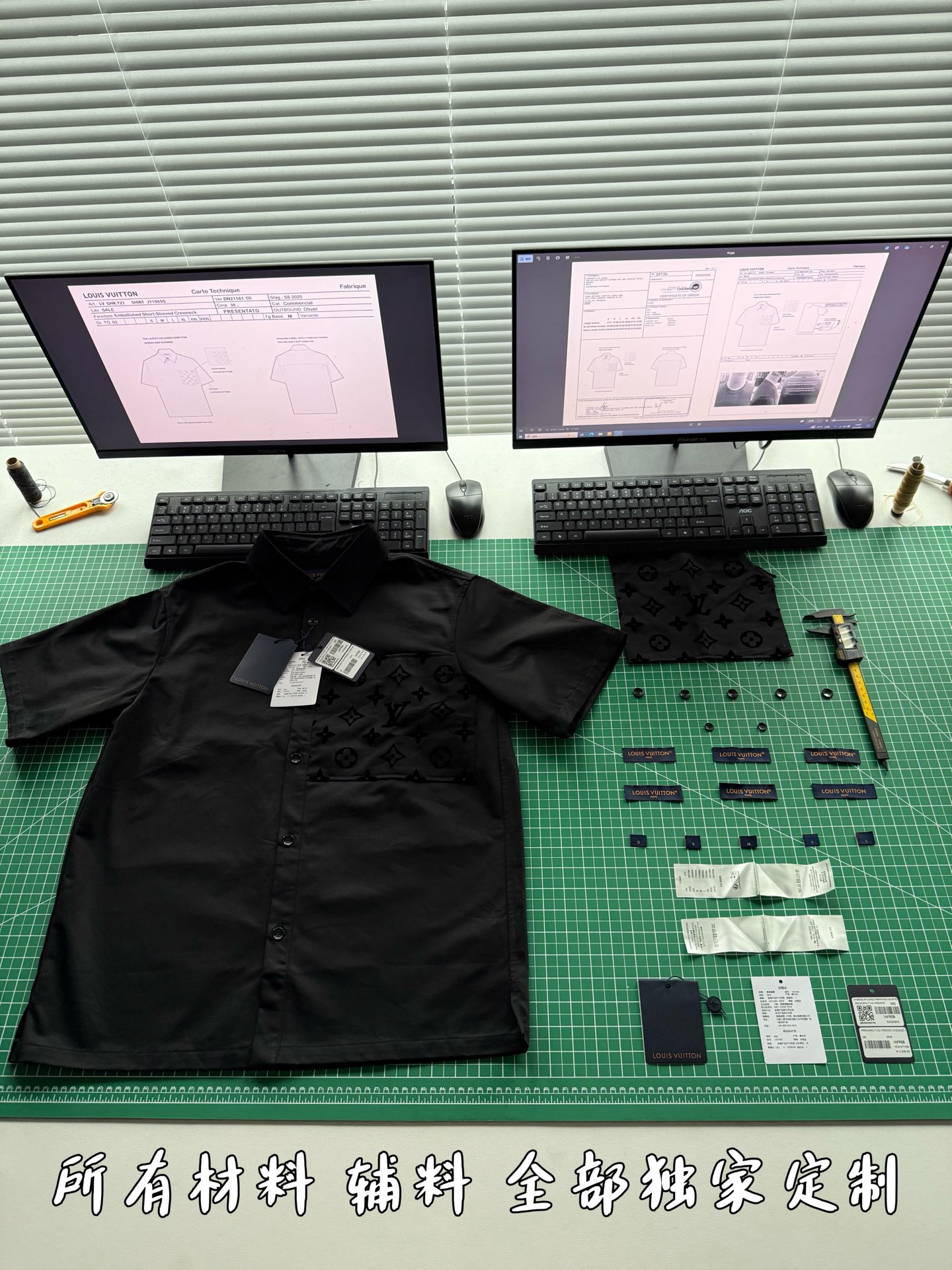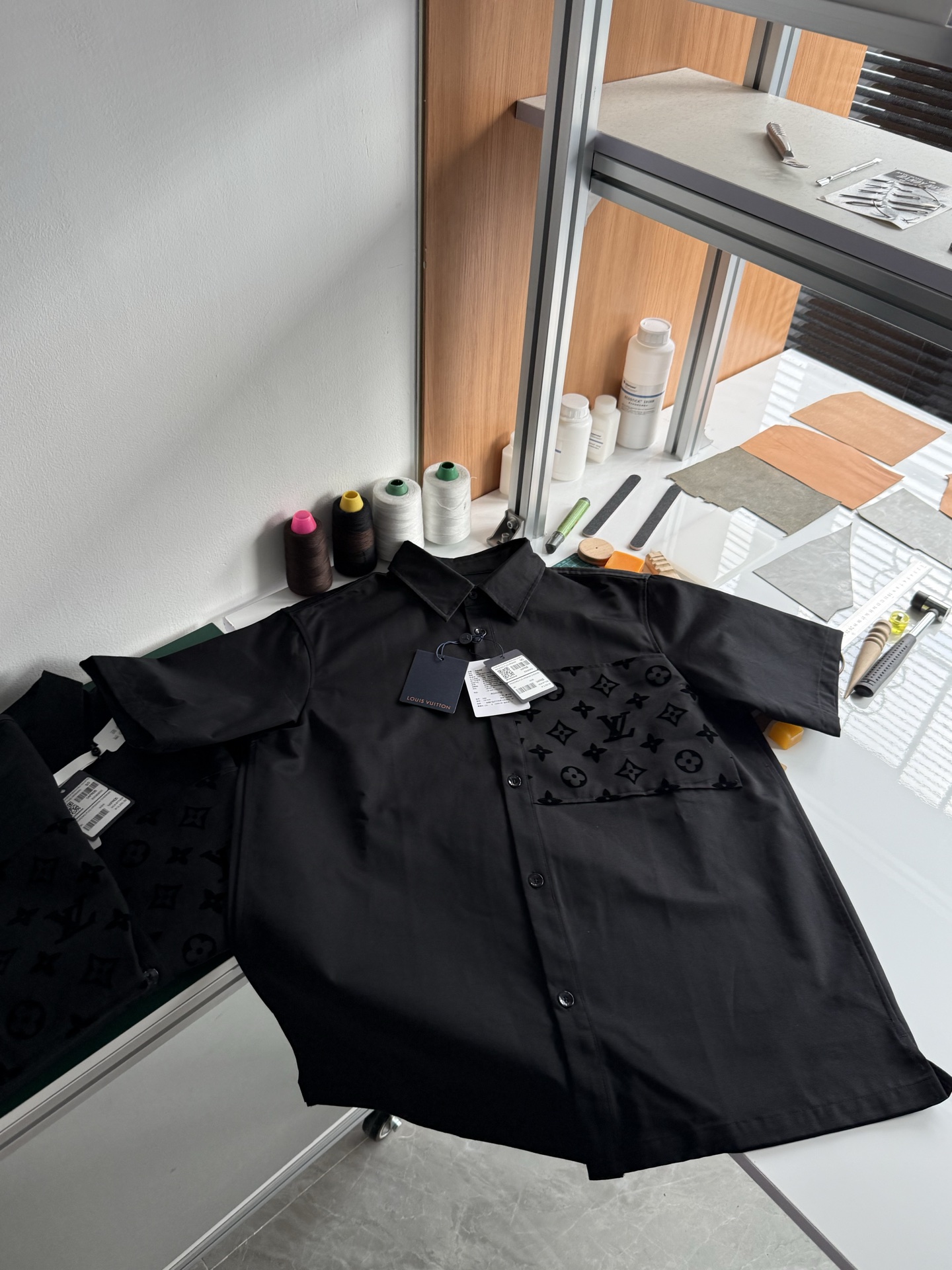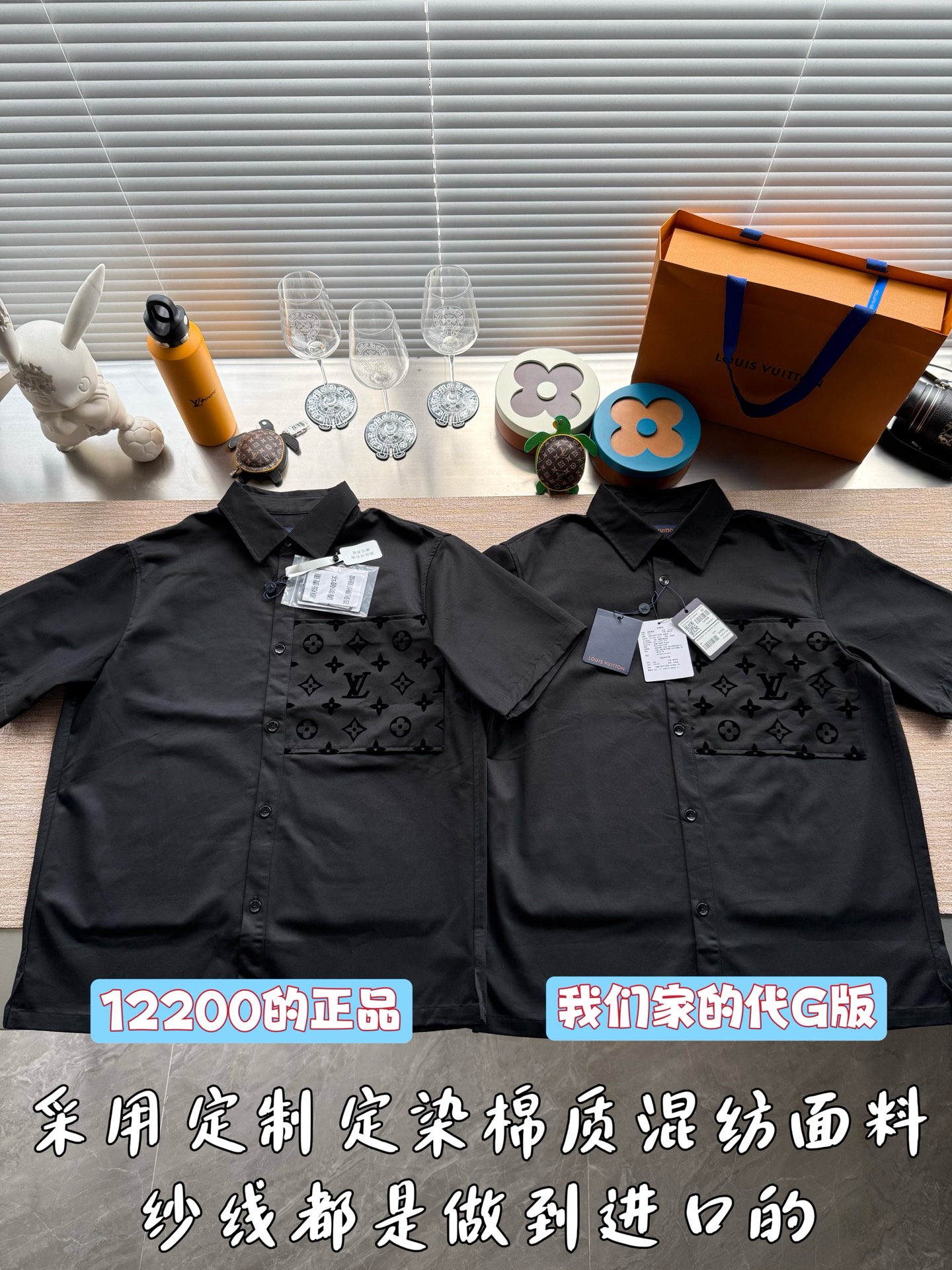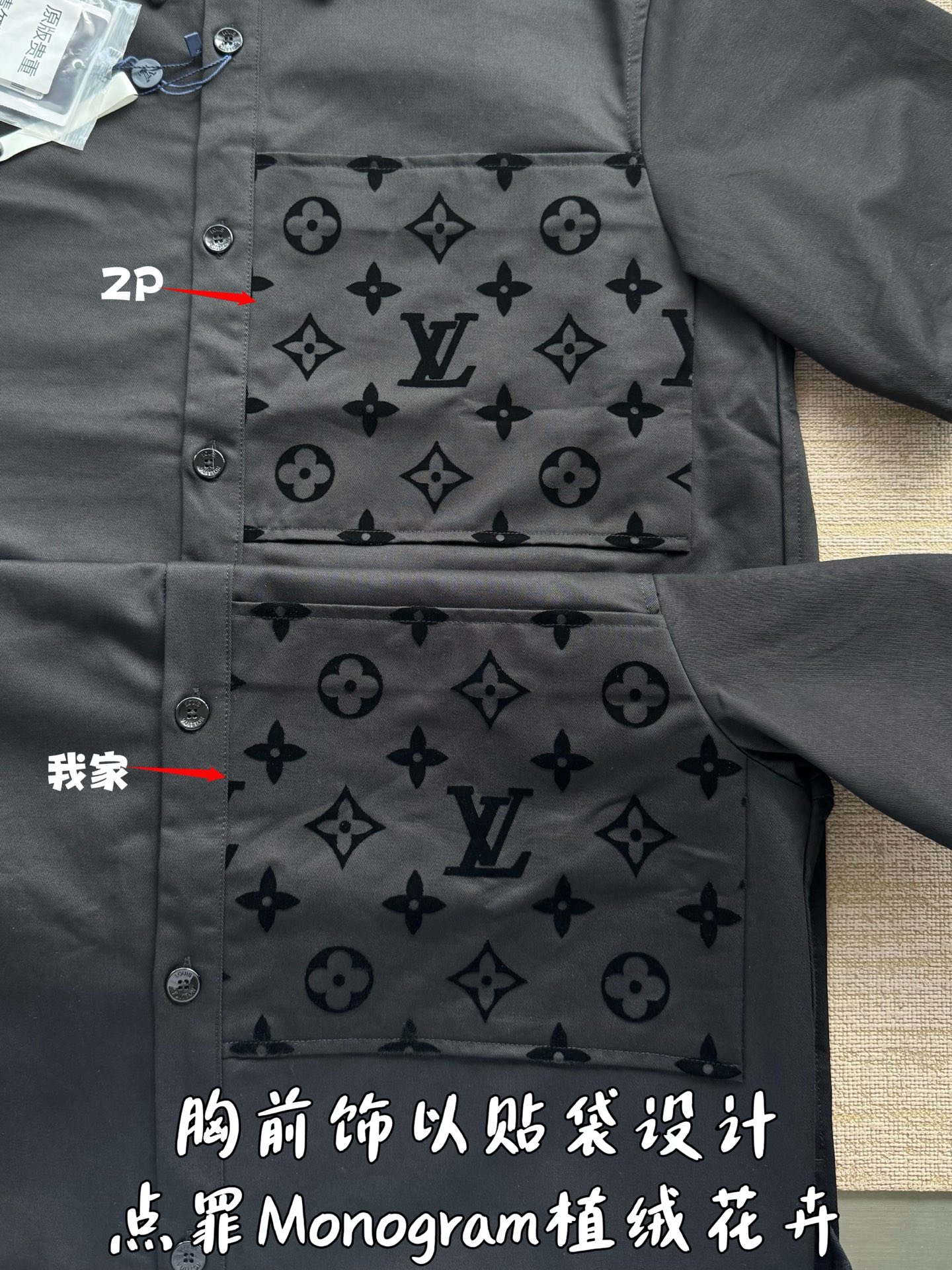 Louis Vuitton25ss植绒口袋印花短袖衬衫‼️整件衣服12200购买ZP拆解打造,采用定制棉质混纺面料,意大利进口制造,胸前贴袋设计,饰以Monogram植绒花卉,门襟开模定制LV字母标识镀金纽扣,真正做到1:1copy 码数:XS S M L