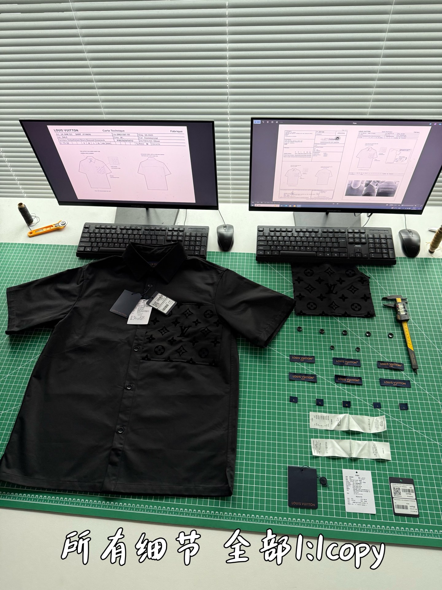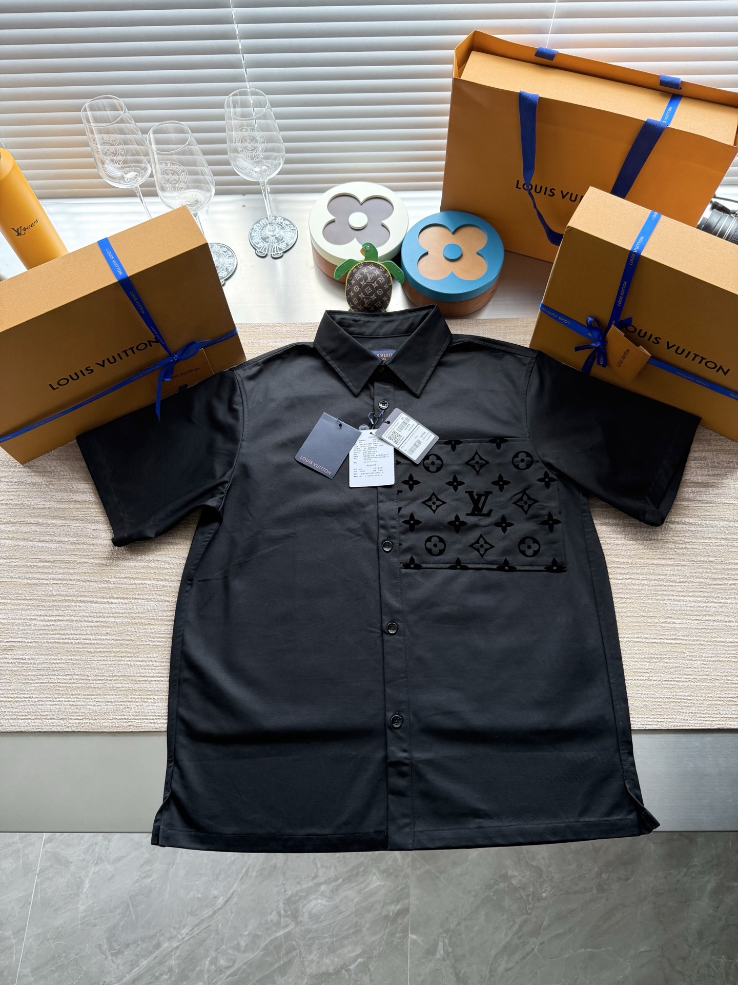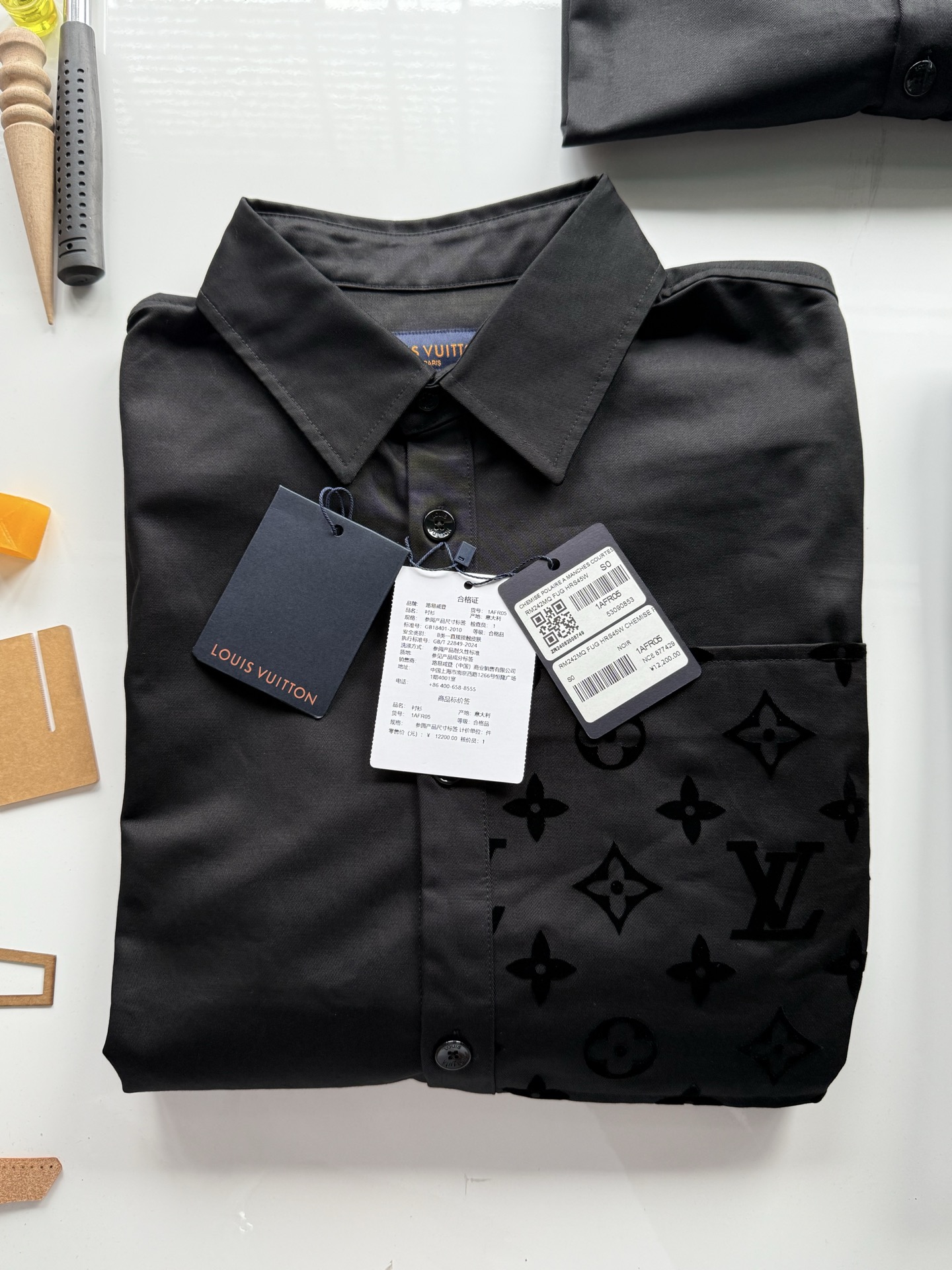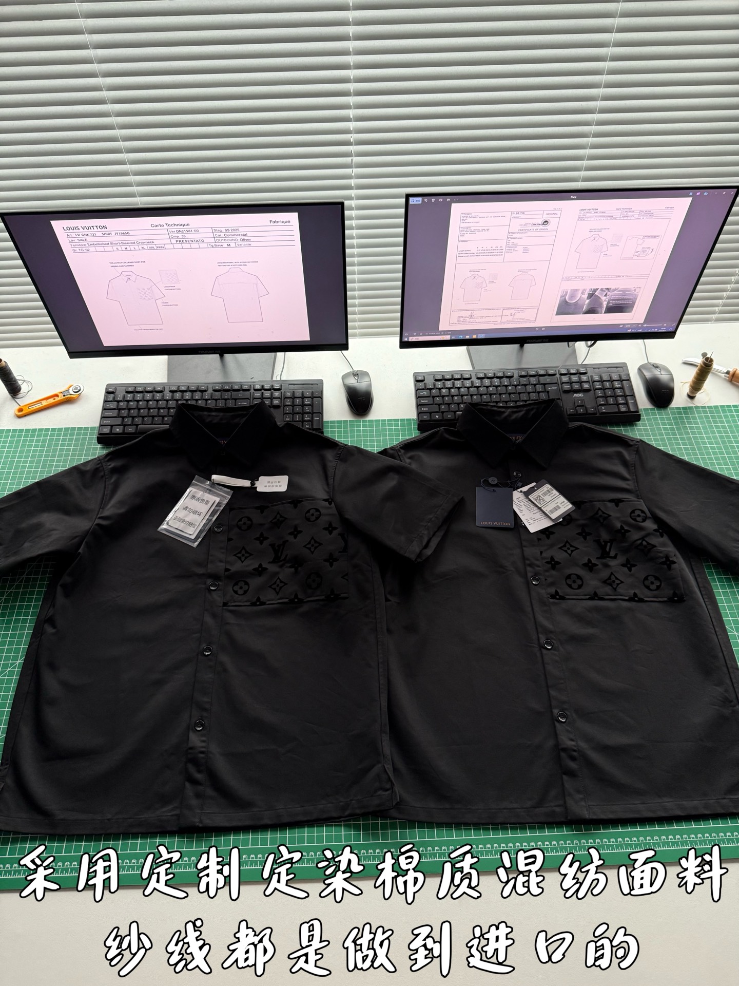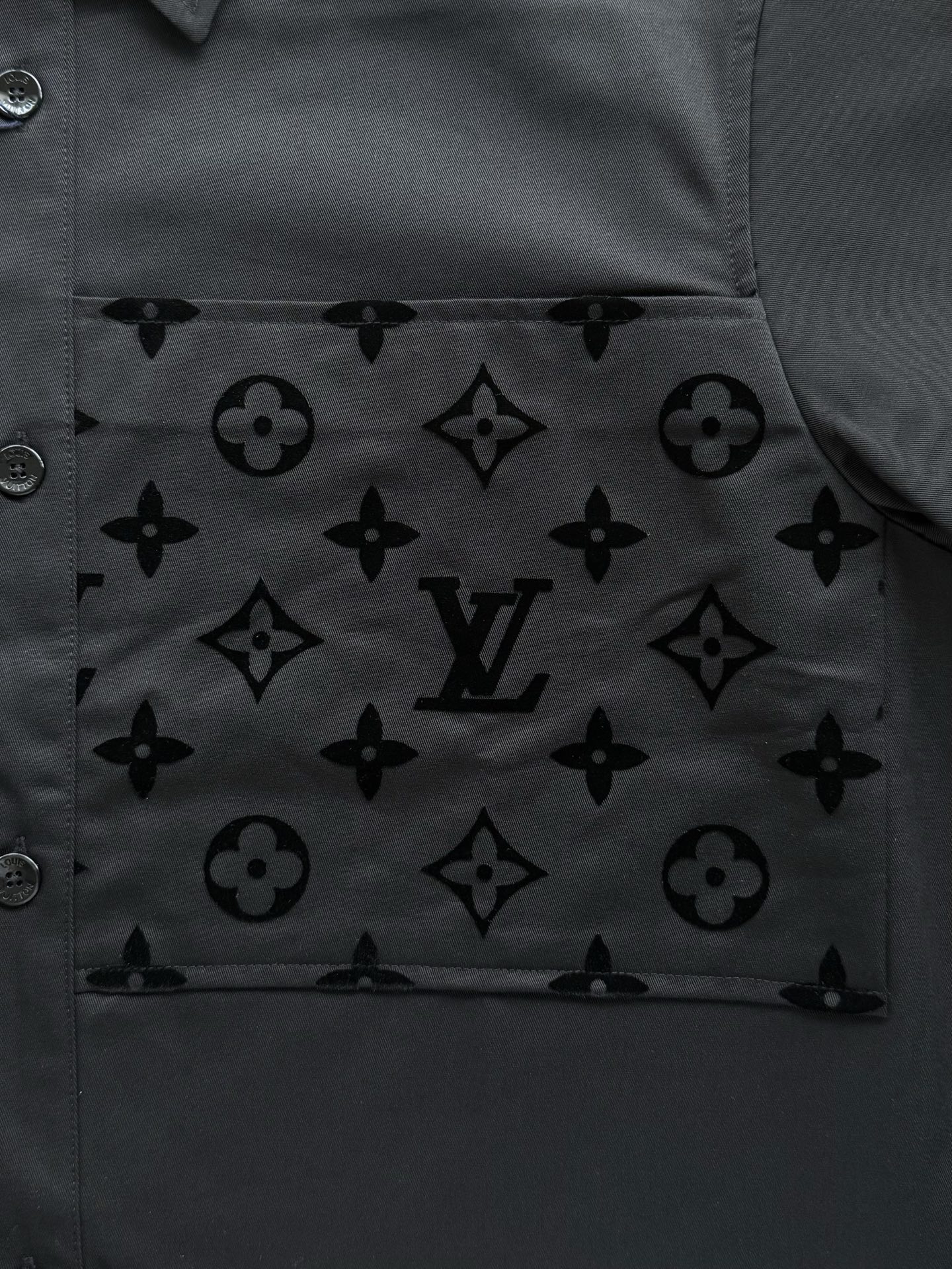 Louis Vuitton25ss植绒口袋印花短袖衬衫‼️整件衣服12200购买ZP拆解打造,采用定制棉质混纺面料,意大利进口制造,胸前贴袋设计,饰以Monogram植绒花卉,门襟开模定制LV字母标识镀金纽扣,真正做到1:1copy 码数:XS S M L