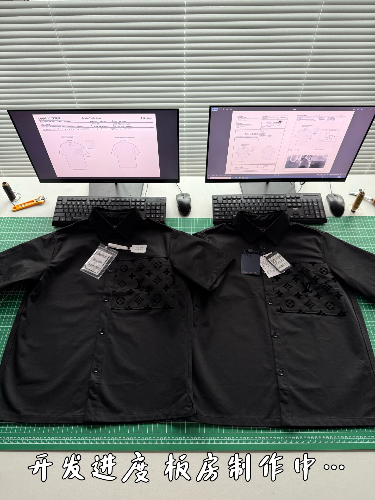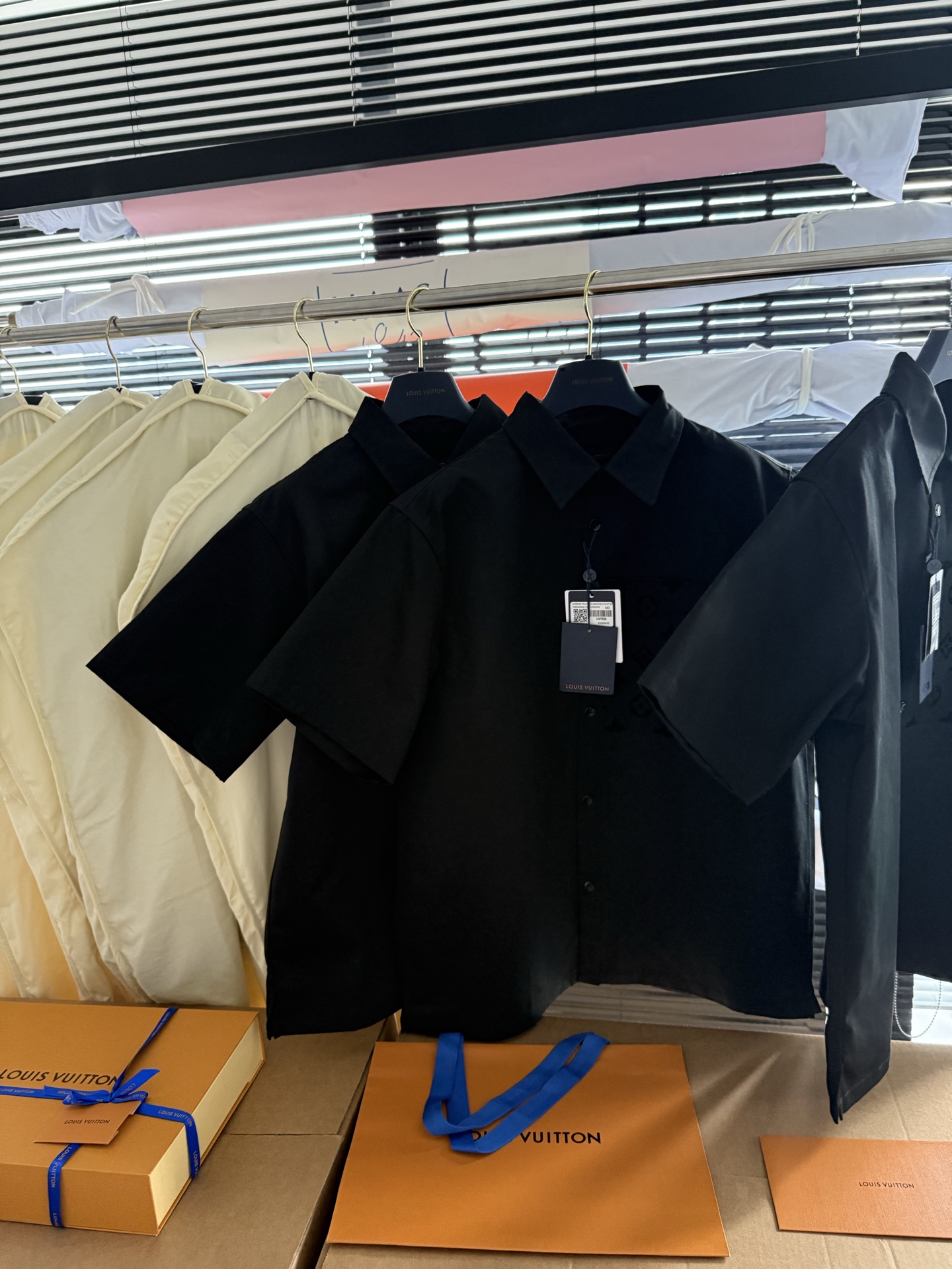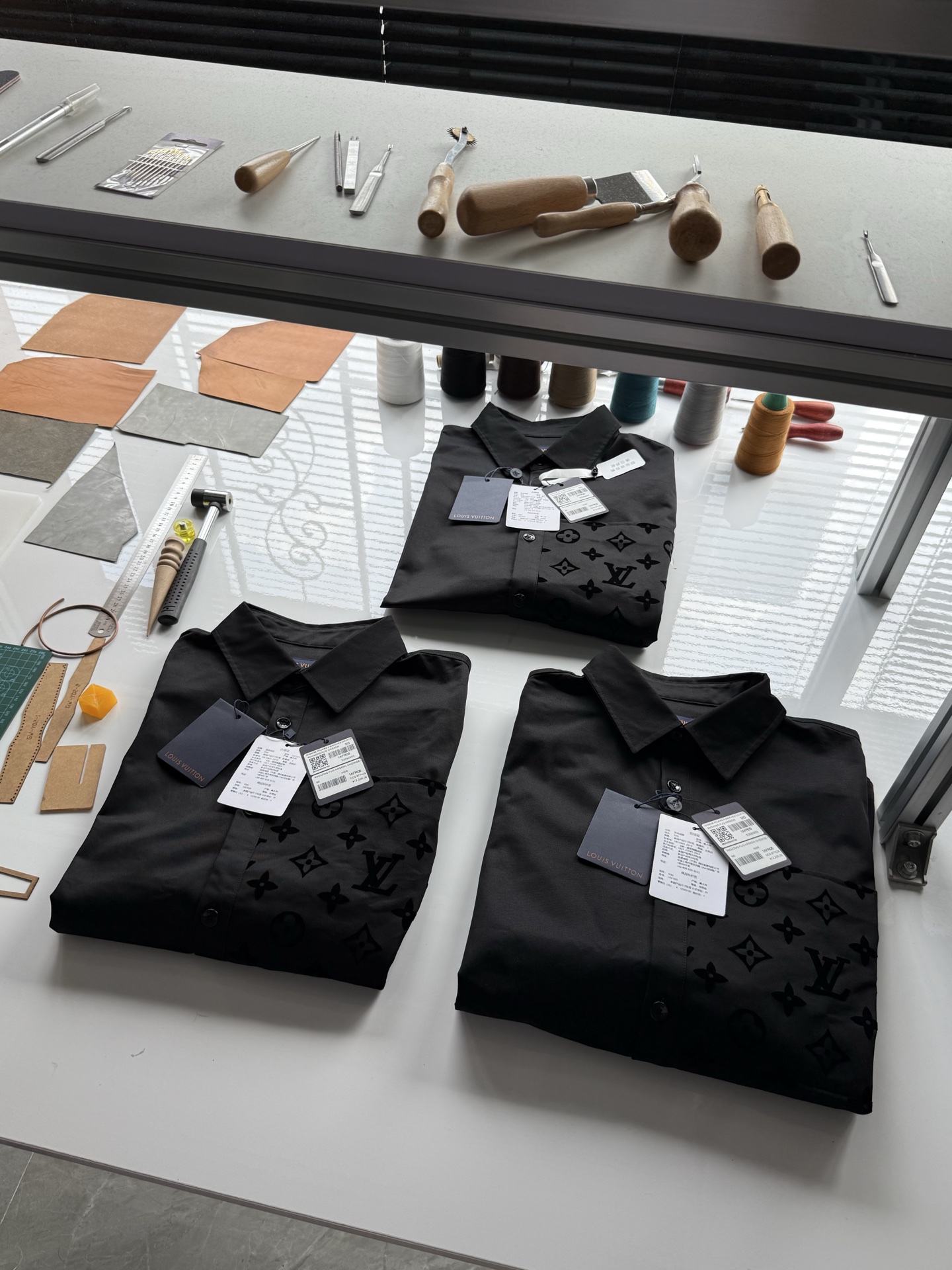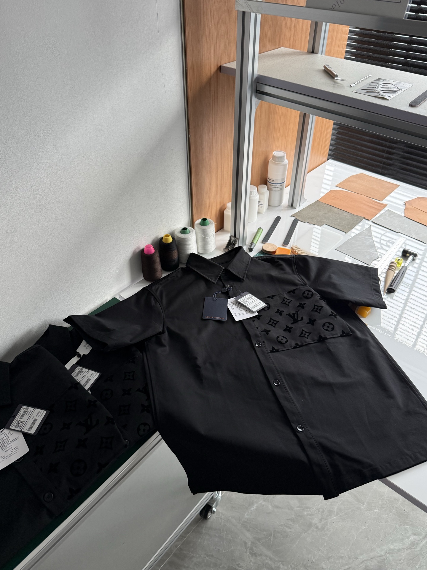 Louis Vuitton25ss植绒口袋印花短袖衬衫‼️整件衣服12200购买ZP拆解打造,采用定制棉质混纺面料,意大利进口制造,胸前贴袋设计,饰以Monogram植绒花卉,门襟开模定制LV字母标识镀金纽扣,真正做到1:1copy 码数:XS S M L