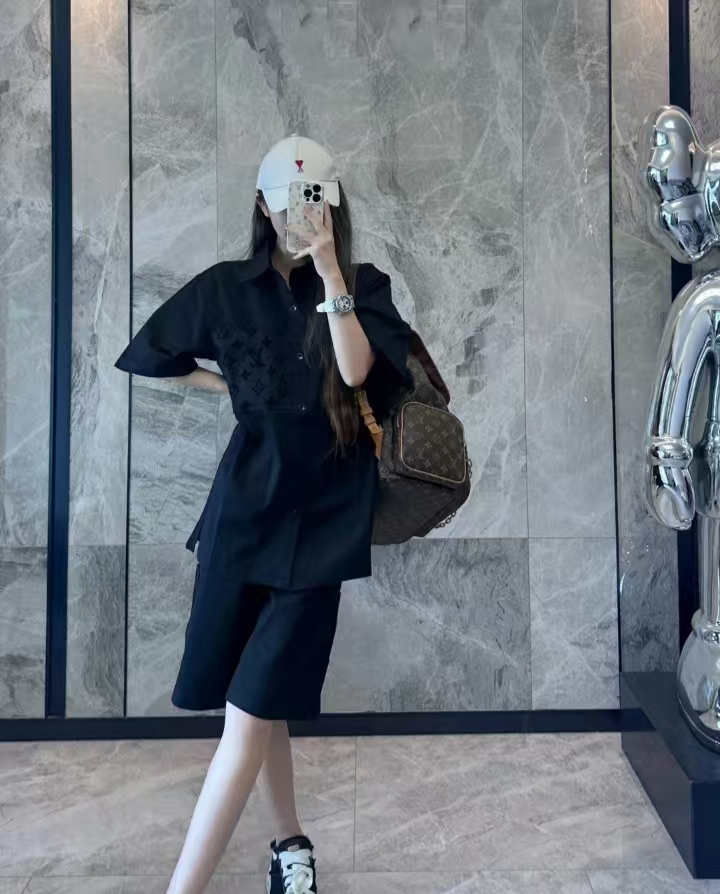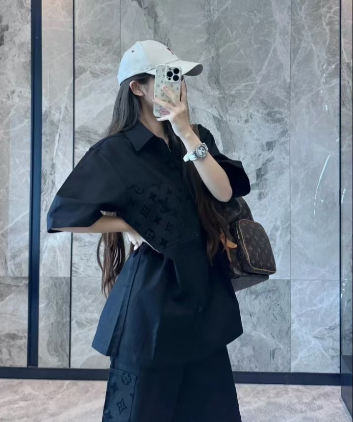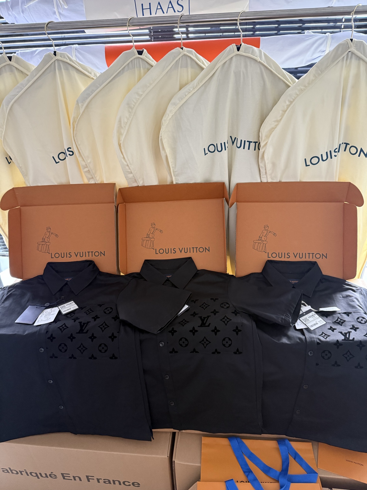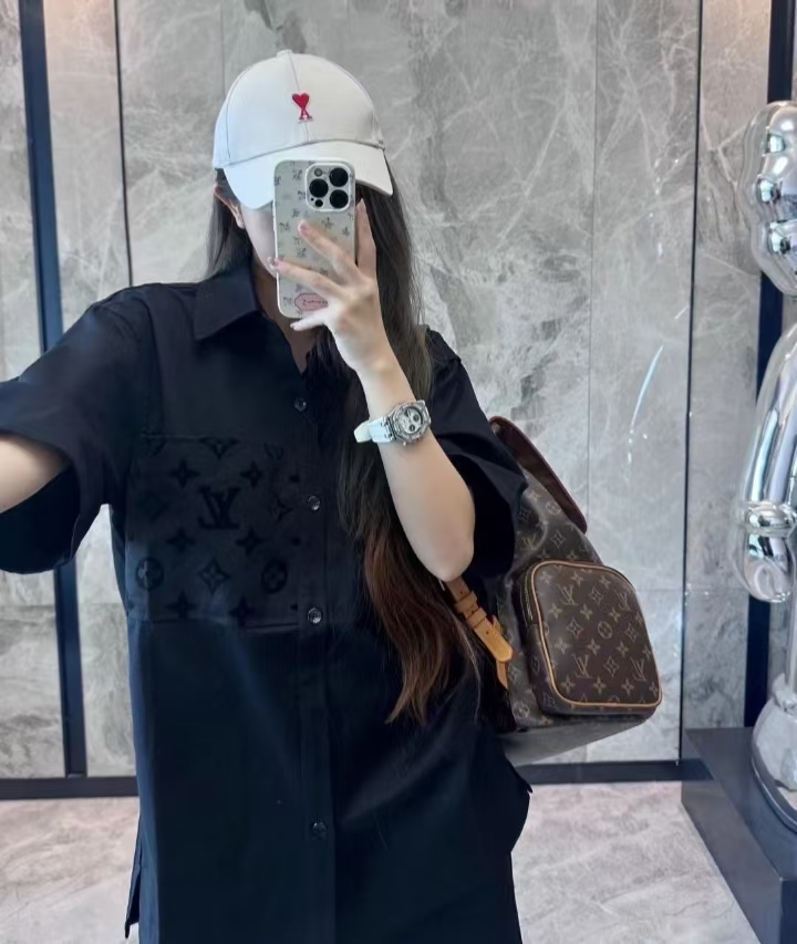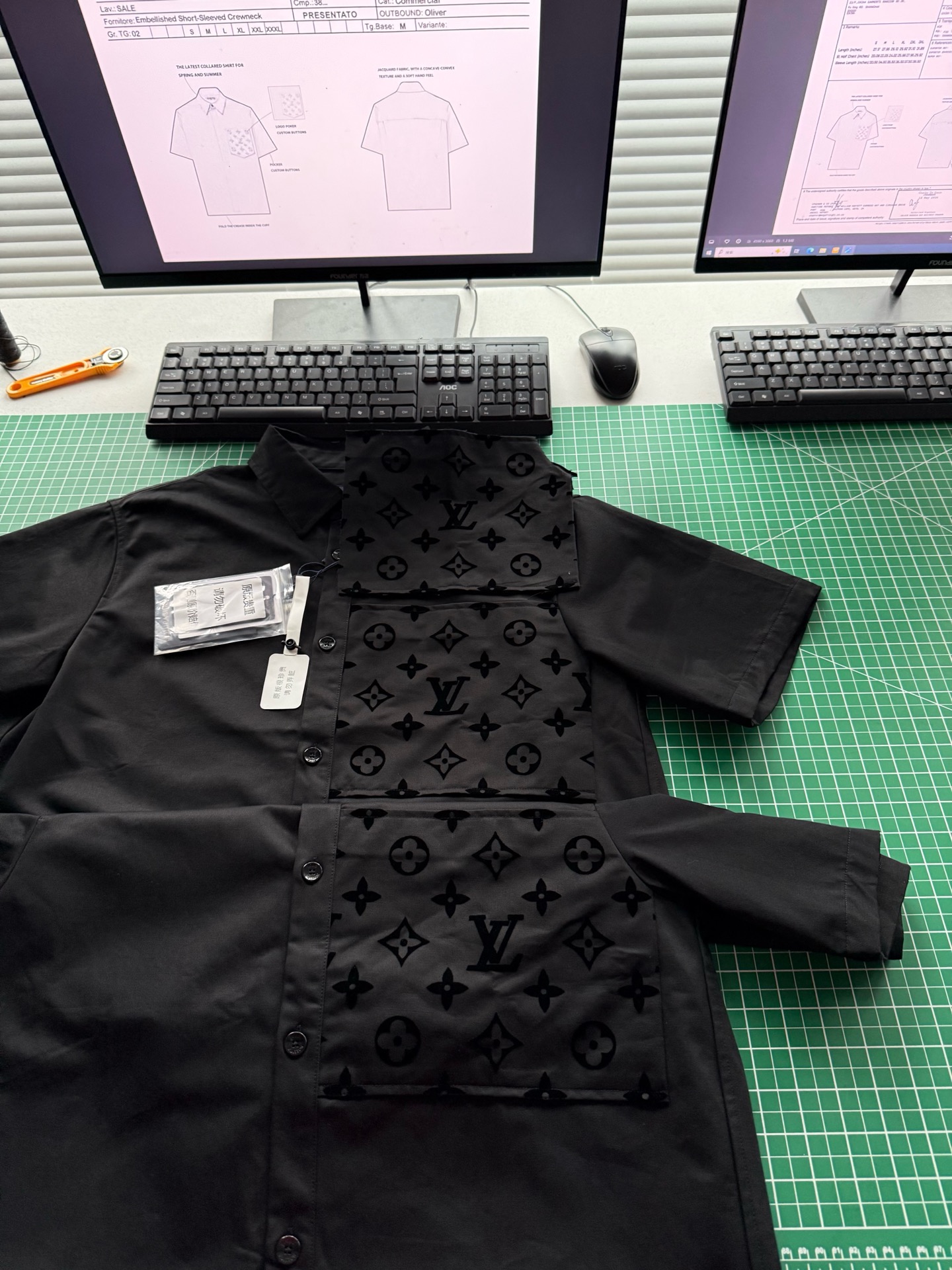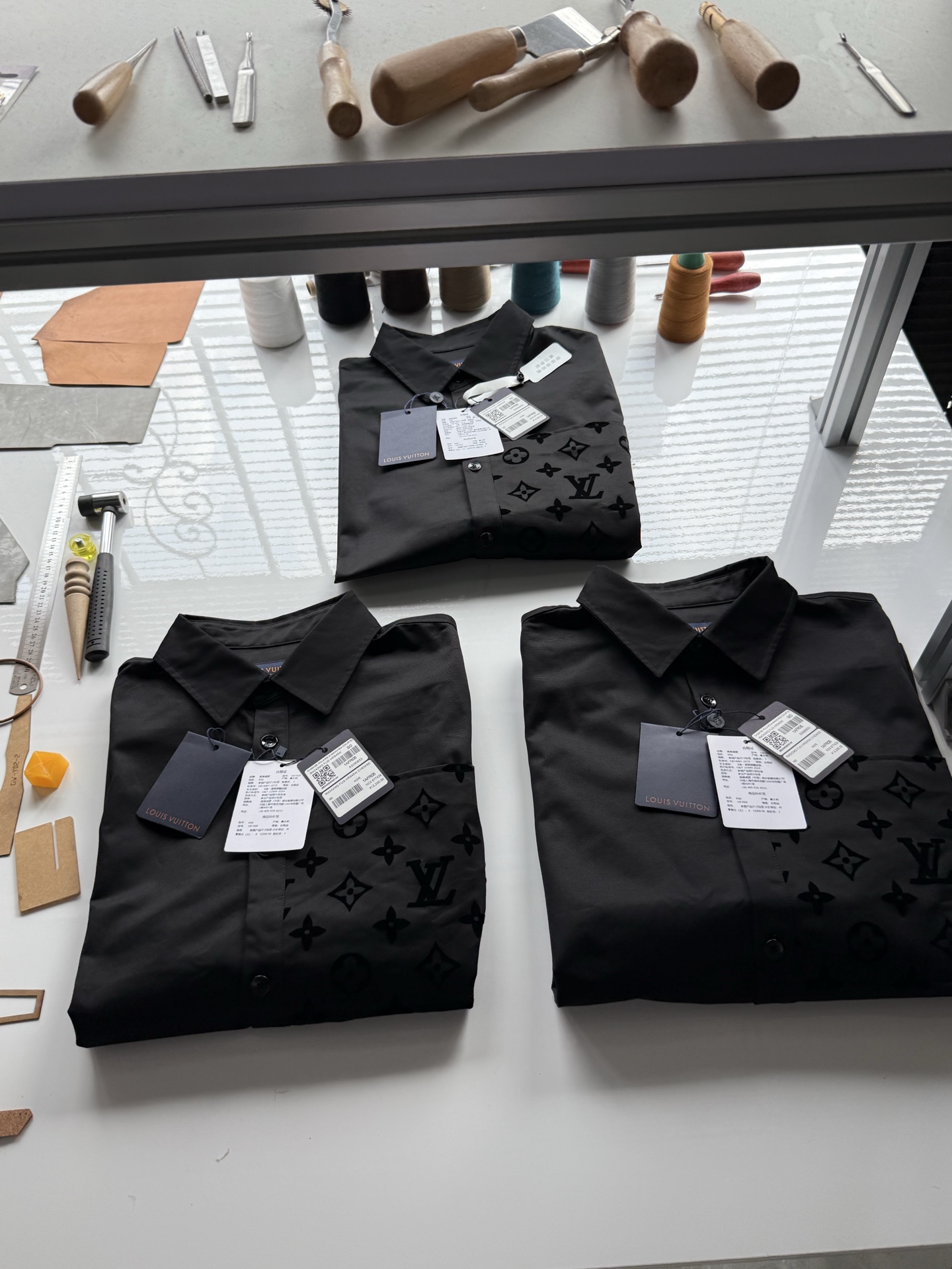 Louis Vuitton25ss植绒口袋印花短袖衬衫‼️整件衣服12200购买ZP拆解打造,采用定制棉质混纺面料,意大利进口制造,胸前贴袋设计,饰以Monogram植绒花卉,门襟开模定制LV字母标识镀金纽扣,真正做到1:1copy 码数:XS S M L
