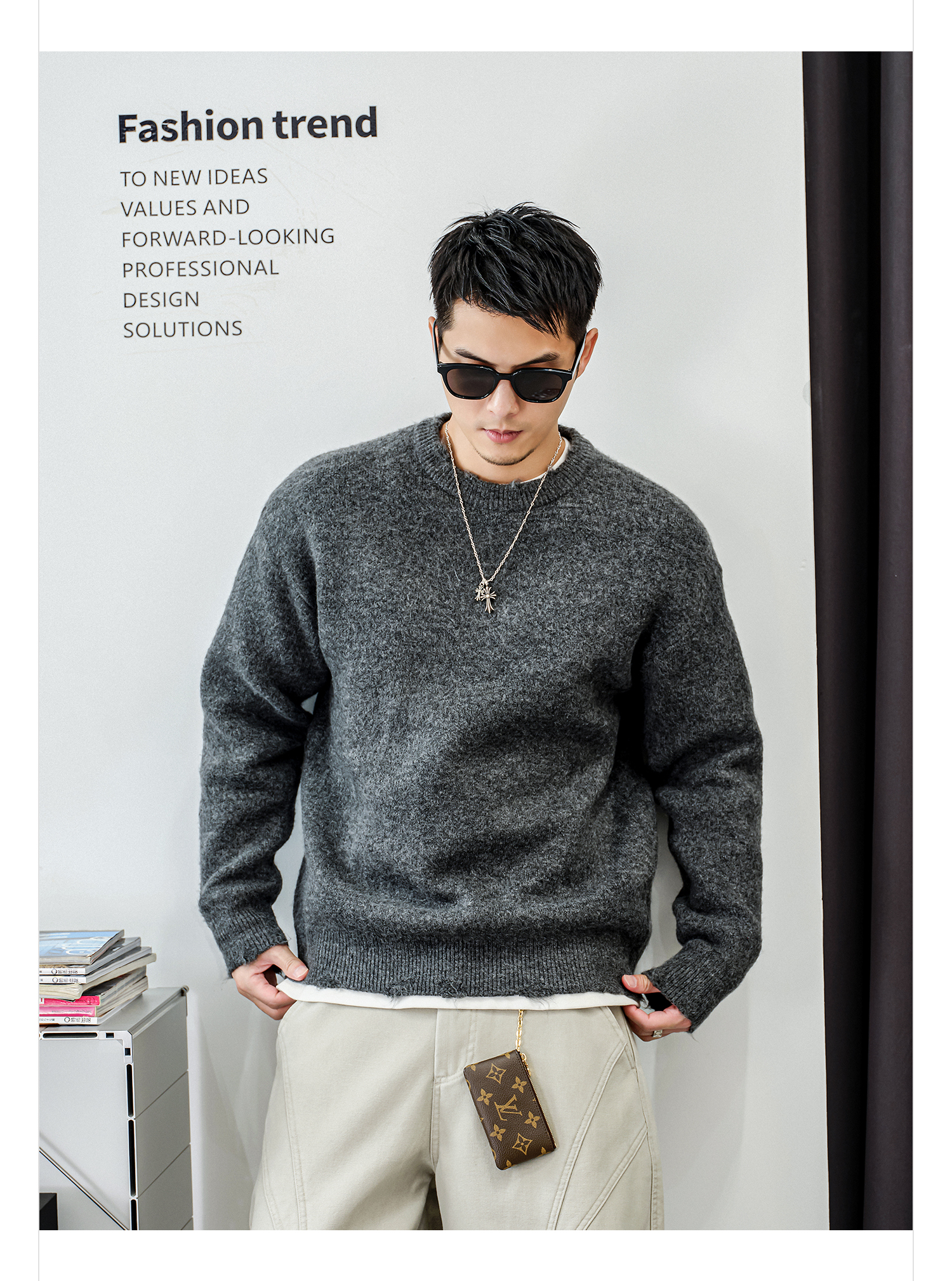 徐太浪【毛绒感 刮烂毛边】通勤毛衣男秋冬款休闲内搭打底衫上衣