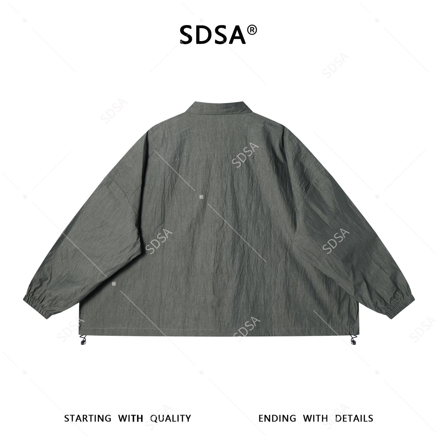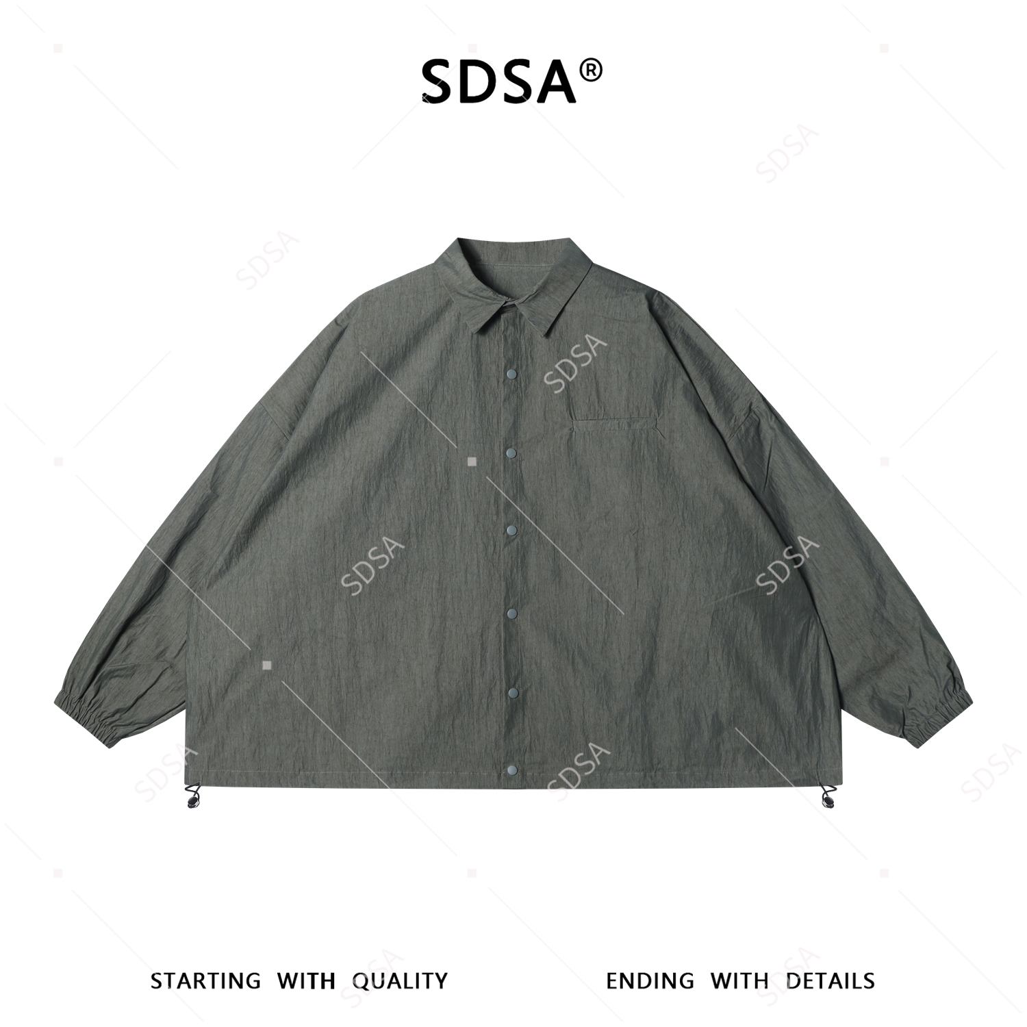 SDSA男装2026新款高贵轻奢韩版纯色按扣长袖衬衫下摆松紧设计百搭