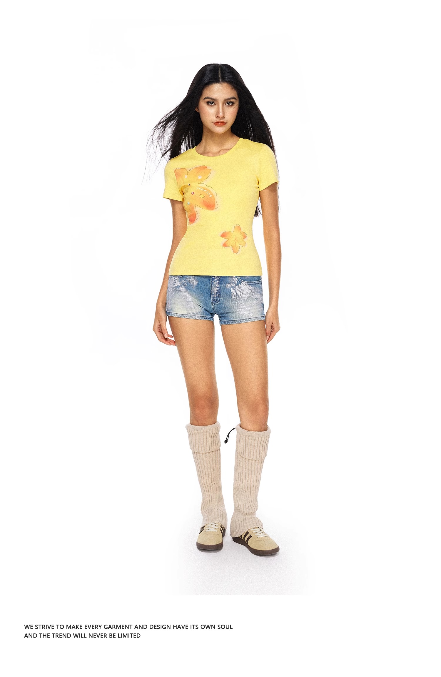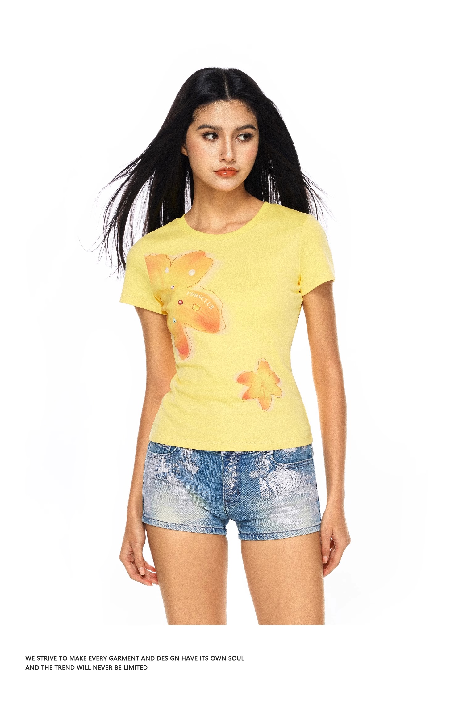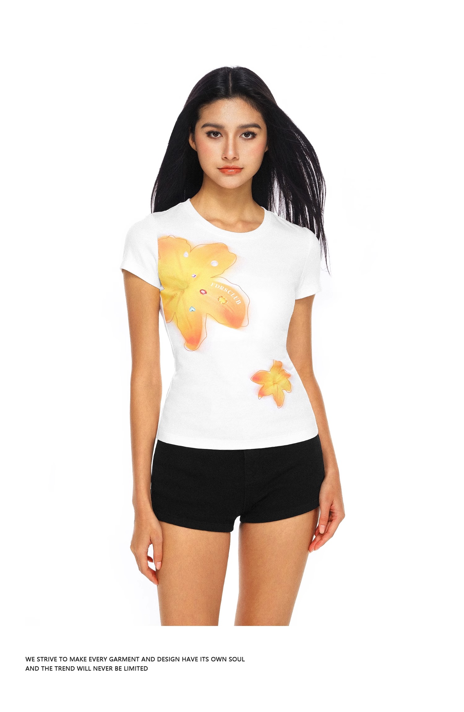 FDR官方店 美式辣妹宝石花卉印花短袖t恤女夏季修身显瘦体恤上衣