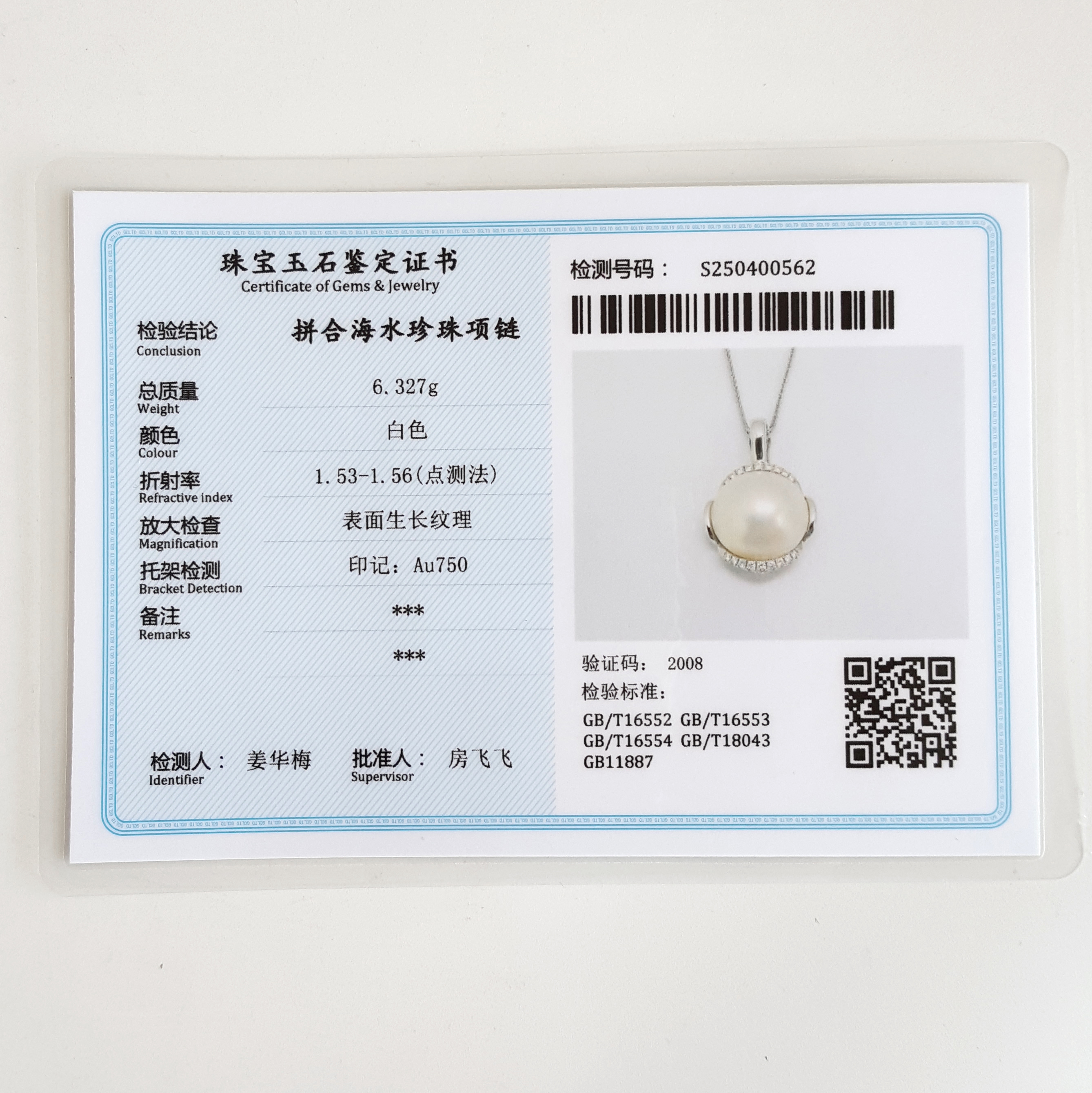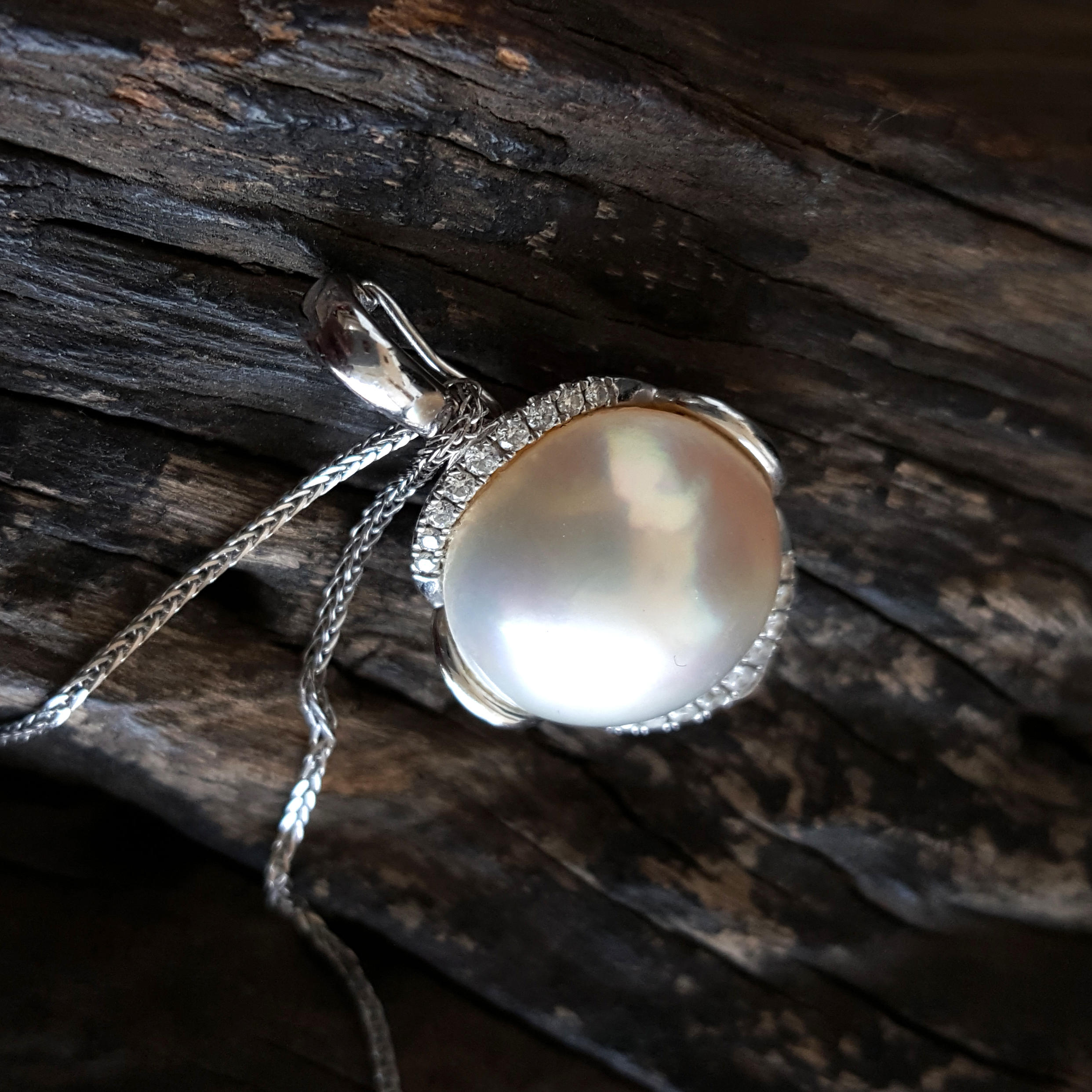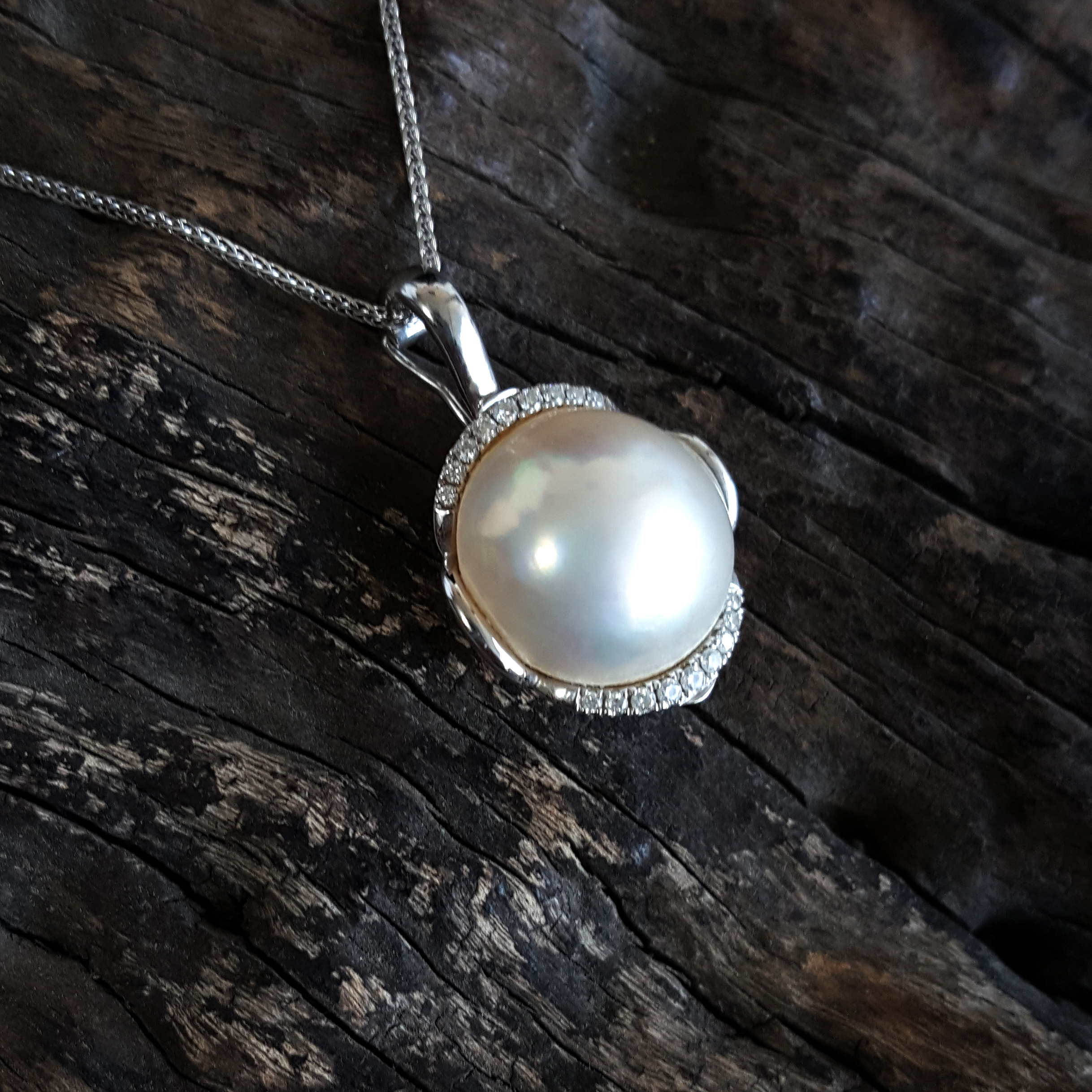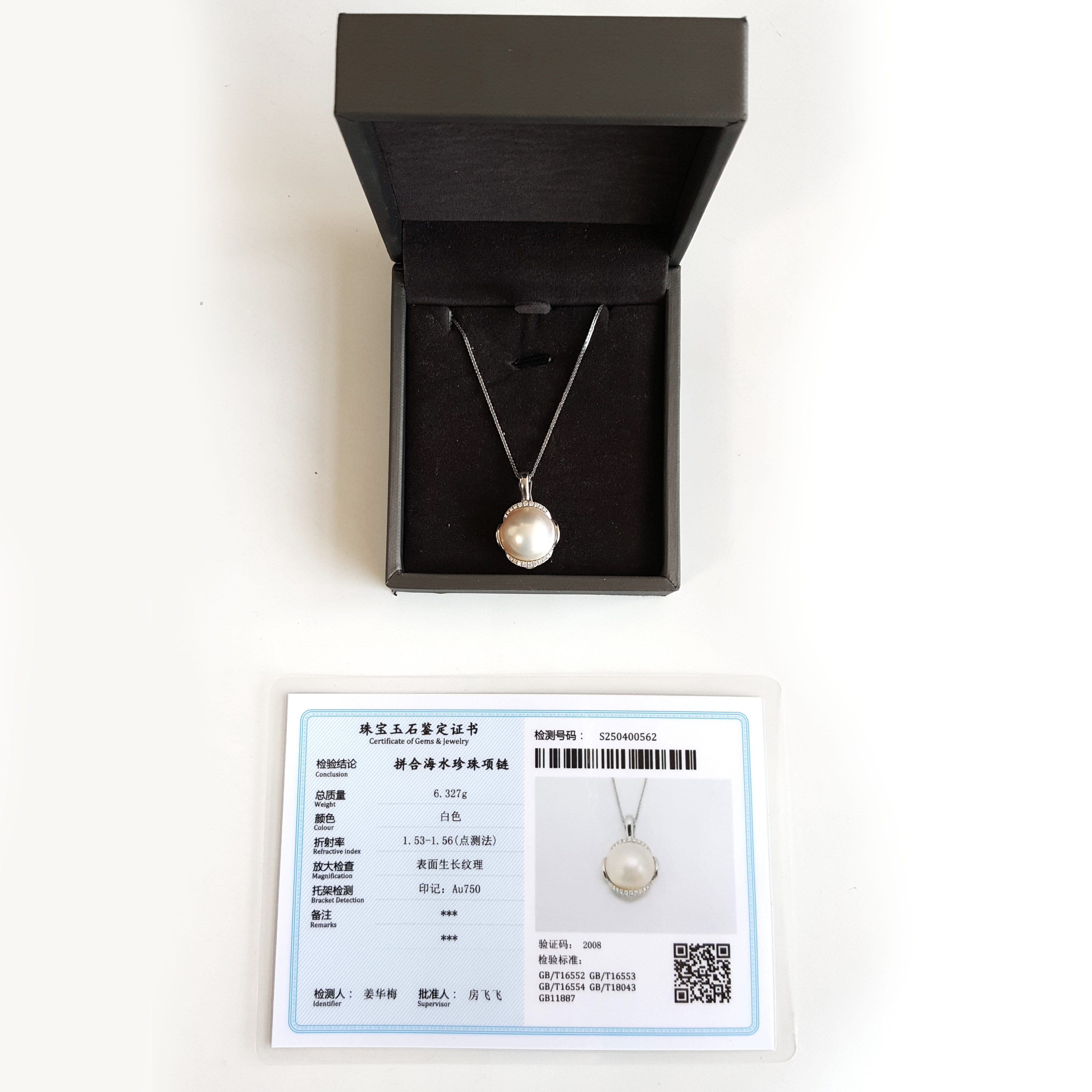 名称 | AU750白金镶天然马贝海水珍珠吊坠项链 |