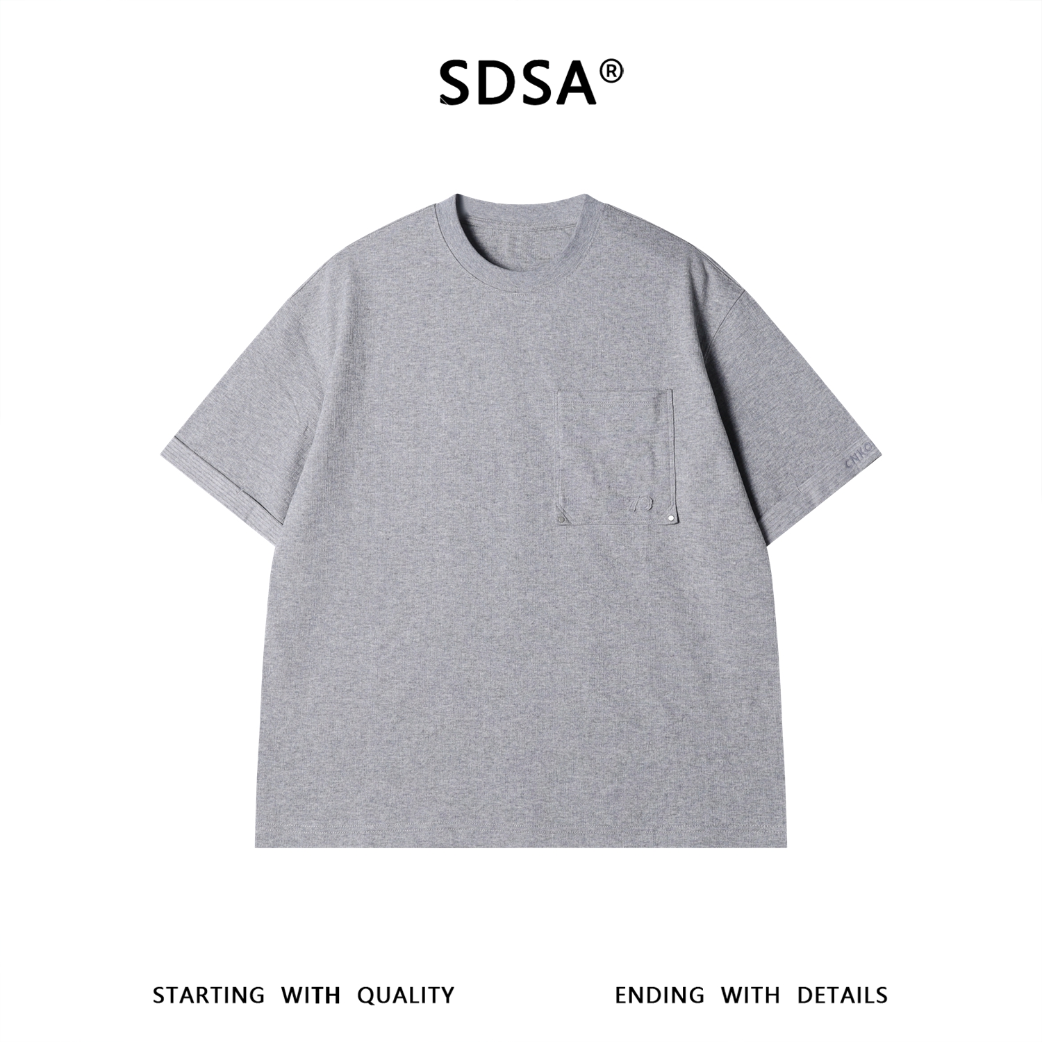 SDSA男装2026新款轻奢肌理感铆钉贴袋短袖T恤宽松圆领休闲上衣
