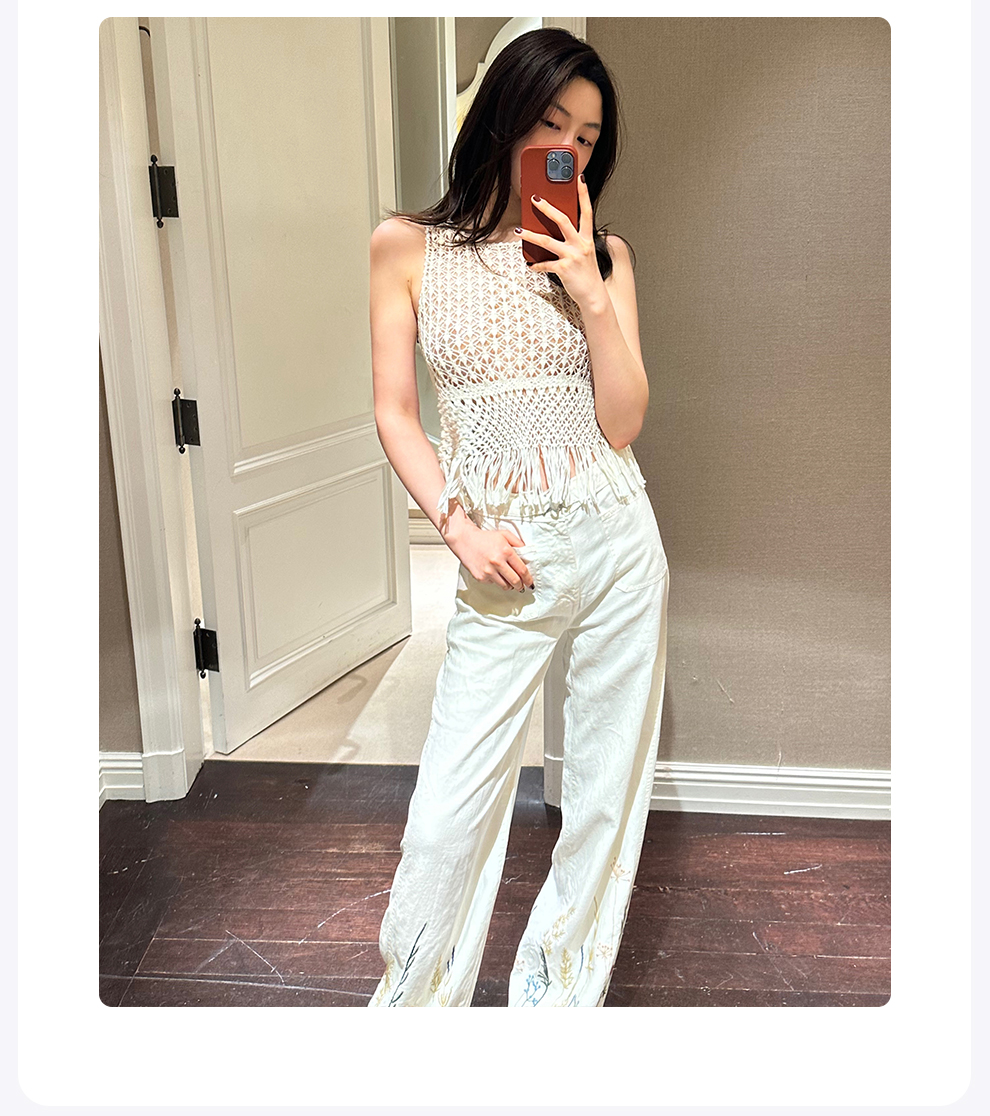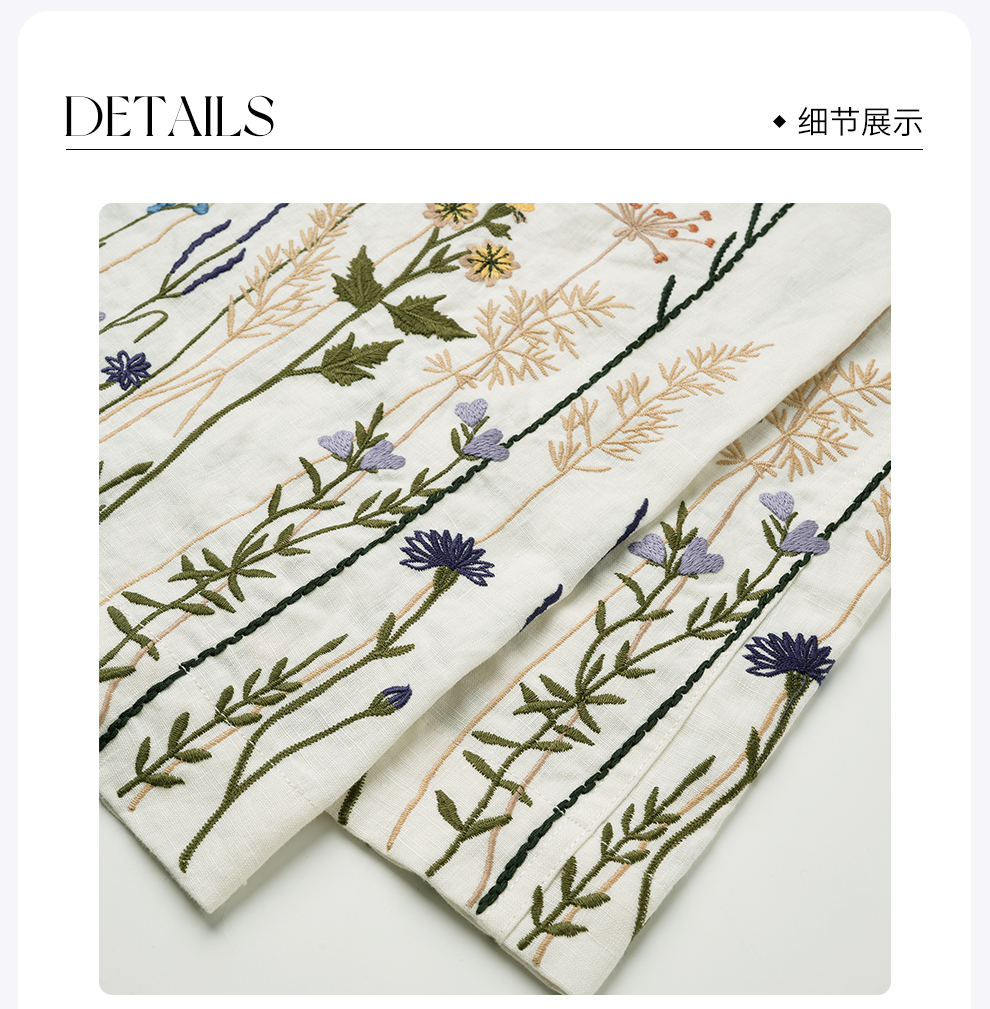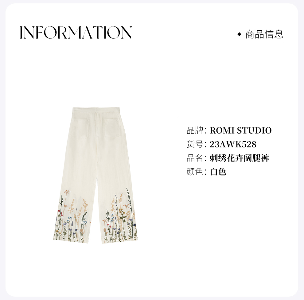 ROMI STUDIO“春日氛围“100%双股亚麻花卉裤脚刺绣阔腿裤23AWK528