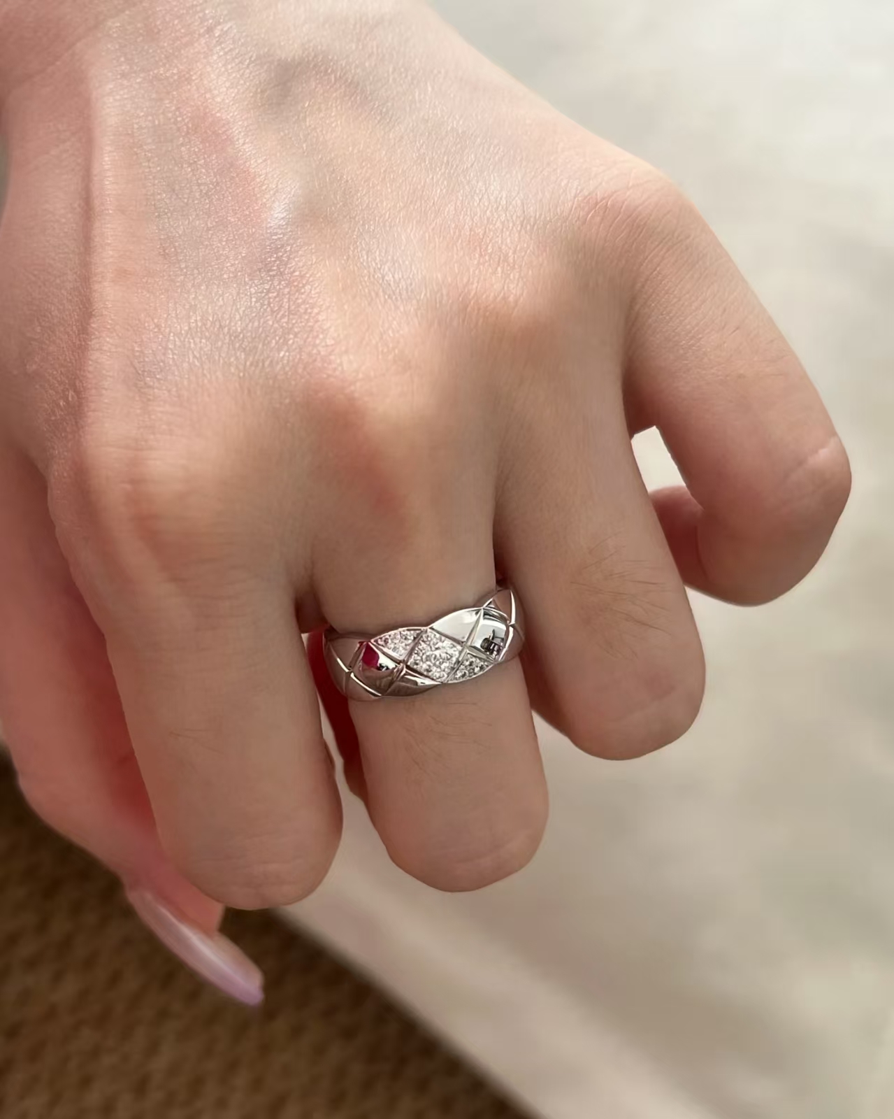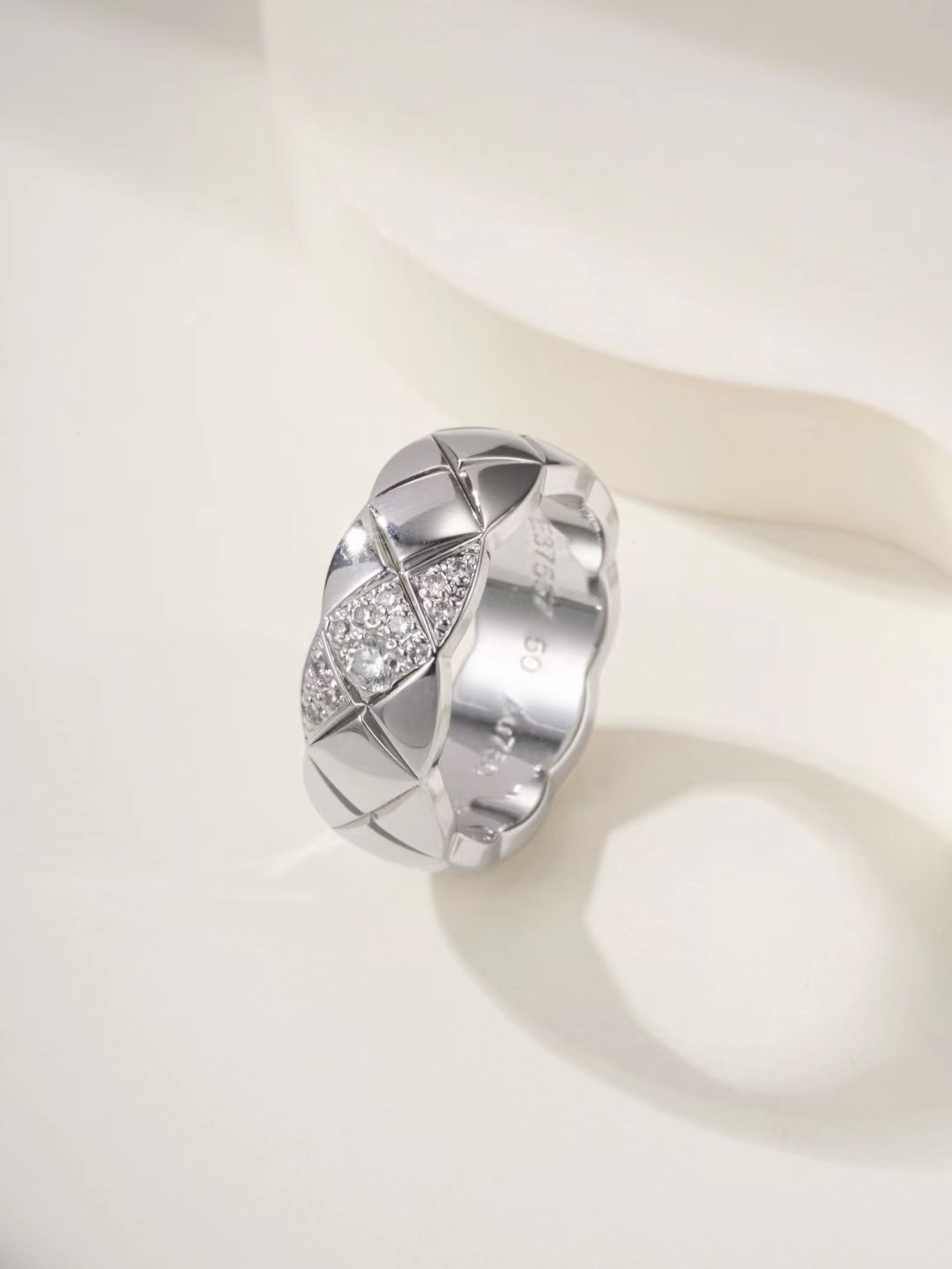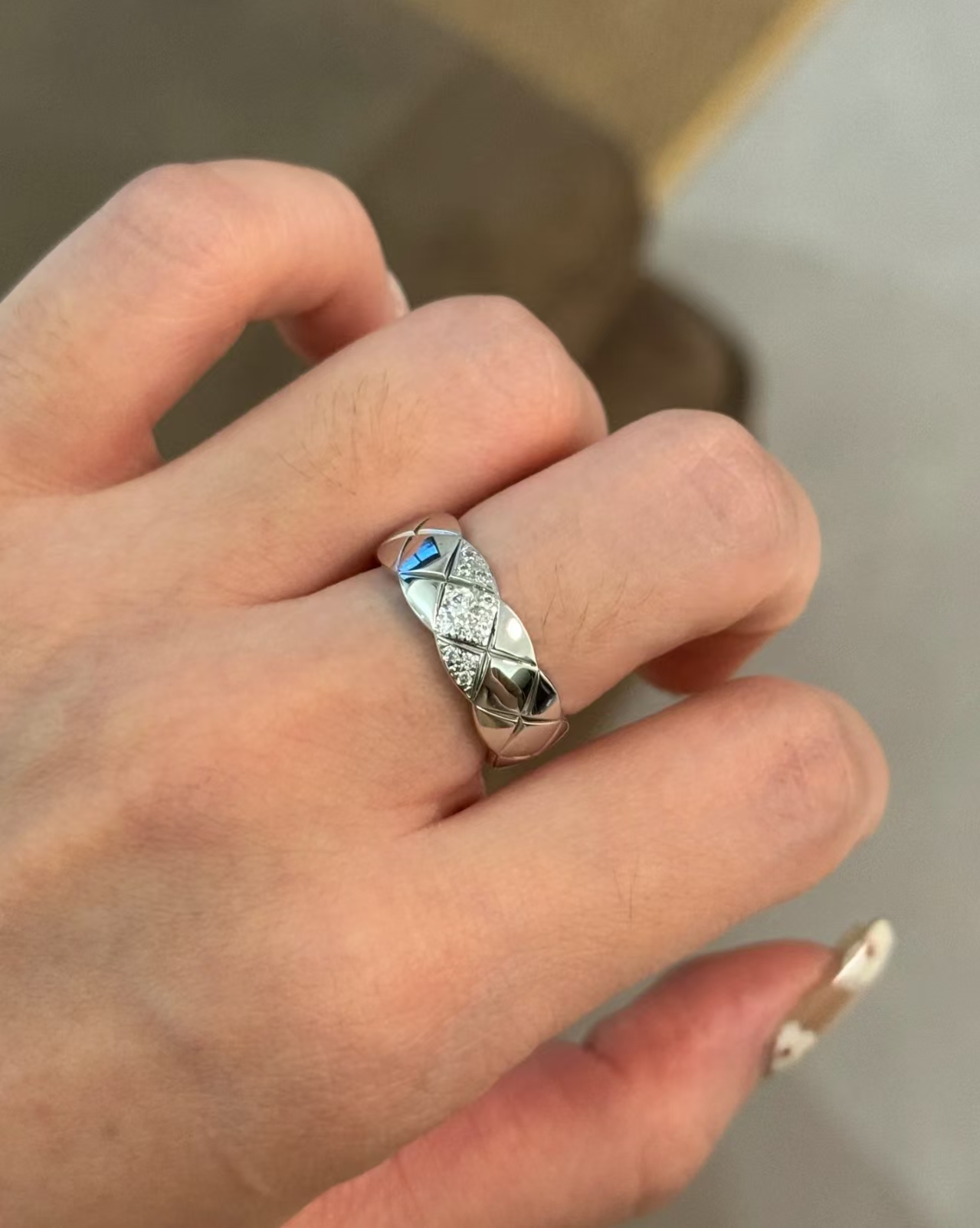 TB38-香奈儿菱格纹斜刘海镶钻戒指(XJ)