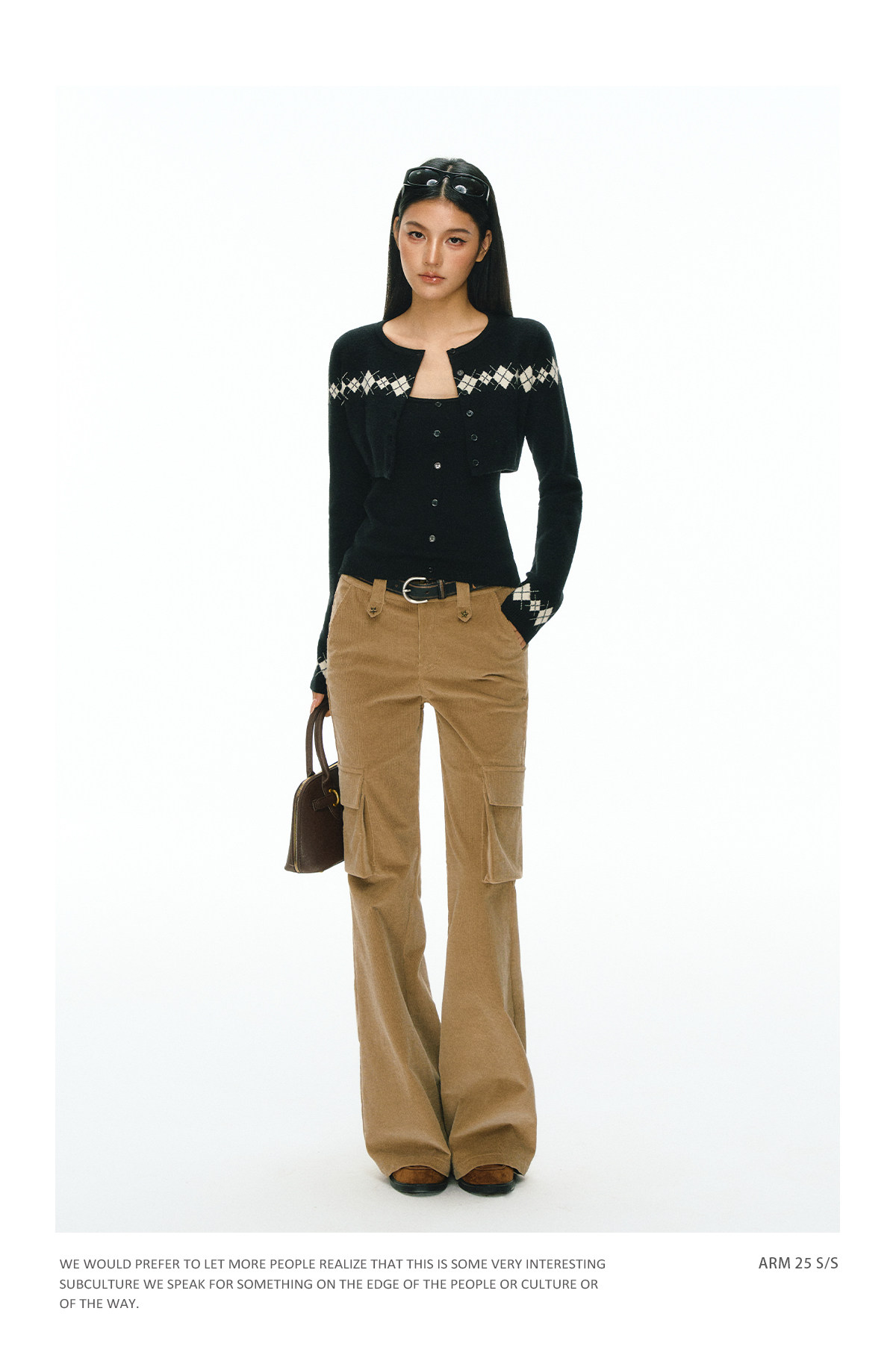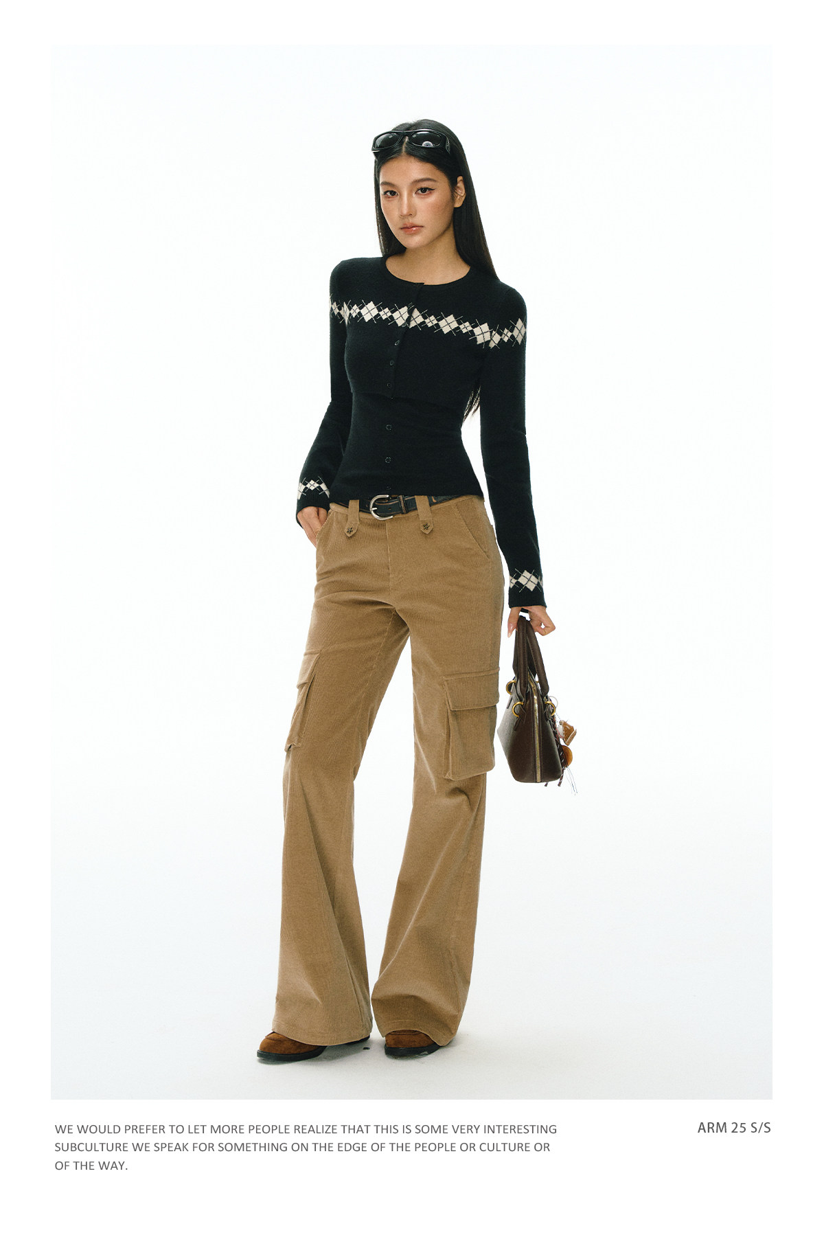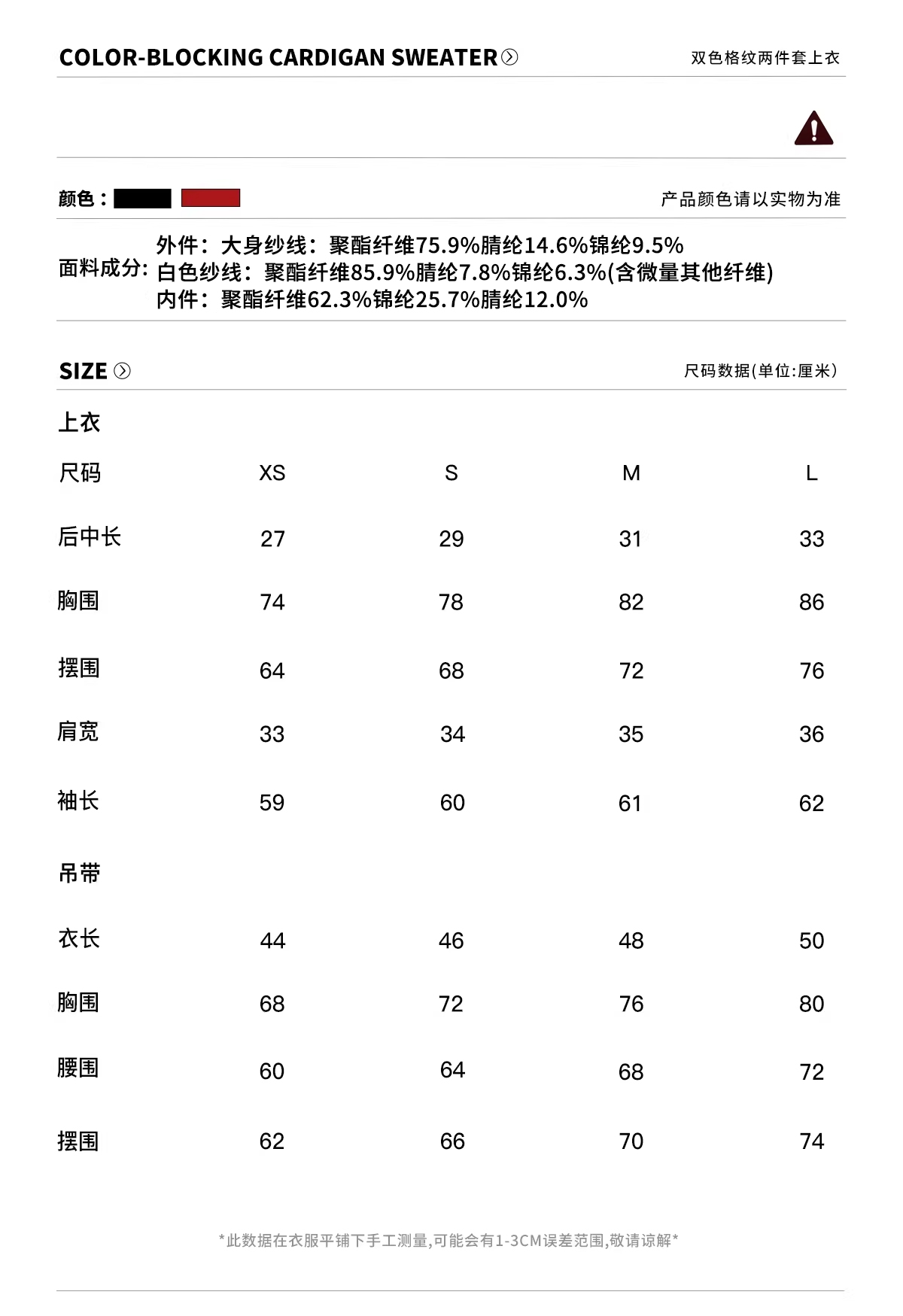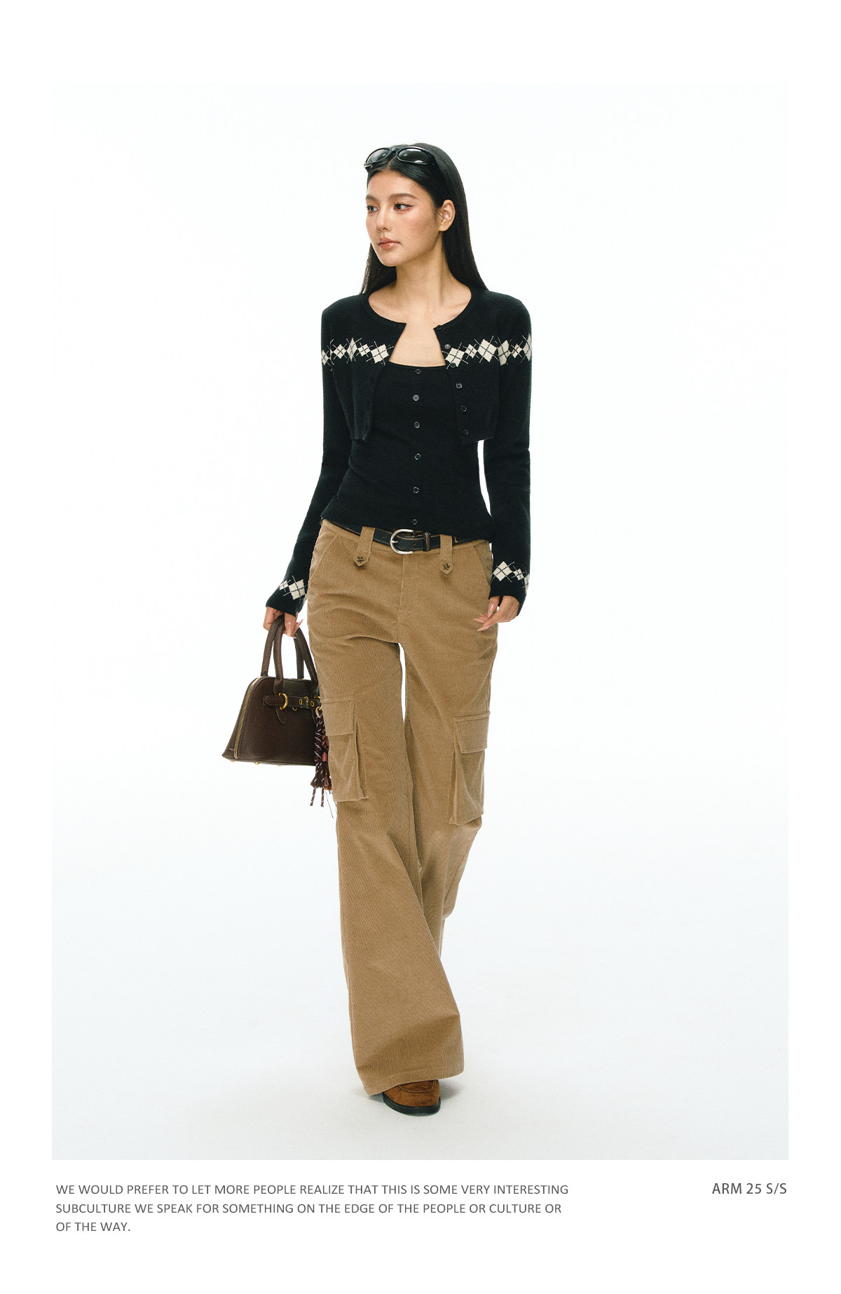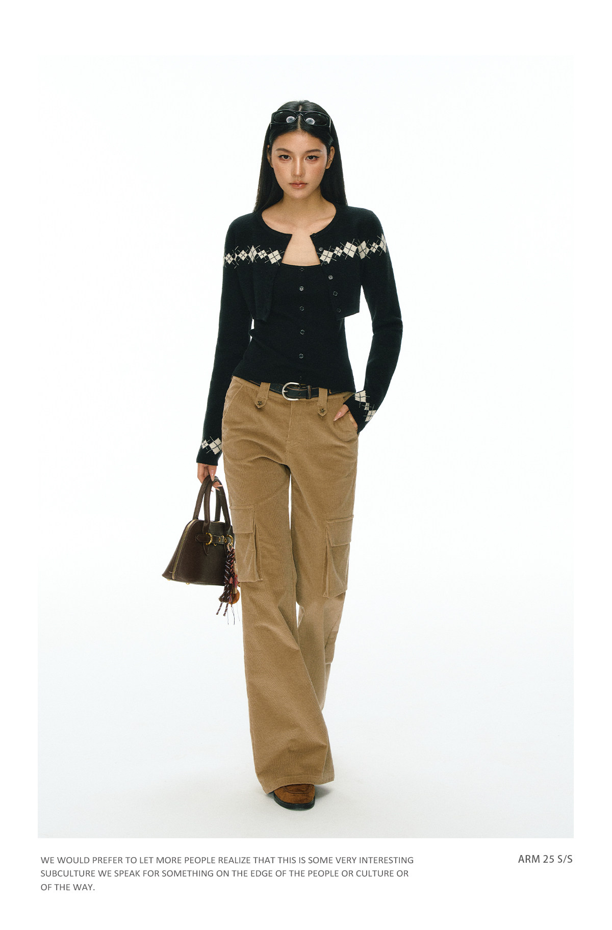 Ariseism 美式复古设计感两件套菱格开衫毛衣女秋冬新款修身上衣