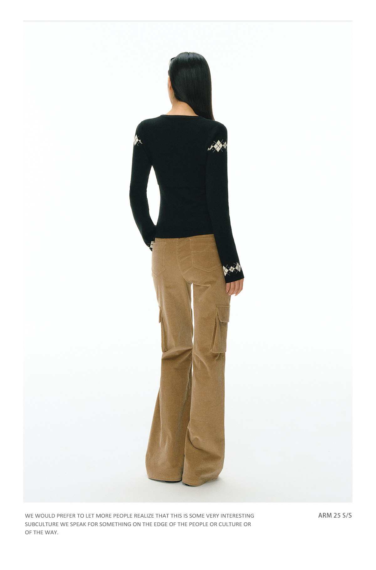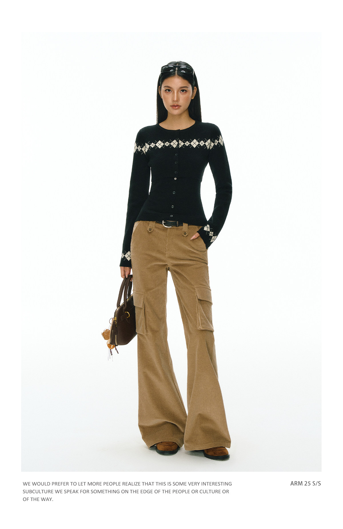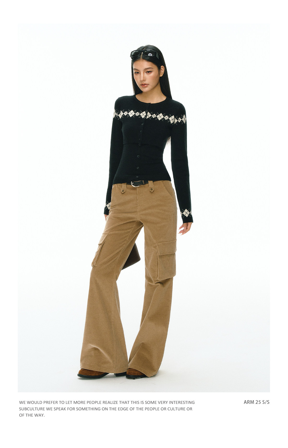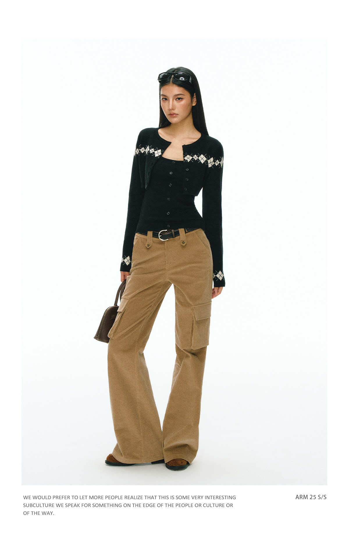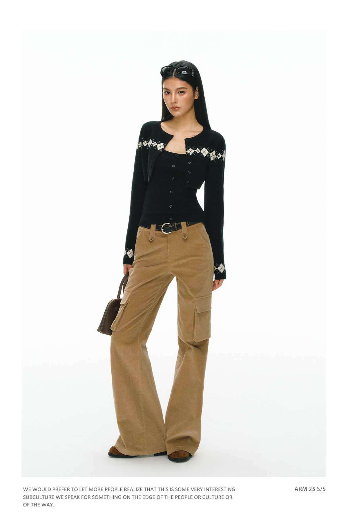 Ariseism 美式复古设计感两件套菱格开衫毛衣女秋冬新款修身上衣