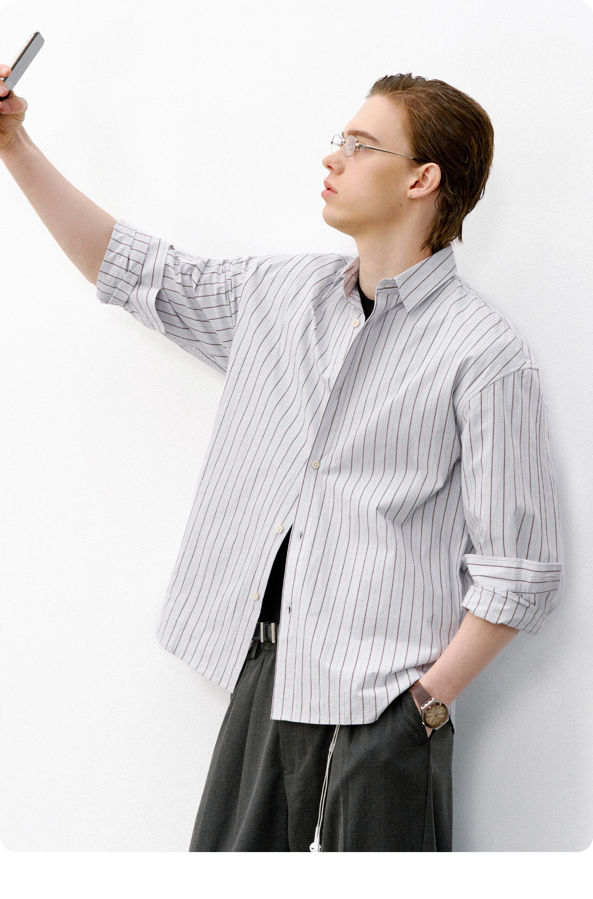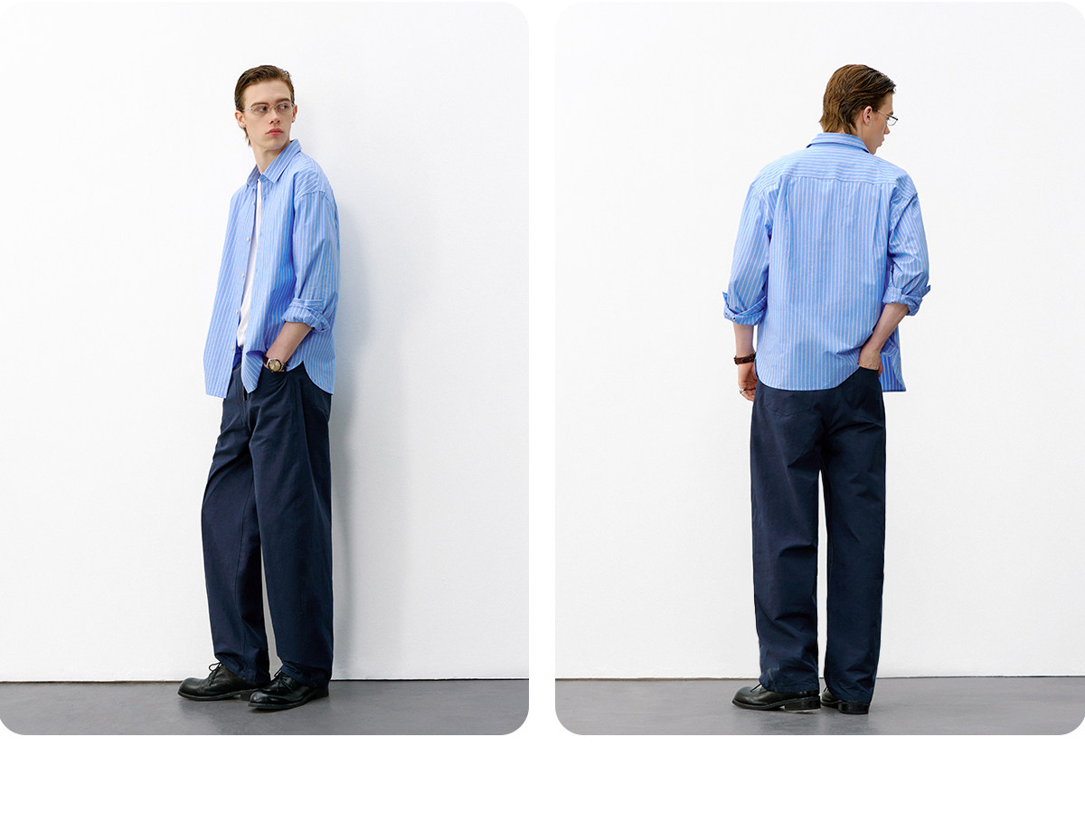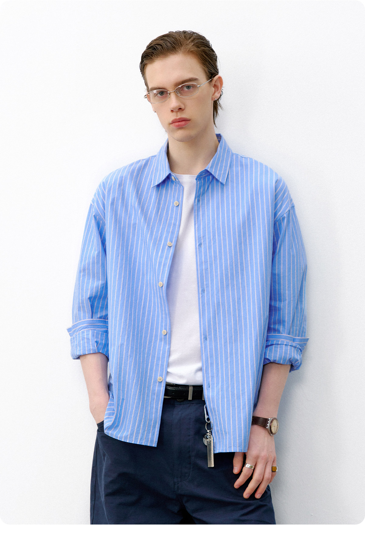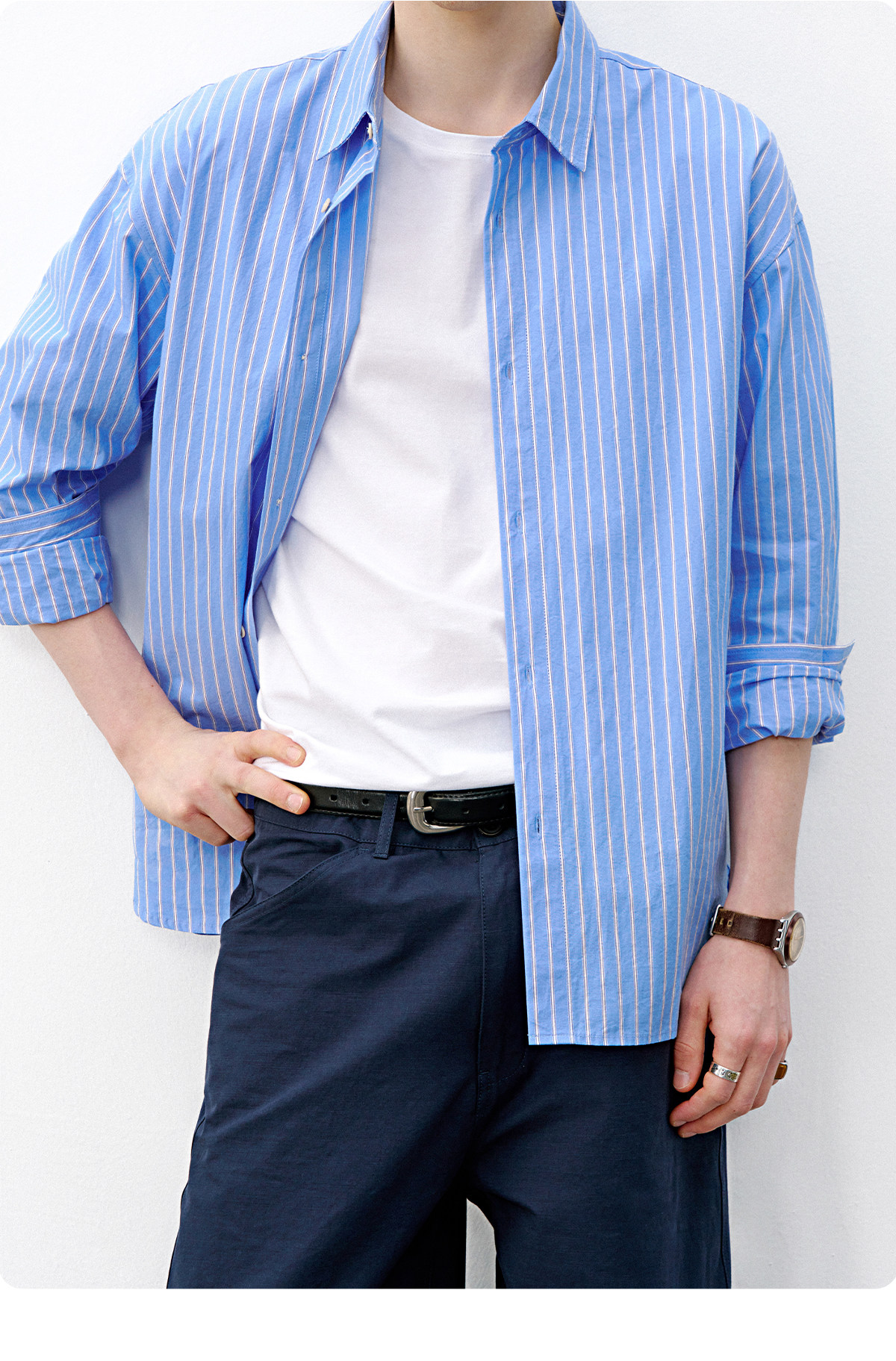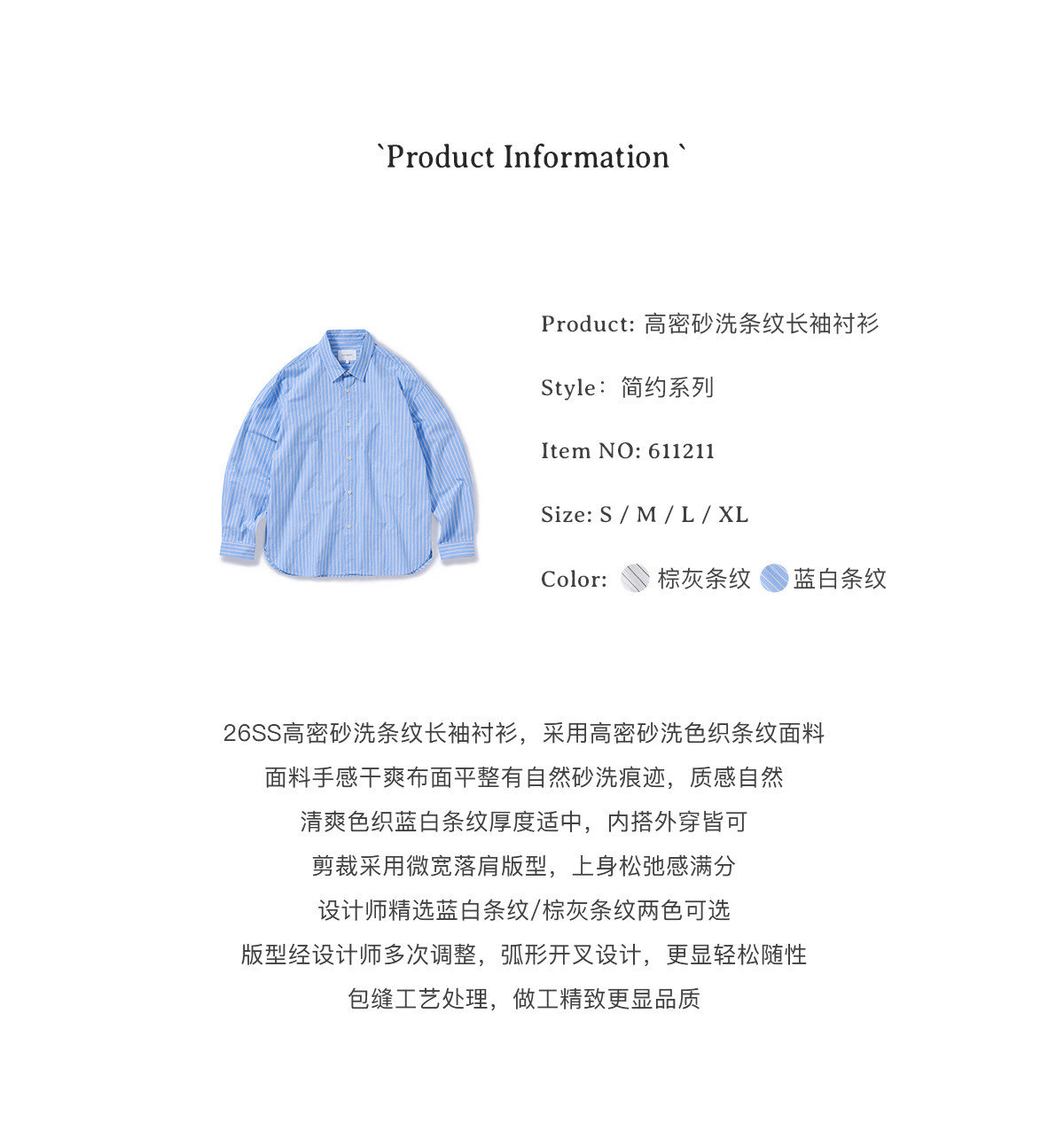 714street纯棉高密砂洗内搭长袖上衣2026春季新款条纹衬衫外套男