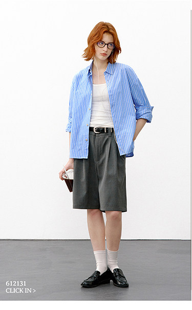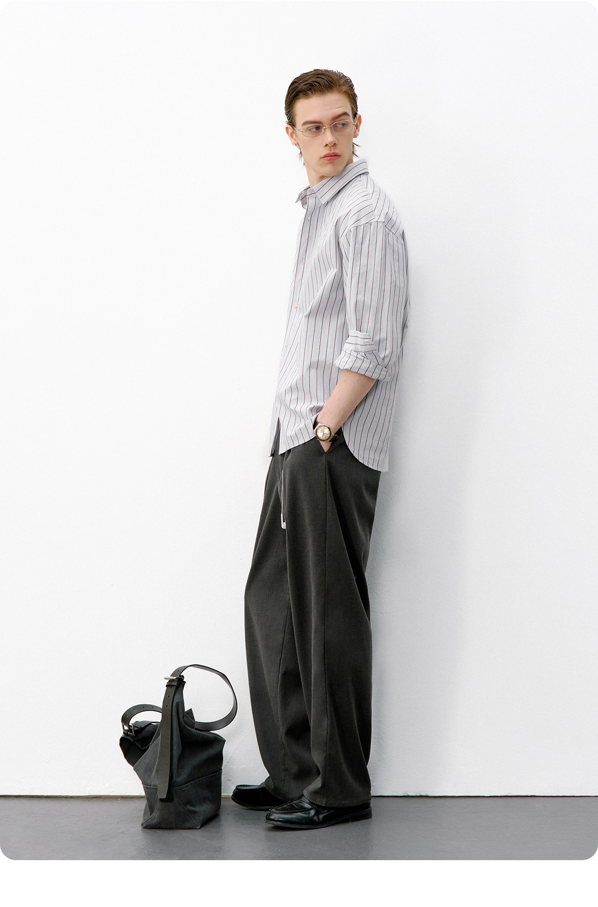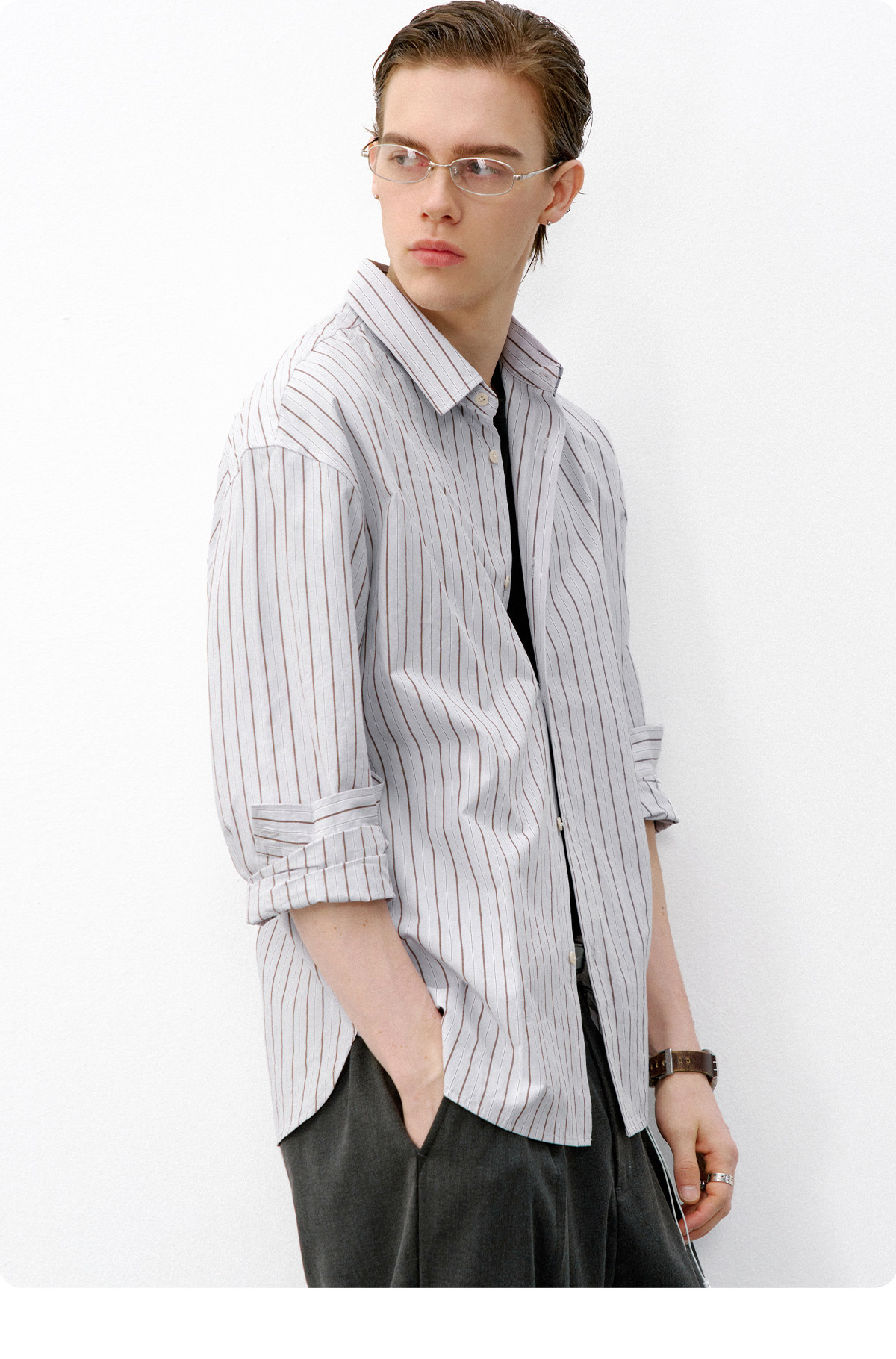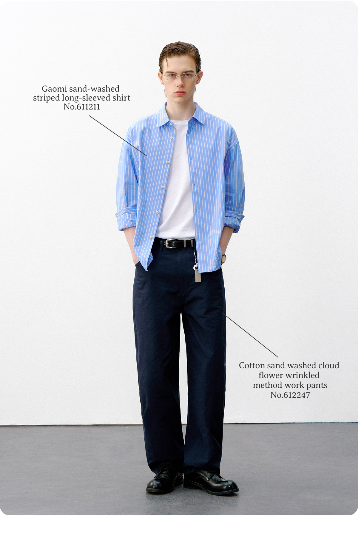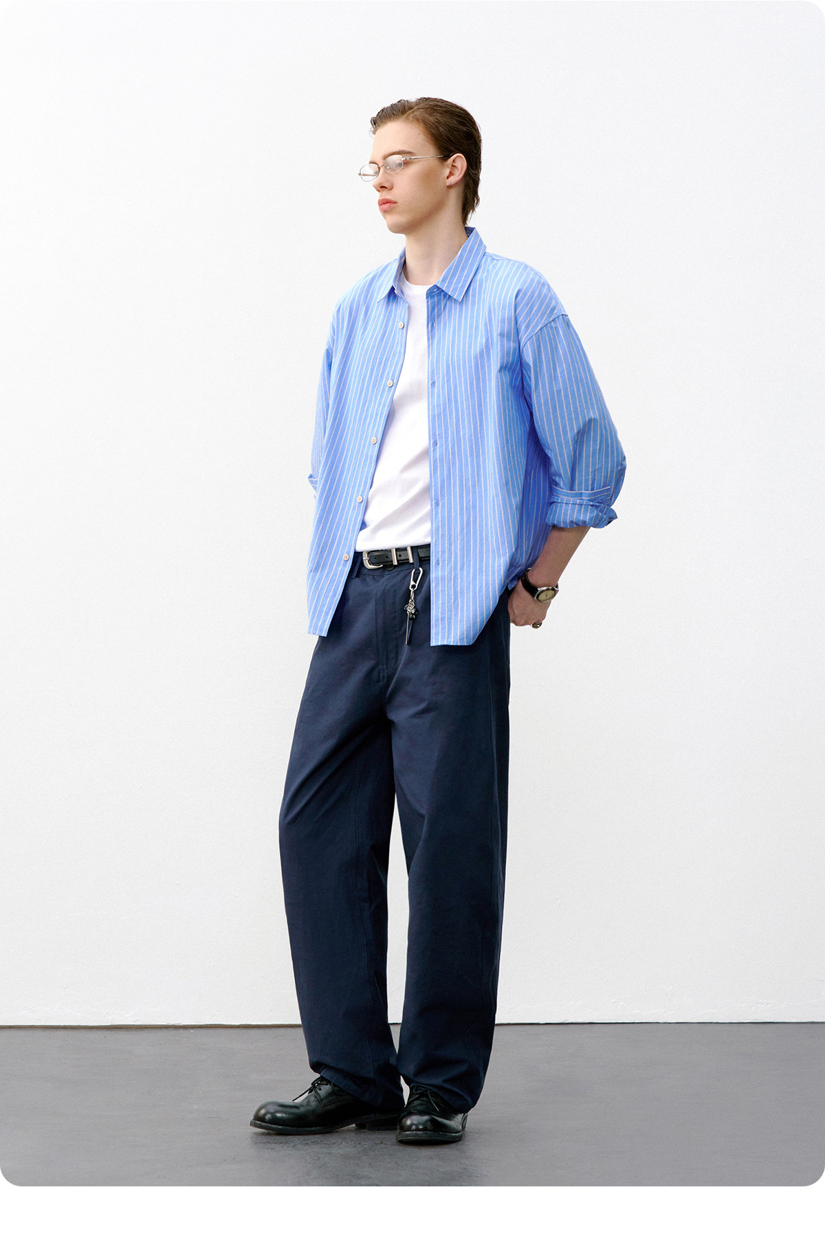 714street纯棉高密砂洗内搭长袖上衣2026春季新款条纹衬衫外套男