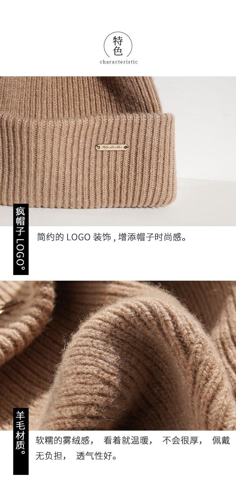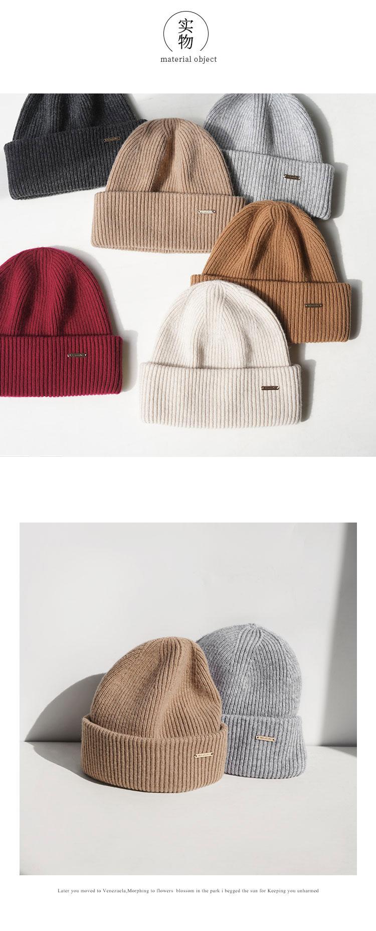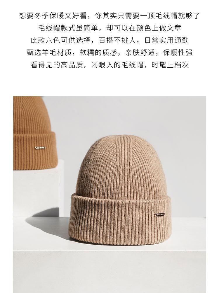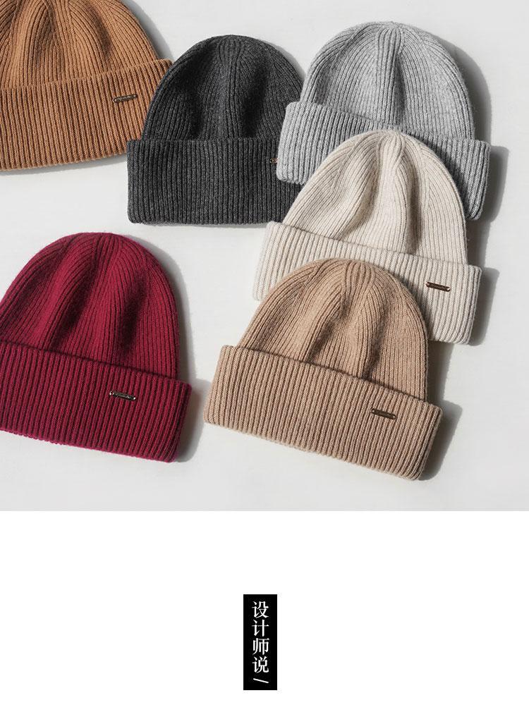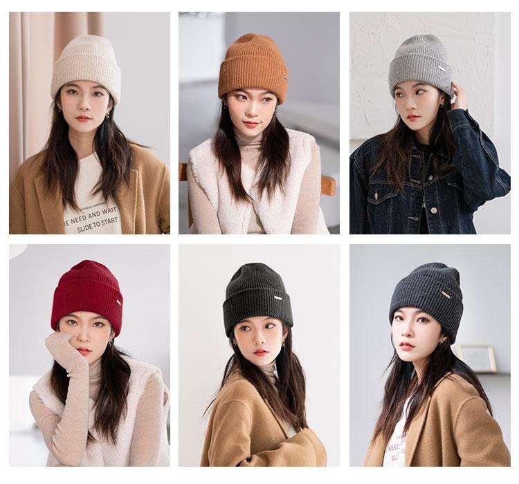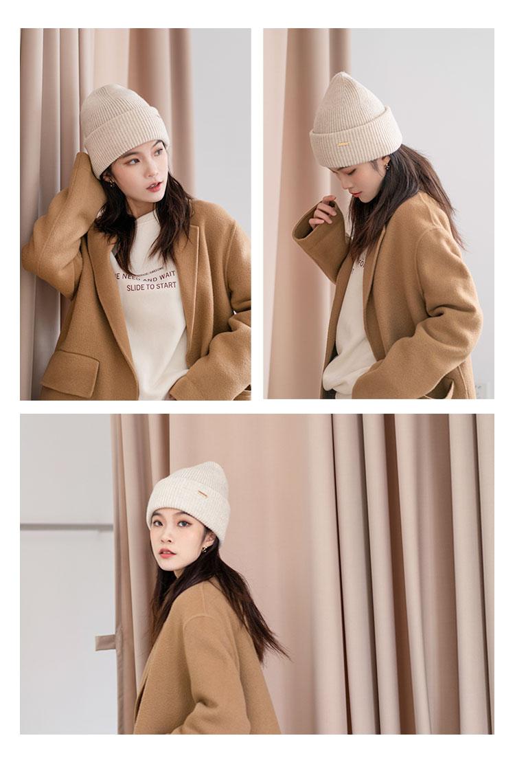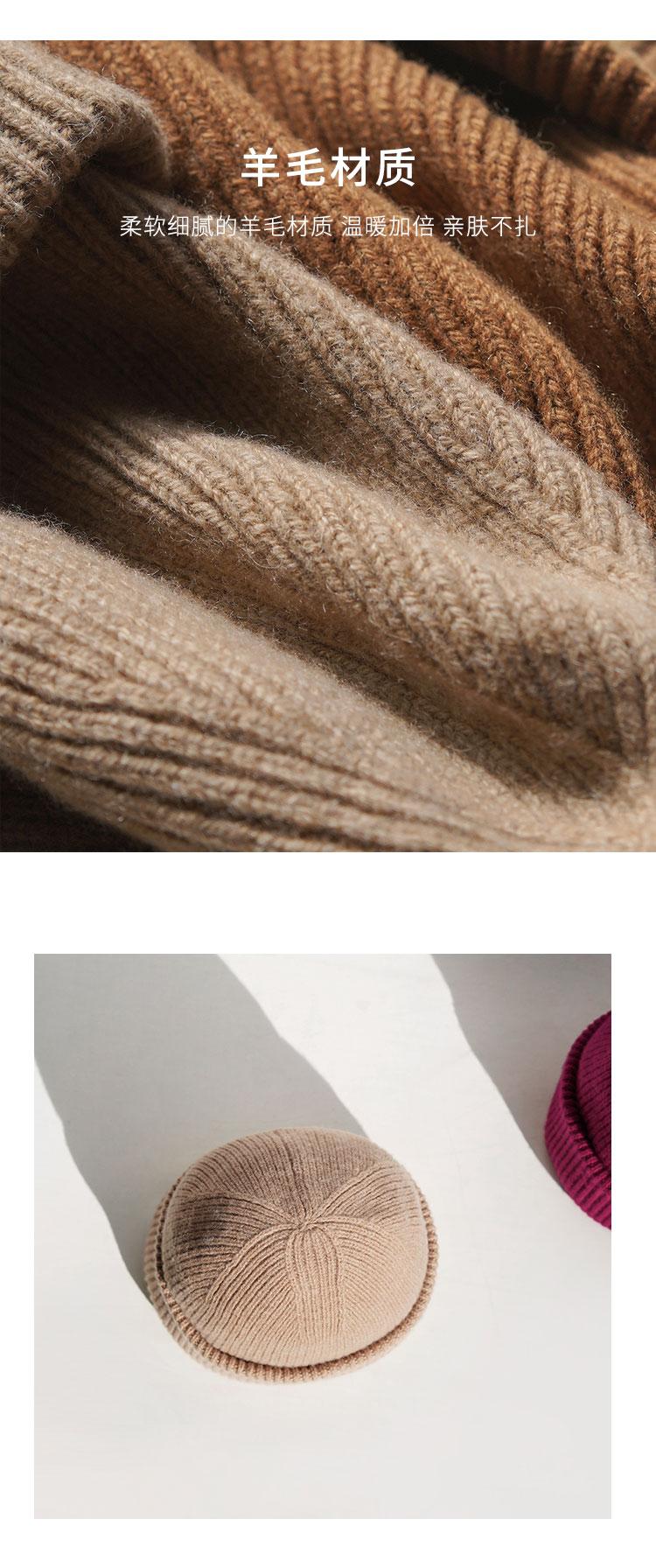 疯帽子 纯色羊毛线帽子女显脸小护耳温暖针织加厚高颜值帽子