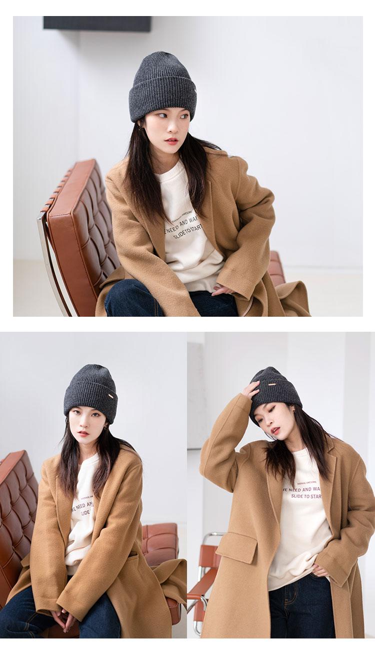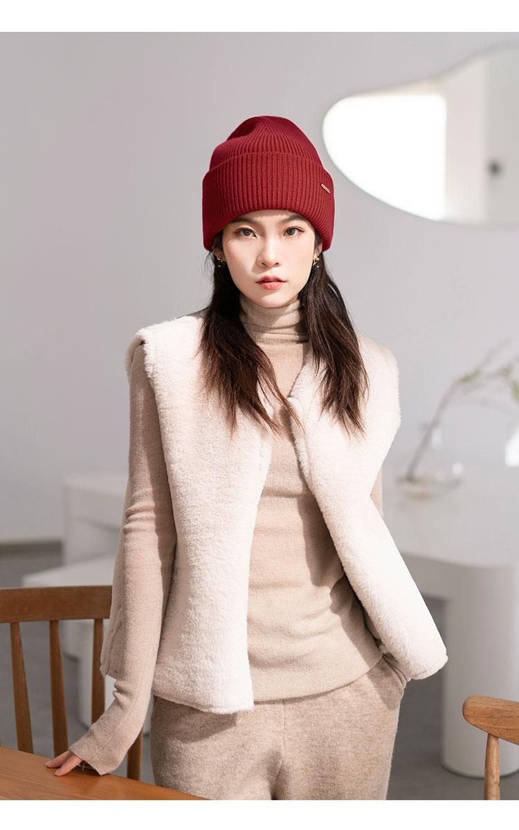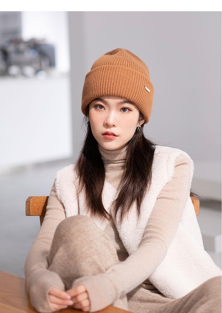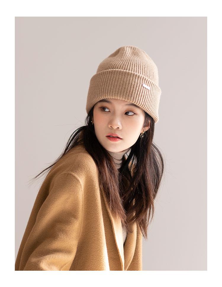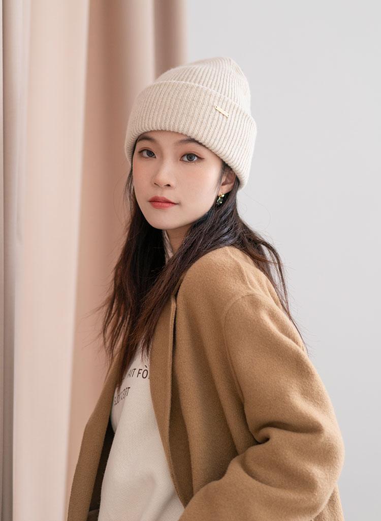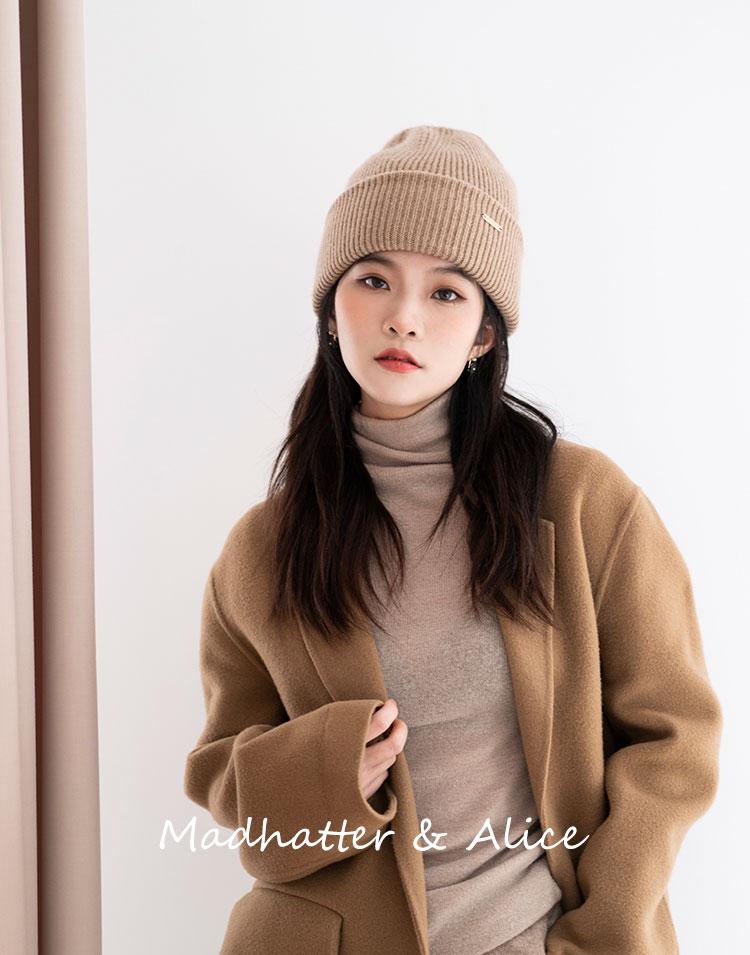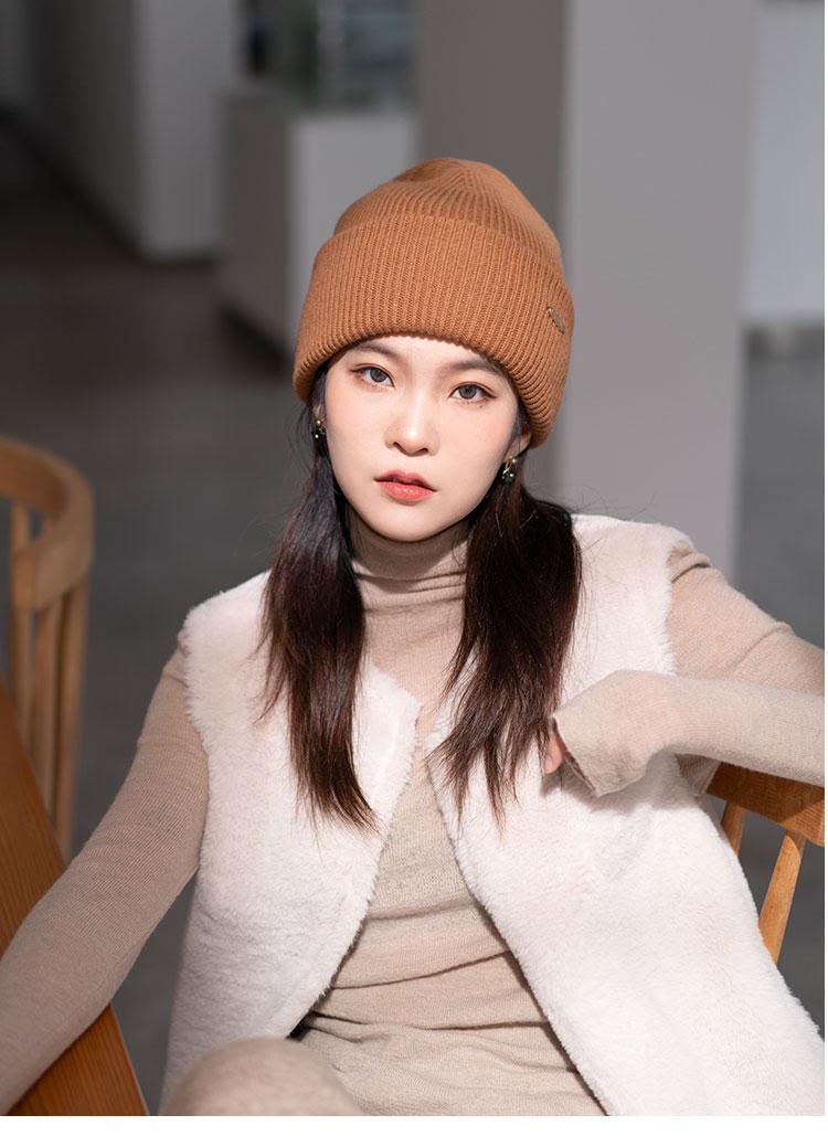疯帽子 纯色羊毛线帽子女显脸小护耳温暖针织加厚高颜值帽子