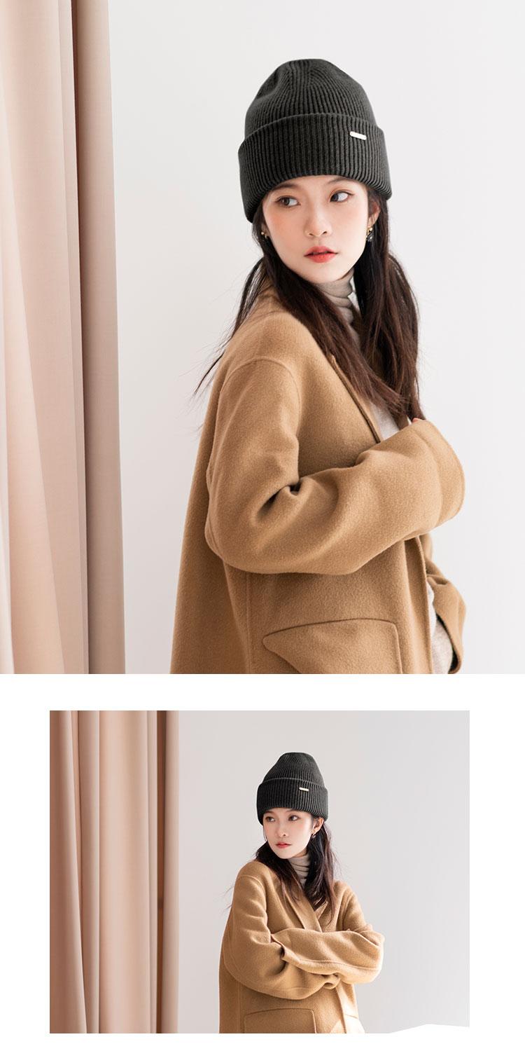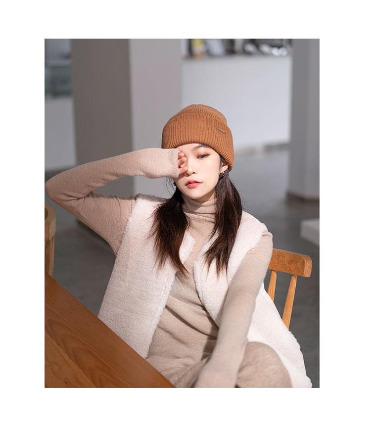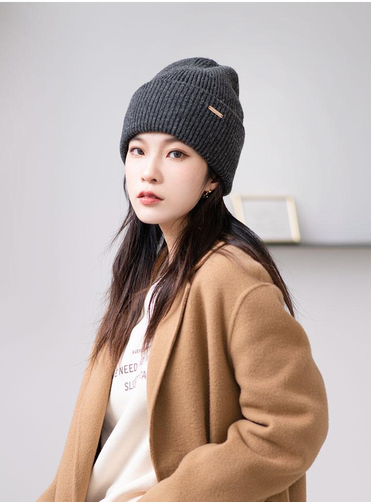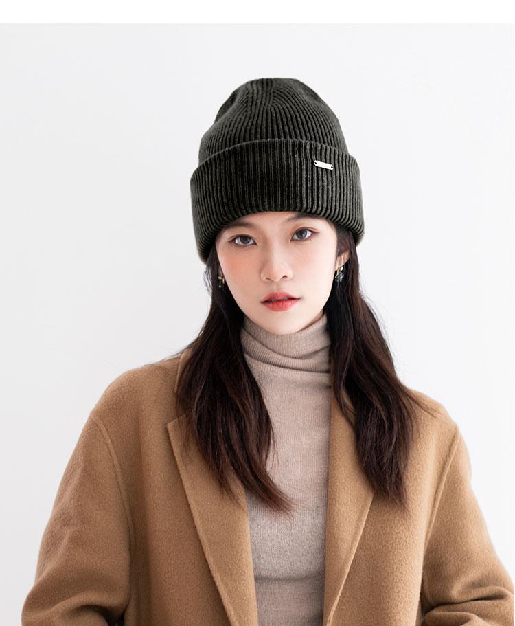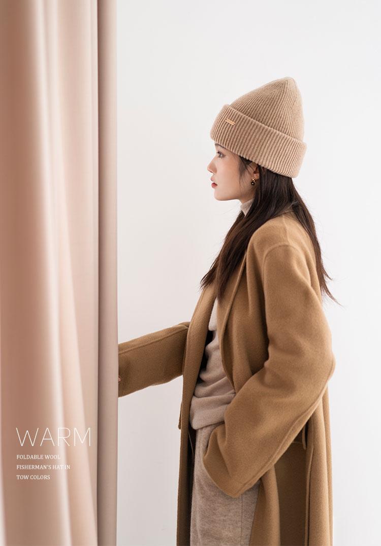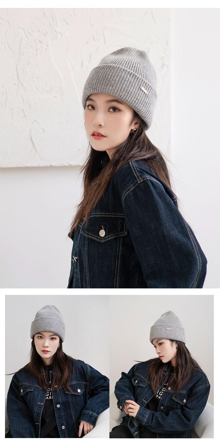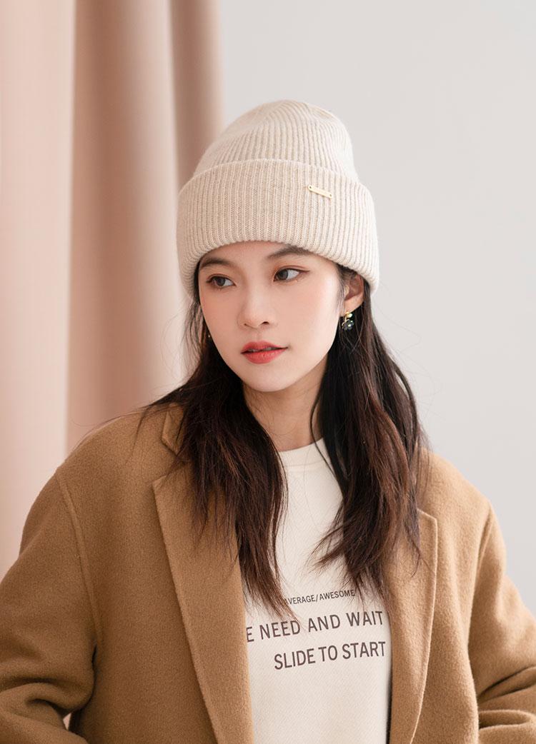 疯帽子 纯色羊毛线帽子女显脸小护耳温暖针织加厚高颜值帽子
