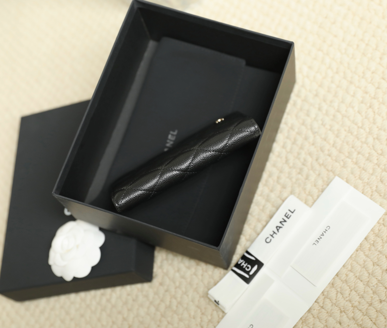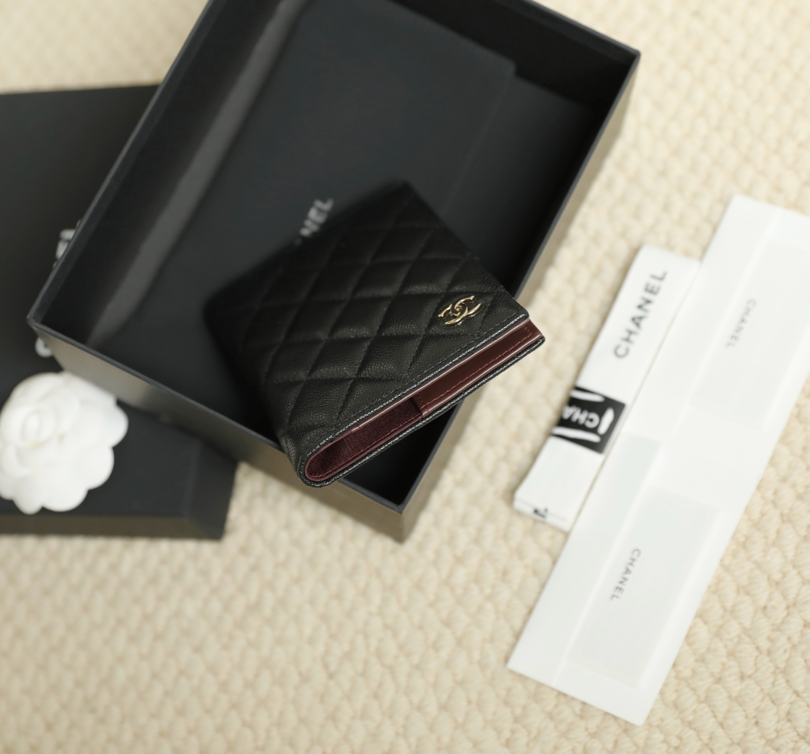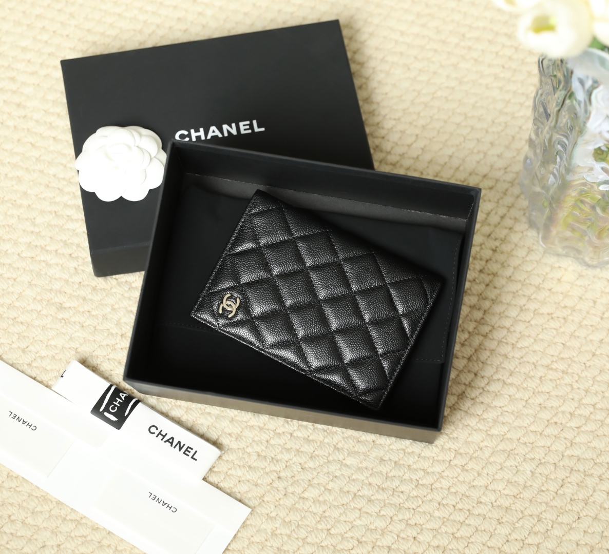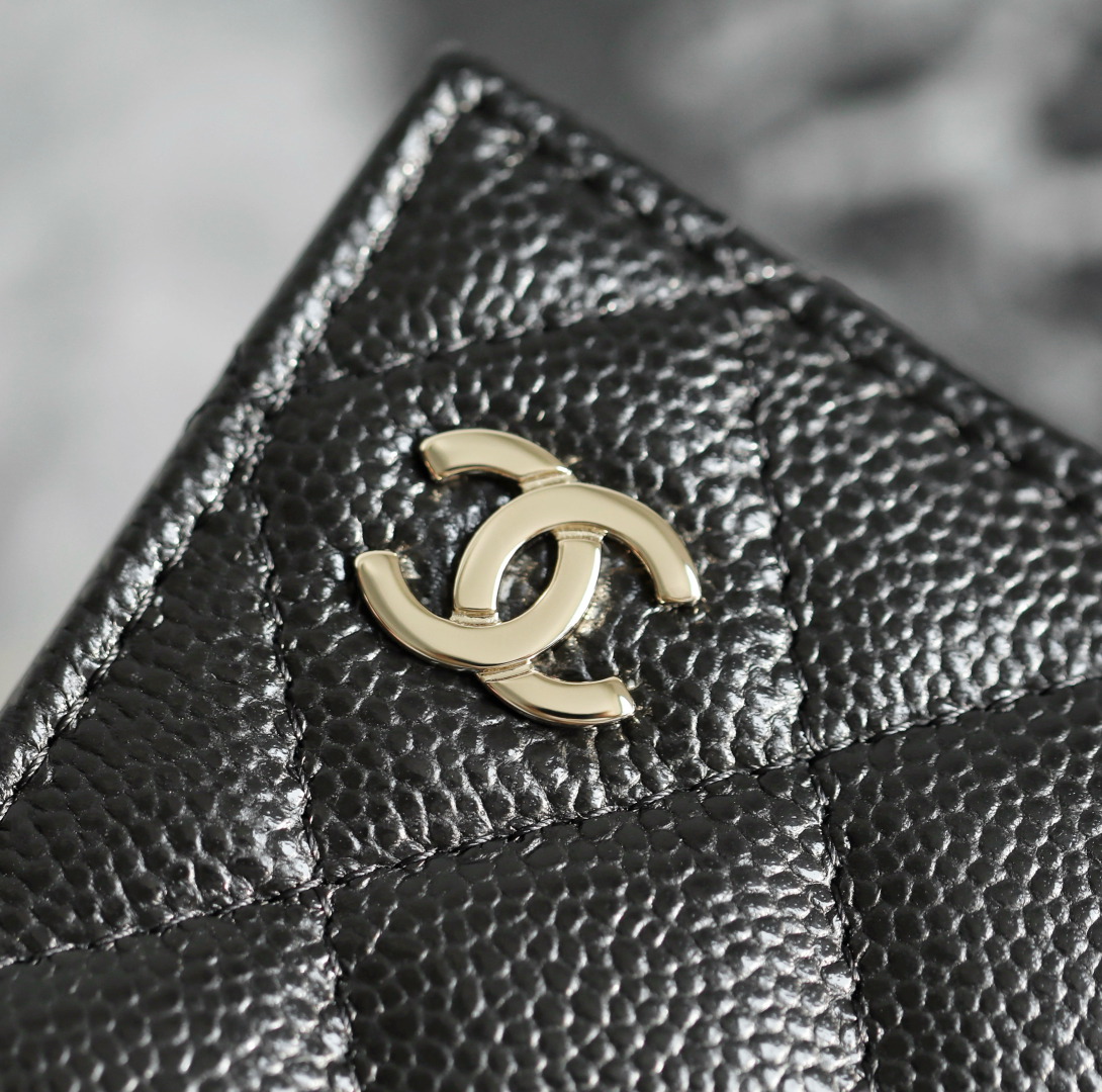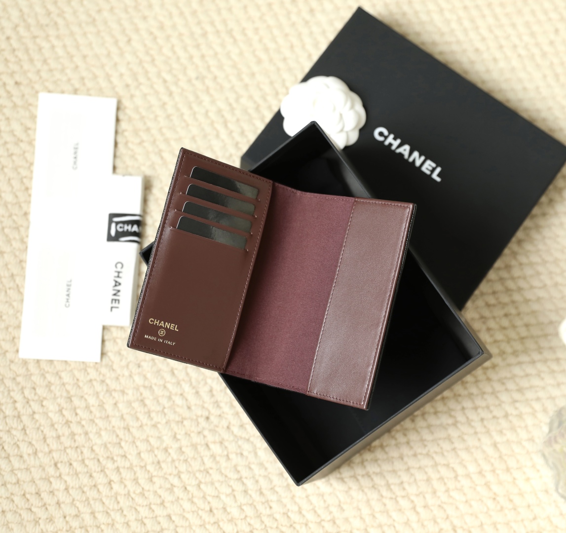 到货🆒𝗖𝗵𝗮𝗻𝗲𝟭经典护照夹 鱼子酱牛皮黑色淡金