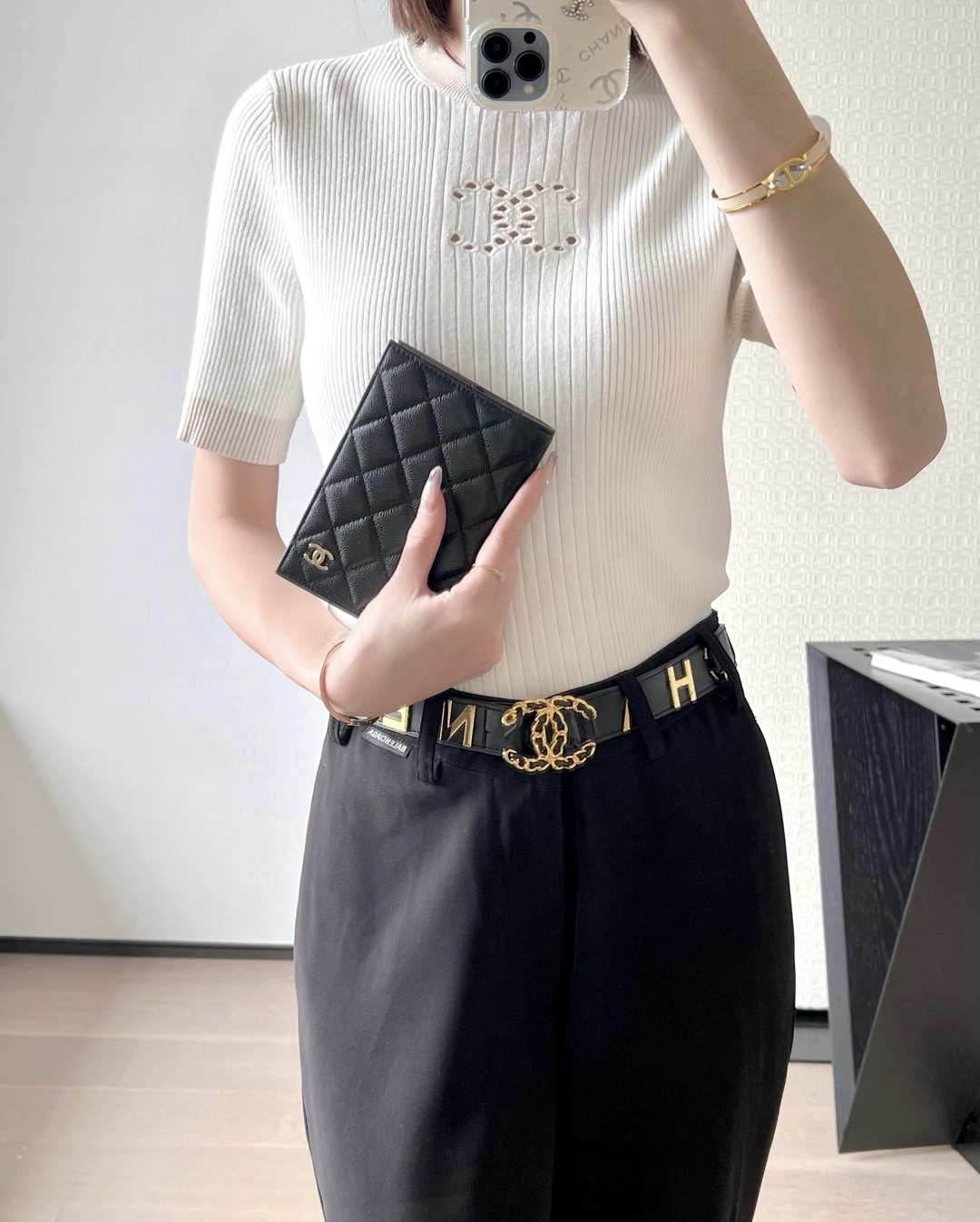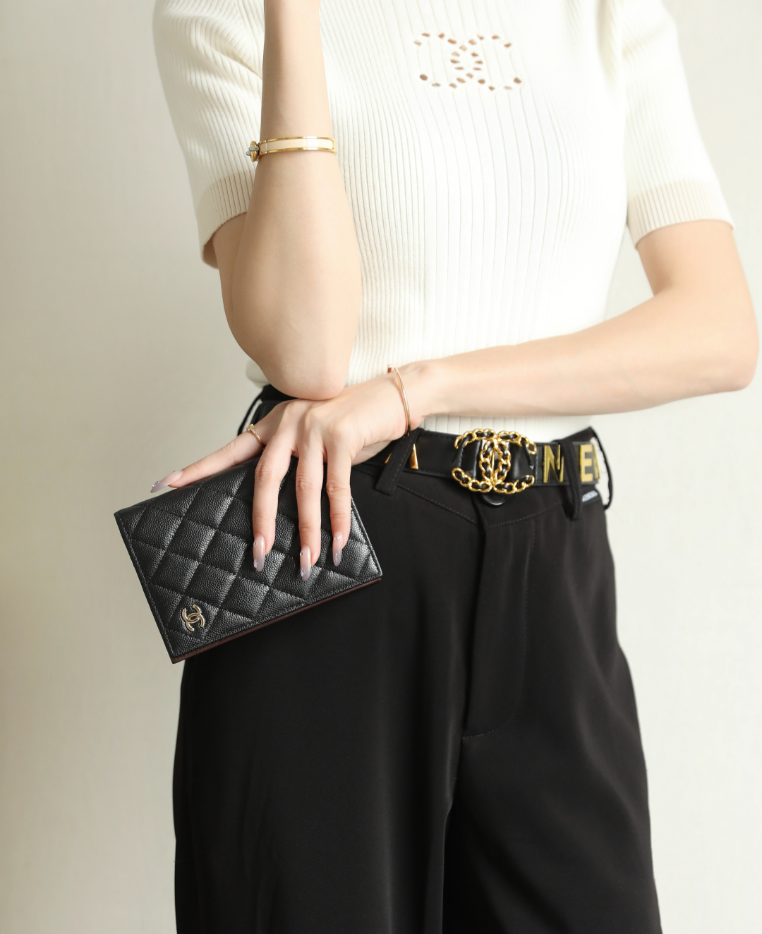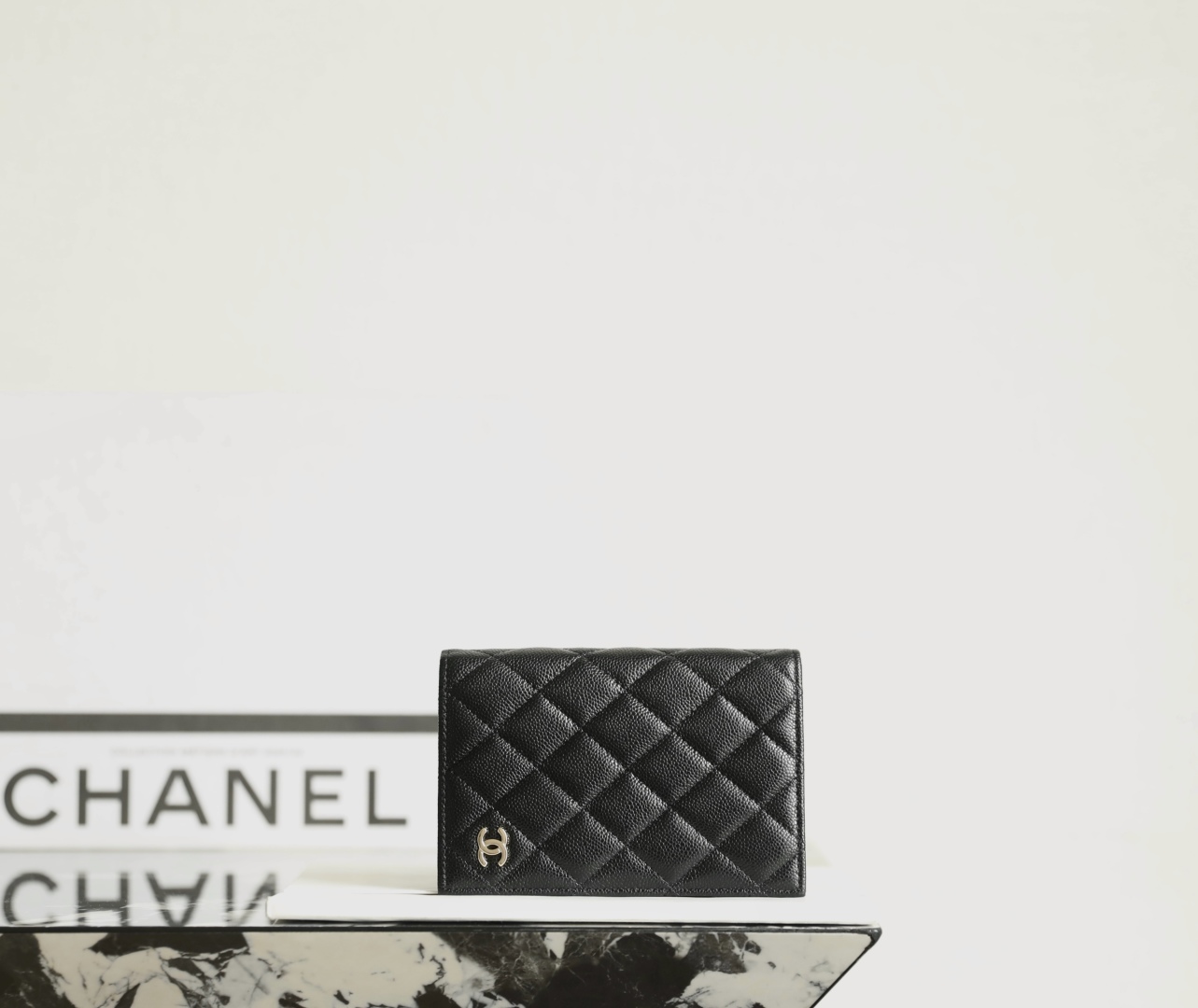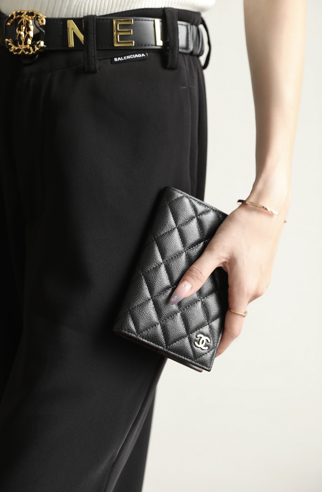 到货🆒𝗖𝗵𝗮𝗻𝗲𝟭经典护照夹 鱼子酱牛皮黑色淡金