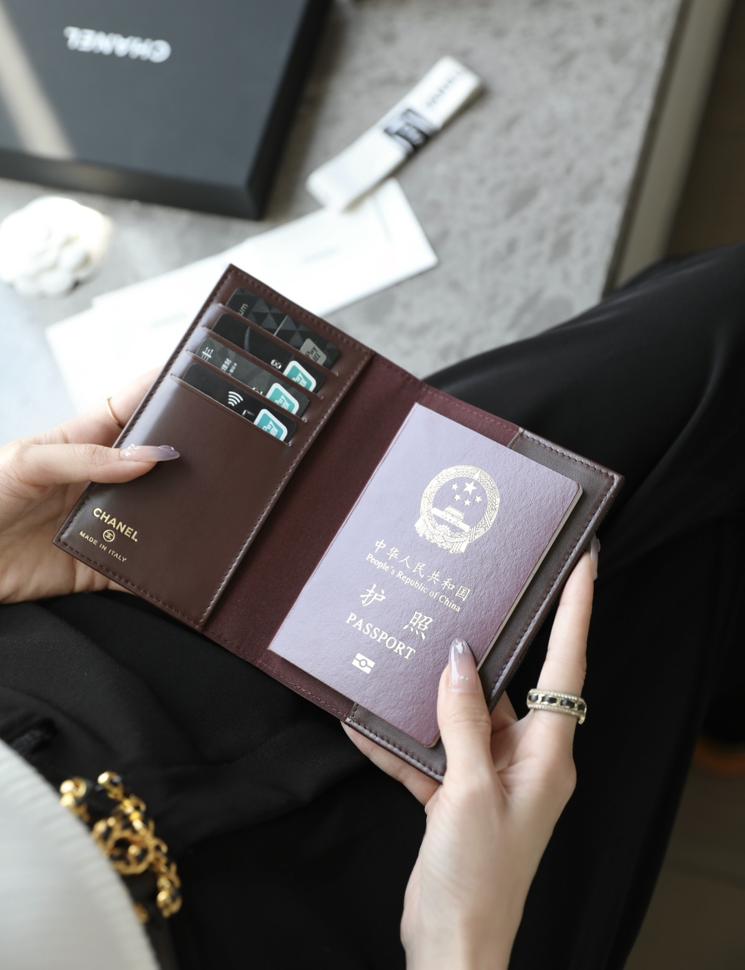 专柜售价𝟧𝟧𝟢𝟢𝗋𝗆𝖻购入开发~ 🔥火热上线𝖢𝗁𝗇𝖾𝟣经典护照夹 鱼子酱小牛皮,邂逅黑金高级✨ 小巧𝖲𝗂𝗓𝖾轻松收纳护照、登机牌、 信用卡等...旅行必备✨ 让你在旅途中也能保持优雅从容。