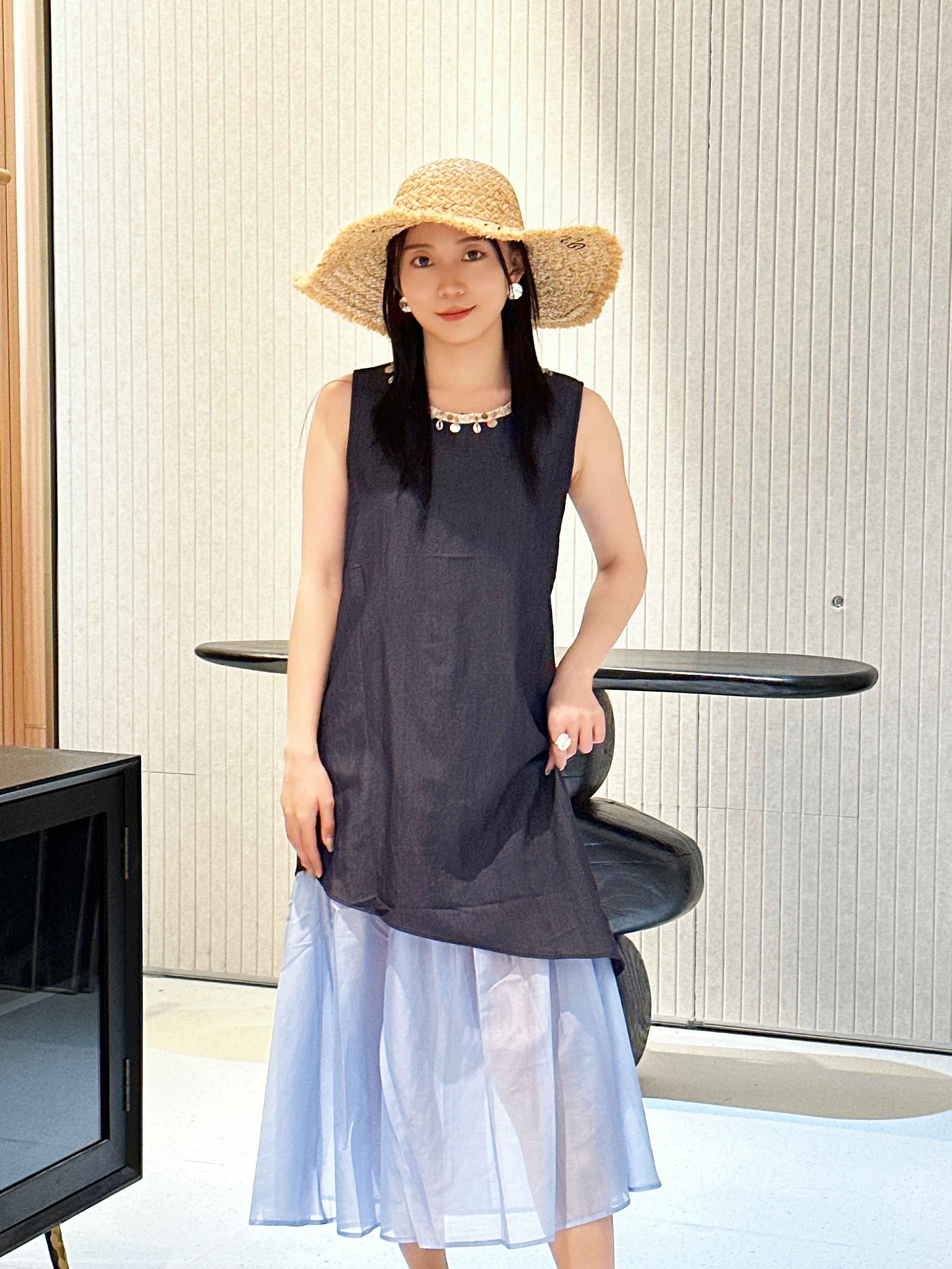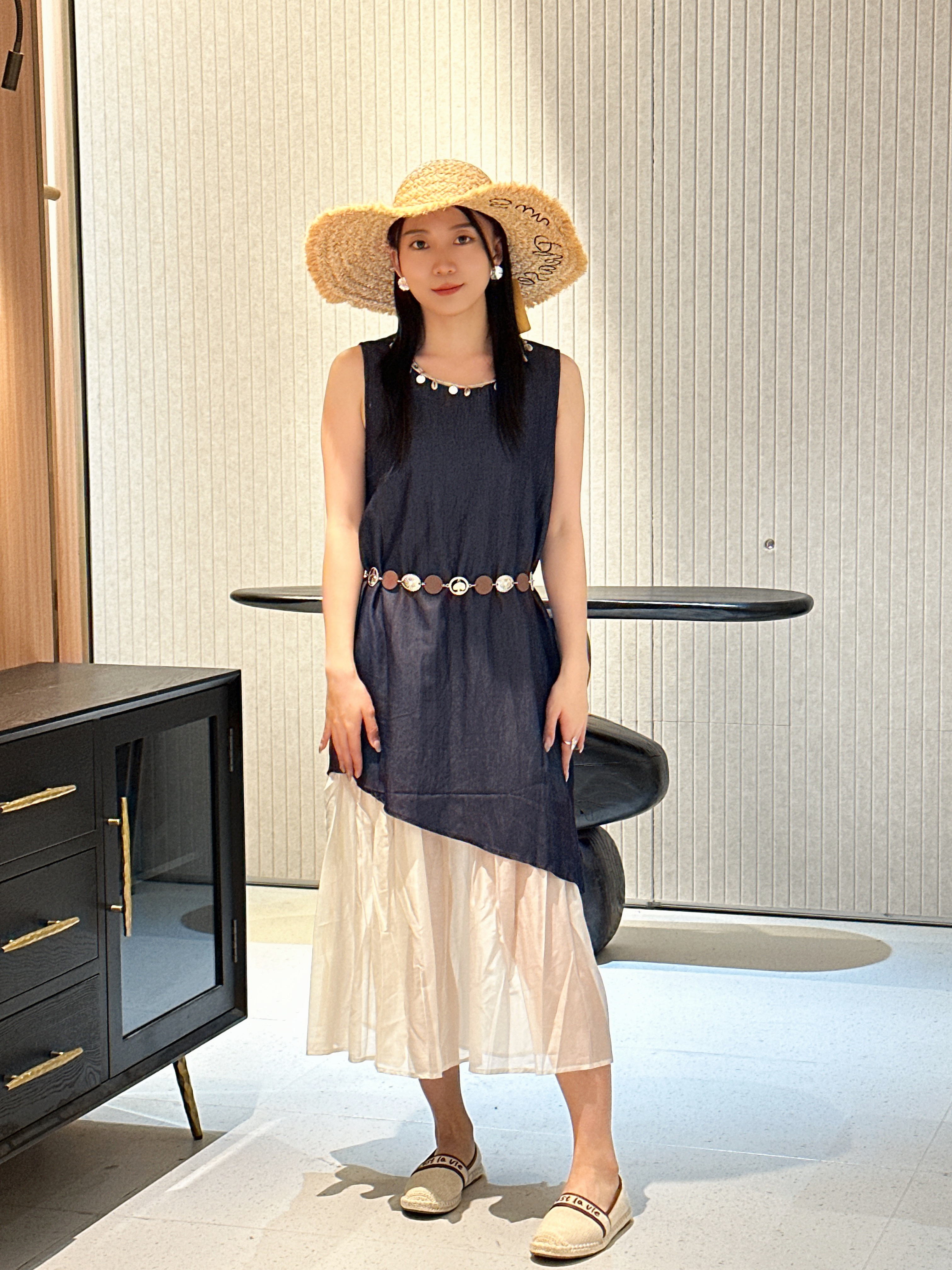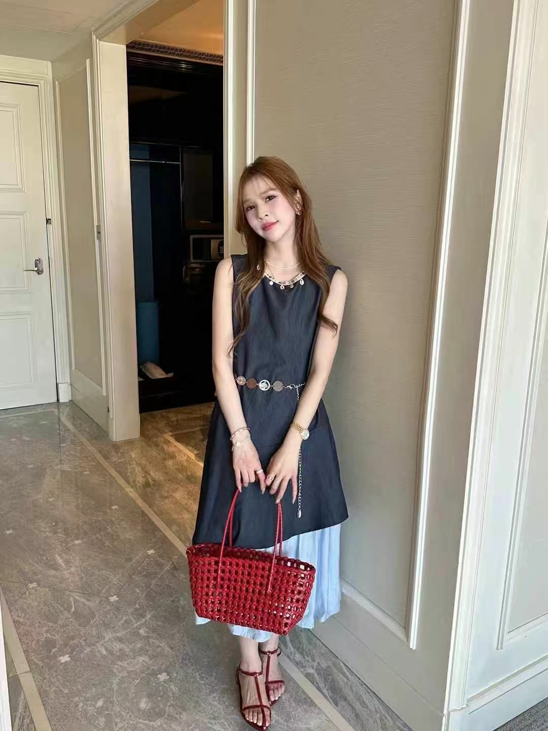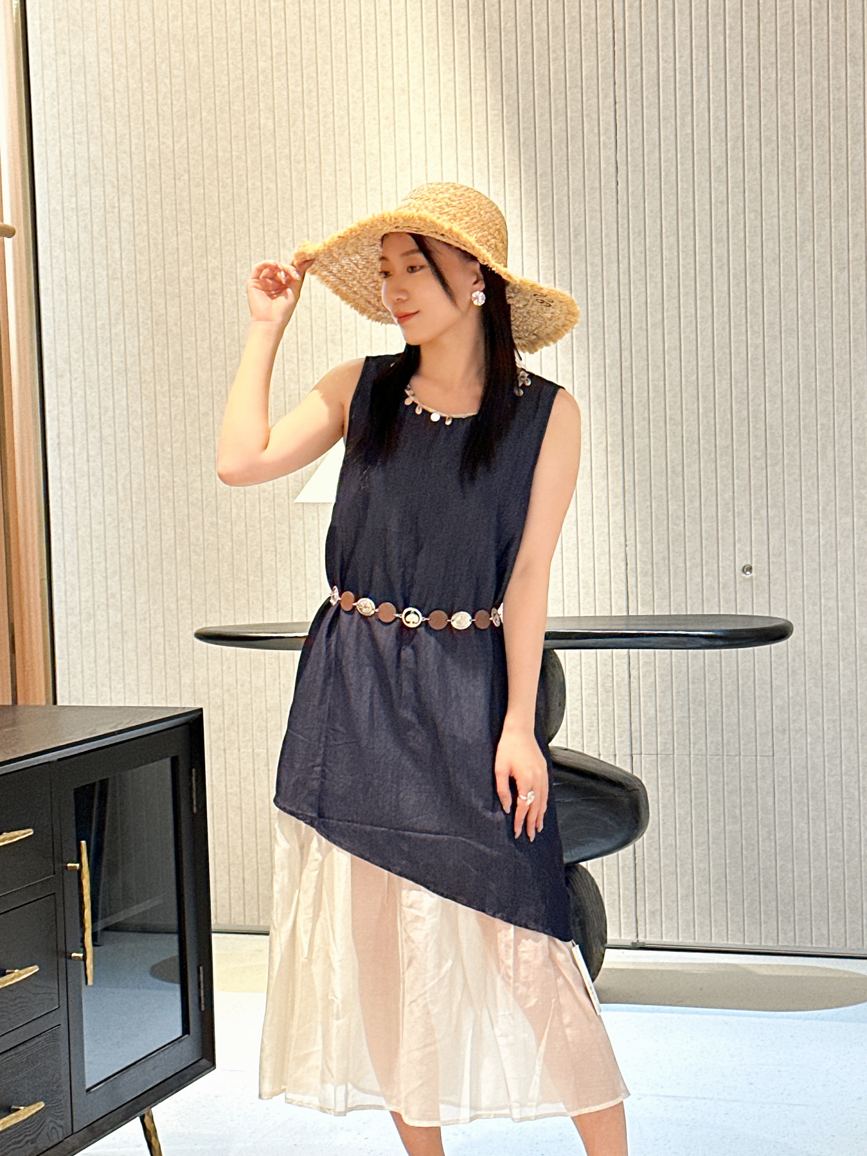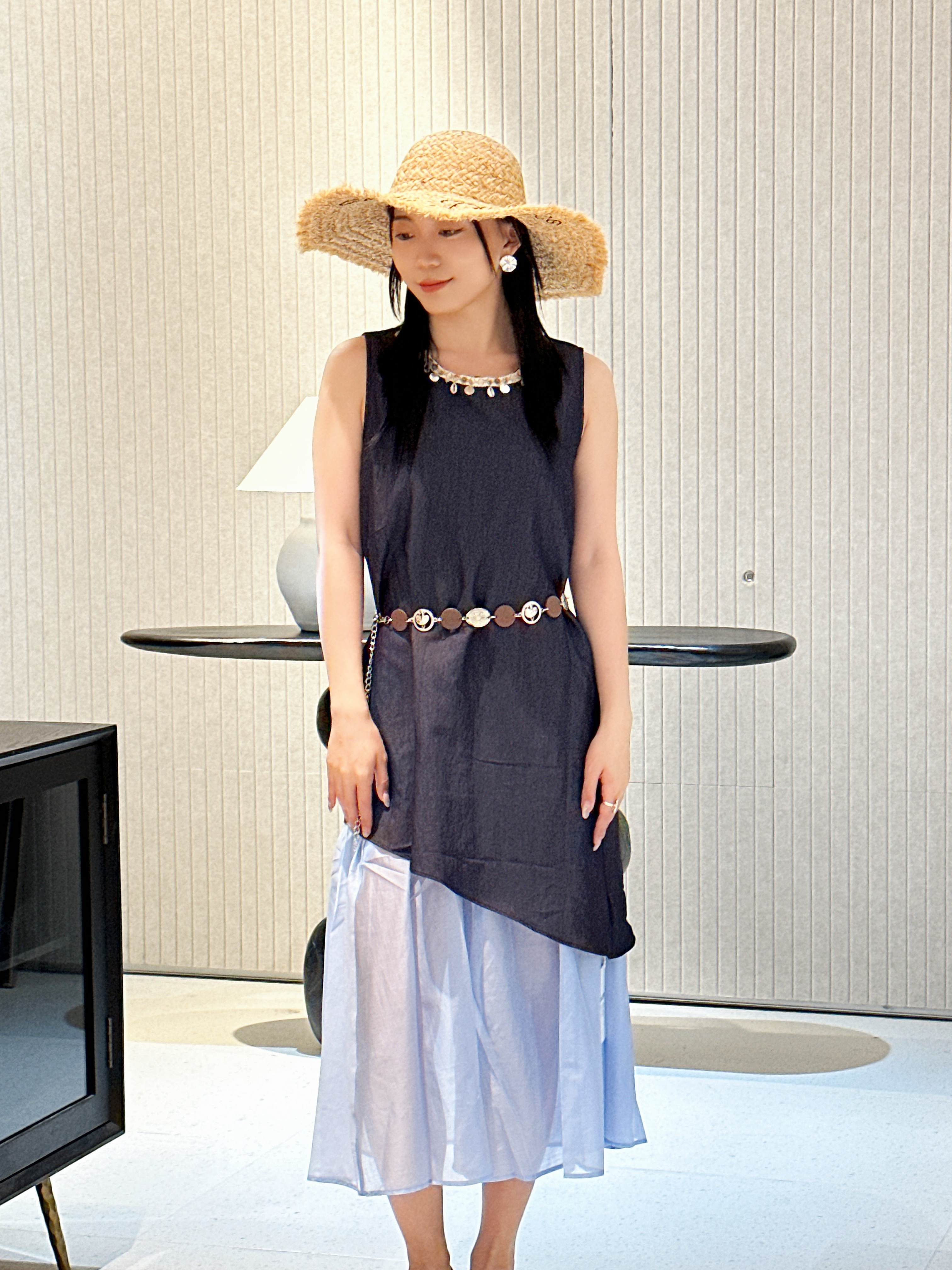 NORNS LADY诺恩 2025法式气质拼接连衣裙优雅设计显瘦长裙无袖背心裙夏季假两件裙子【赠腰带】QMYLMS2795