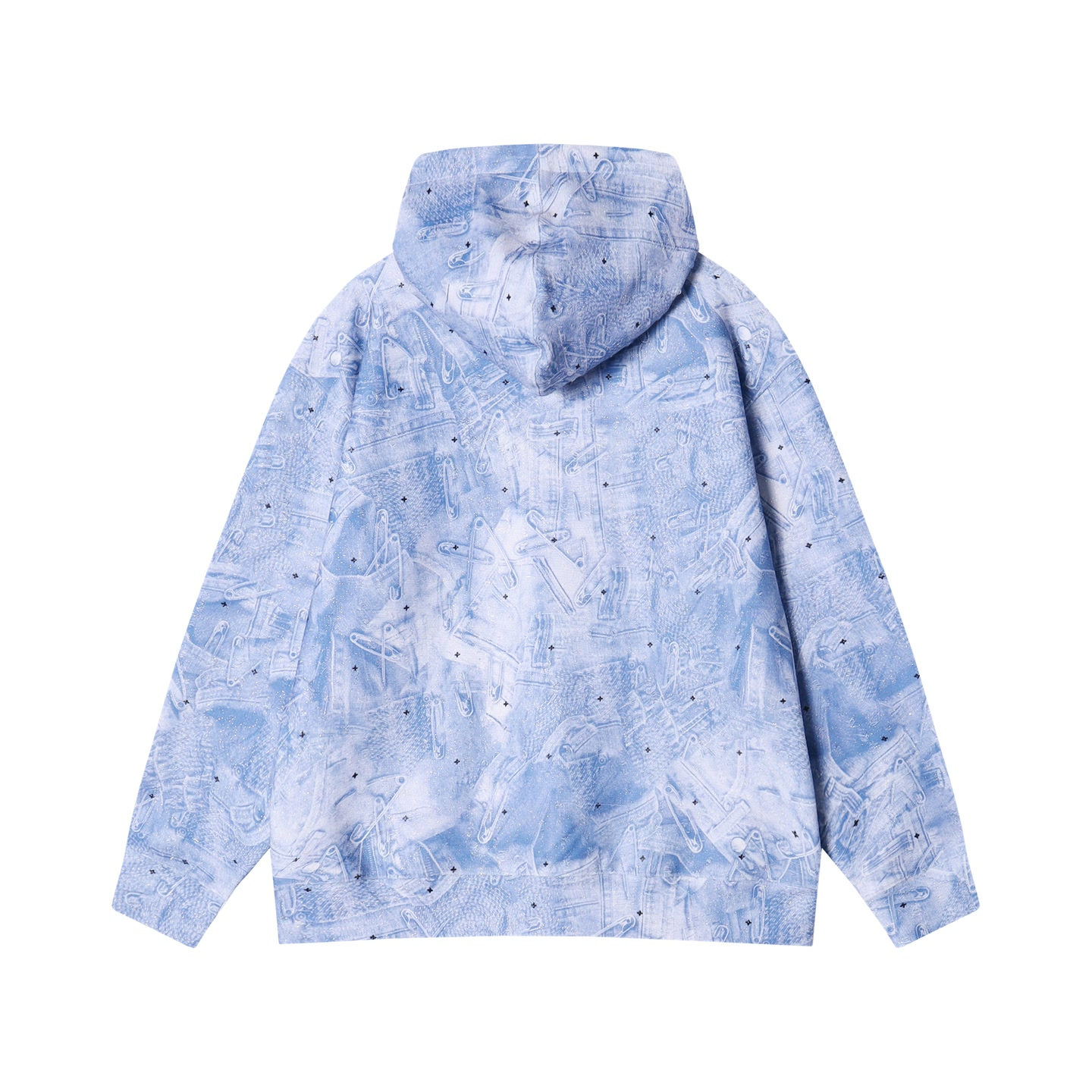 WY329秋冬季新款美式个性扎染十字钉连帽卫衣时尚百搭潮流宽松长袖