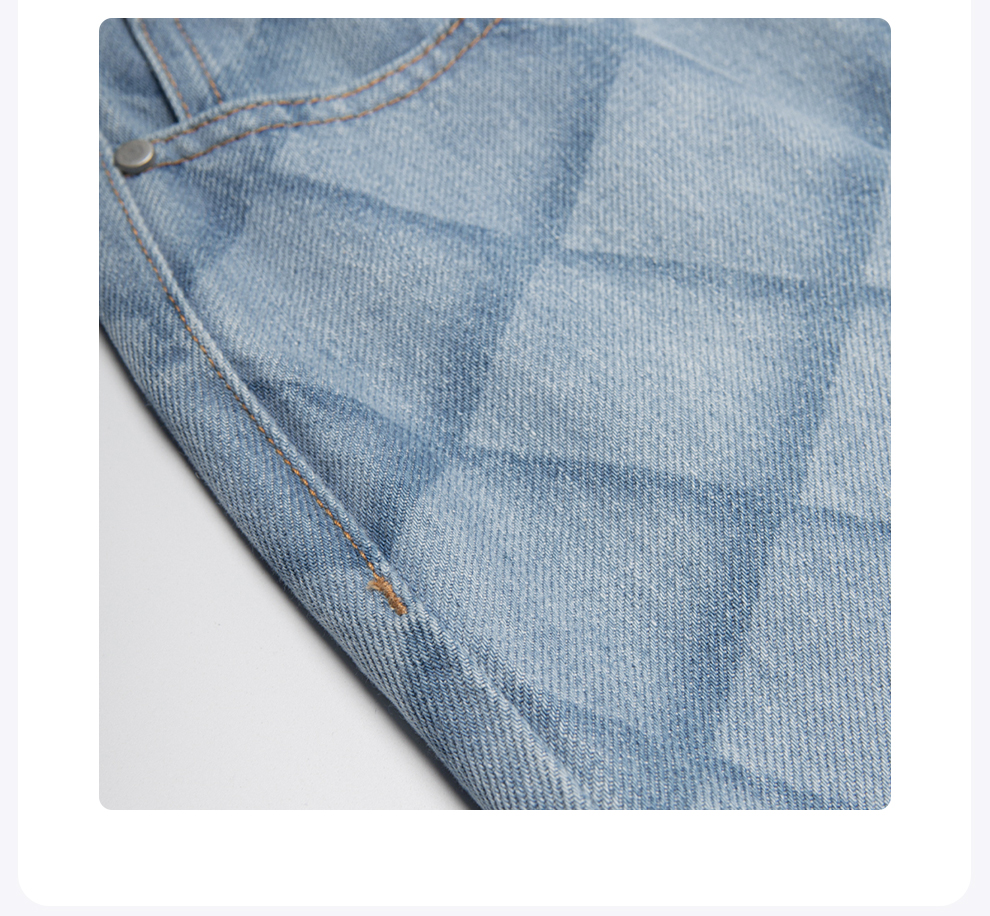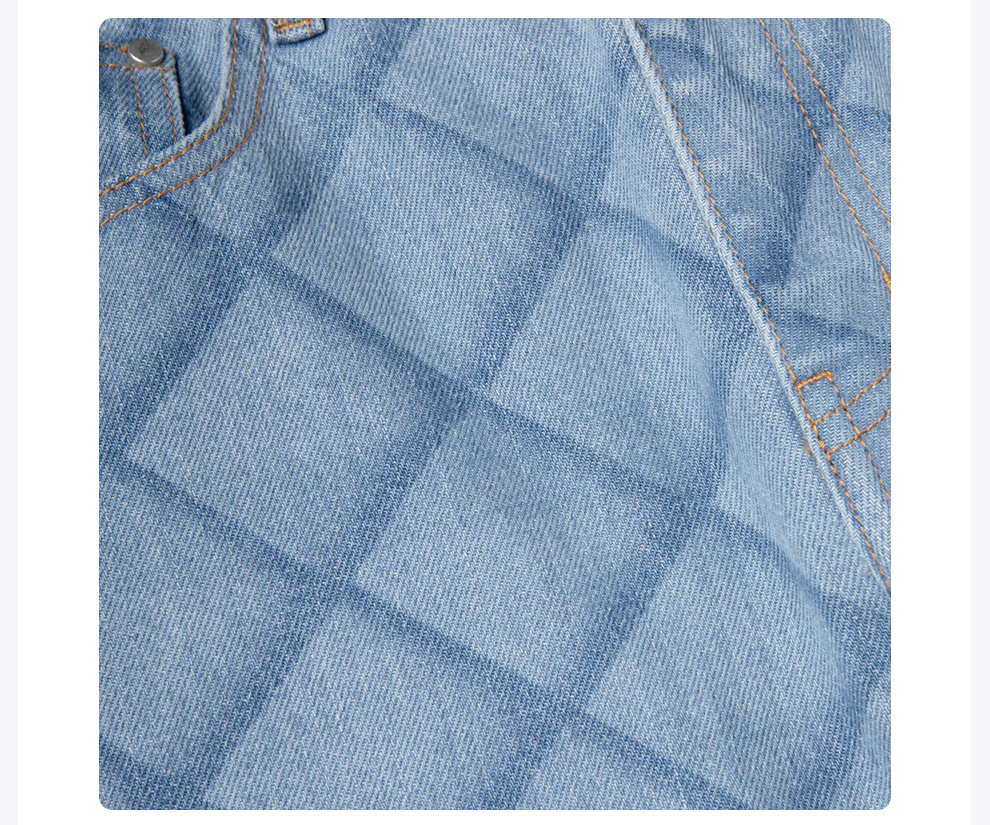 ROMI STUDIO“复古丹宁”高腰宽松直筒菱格浅蓝色牛仔裤 N3548