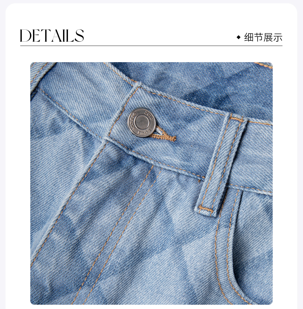 ROMI STUDIO“桃心牛仔”水洗石磨美式高腰垂坠牛仔长裤 RWCAX87047