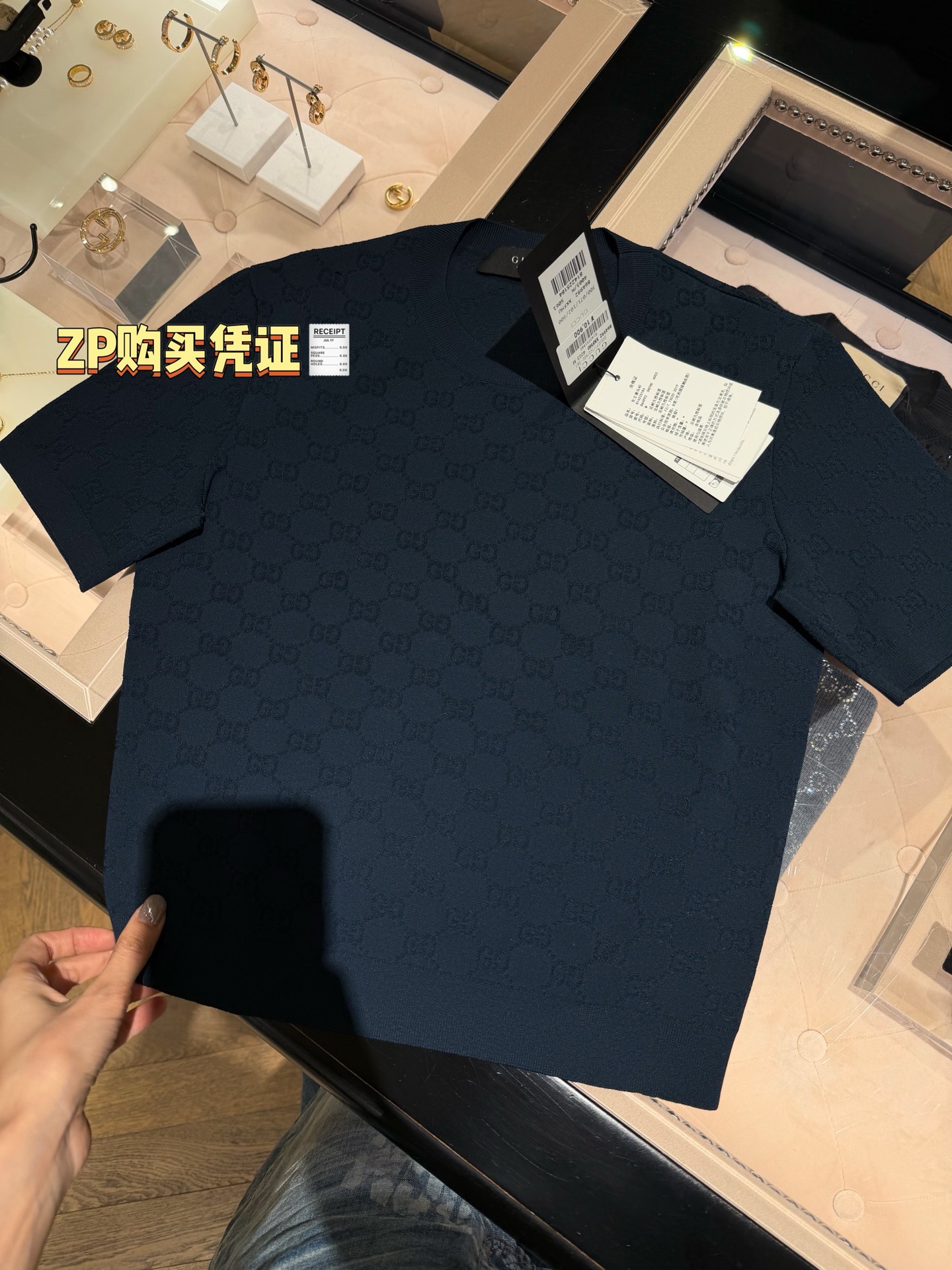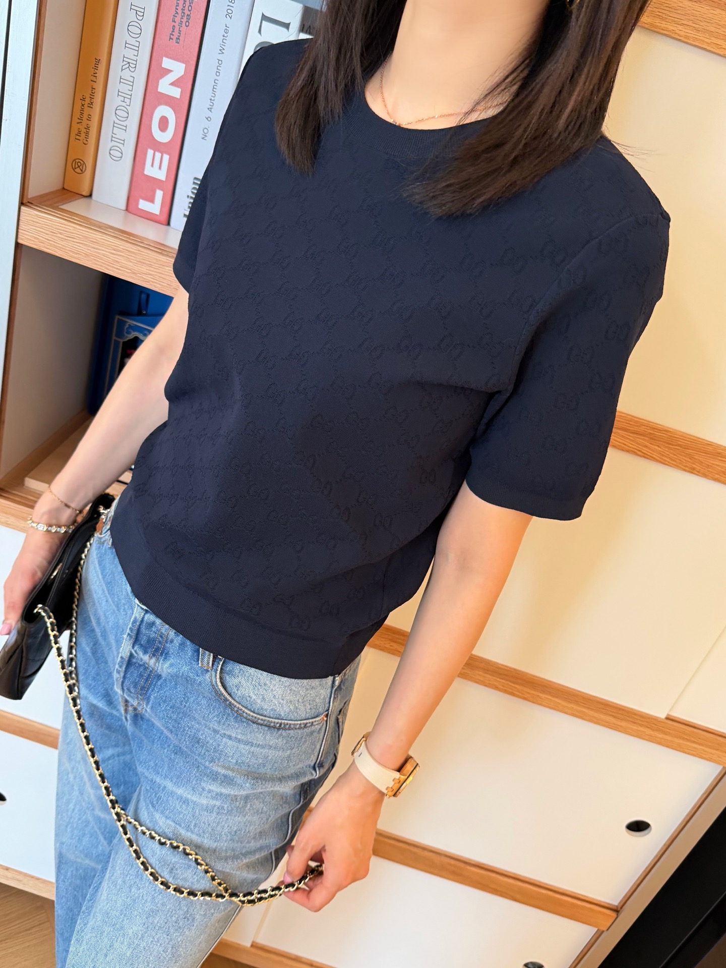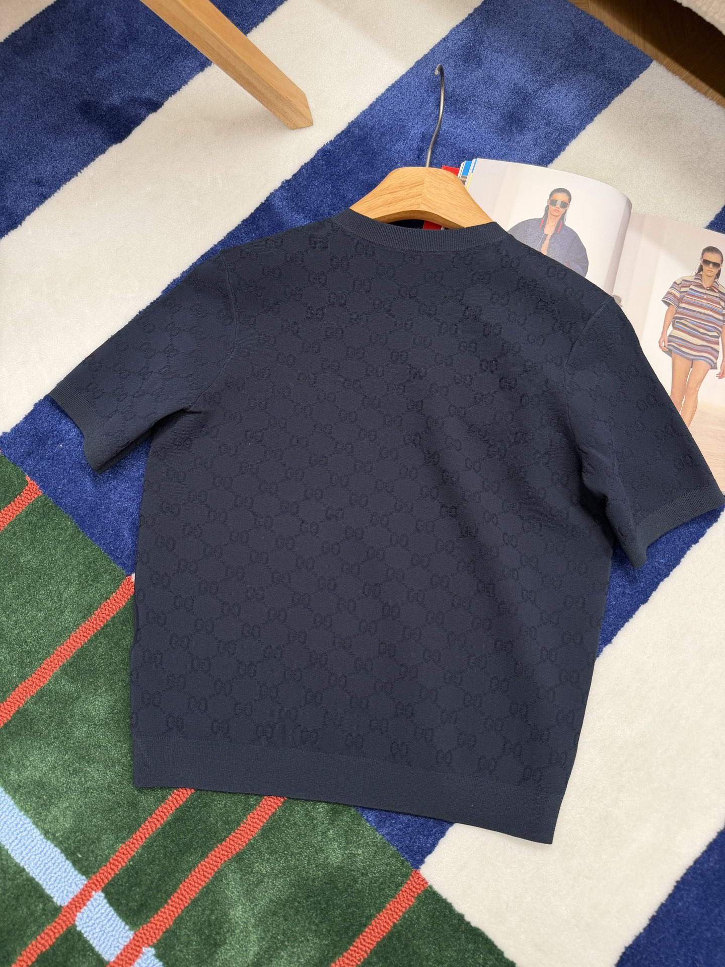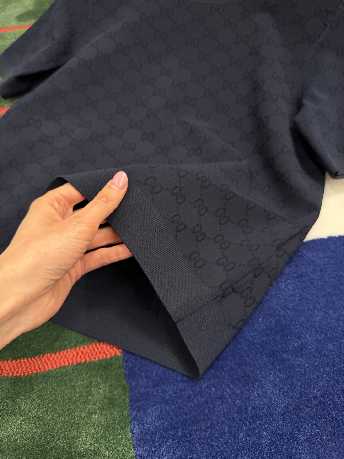 【新款现货发售】26春夏重磅上线🆕 藏蓝色字母提花针织短袖,自带优雅贵气滤镜☑️YB定制纱线🧵如丝垂坠又透气亲肤🫧 同时兼顾利落挺括与抗皱属性,罗纹细节弹性十足,贴合身形不紧绷〰️进口织机精密织就的满版字母肌理,低调又有辨识度😜胸口暗藏品牌标识💫 不张扬却自带高级感,完美诠释“老钱气质”😉质感党闭眼冲,不用刻意打扮也能穿出贵气感,买到就是赚到的气质单品✨码数SML