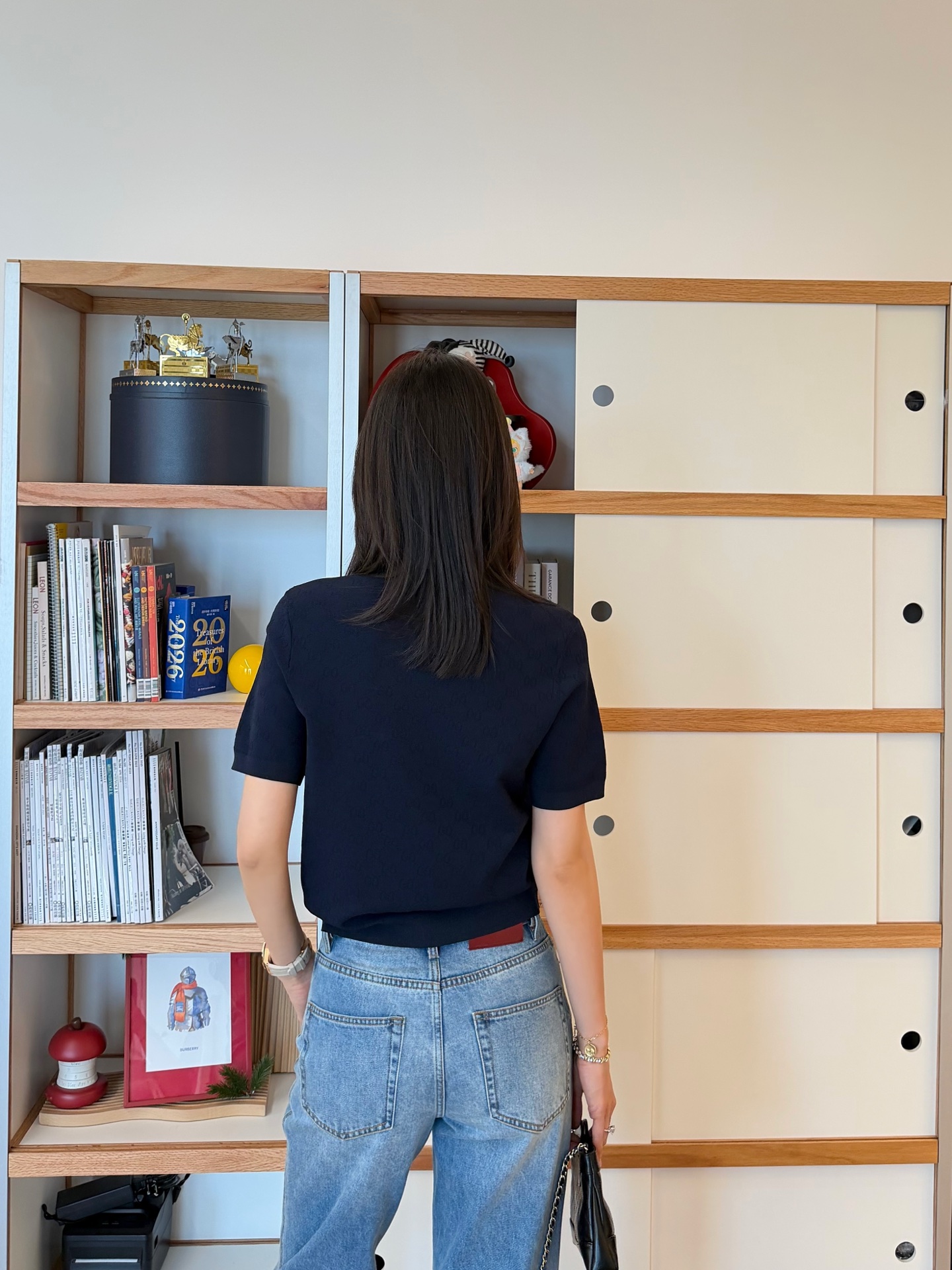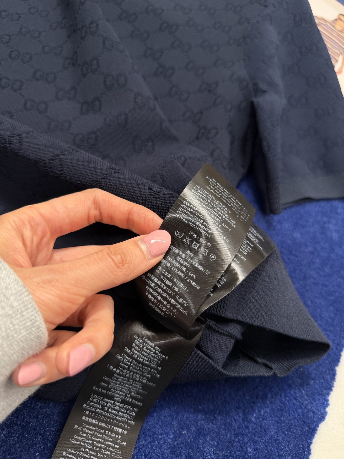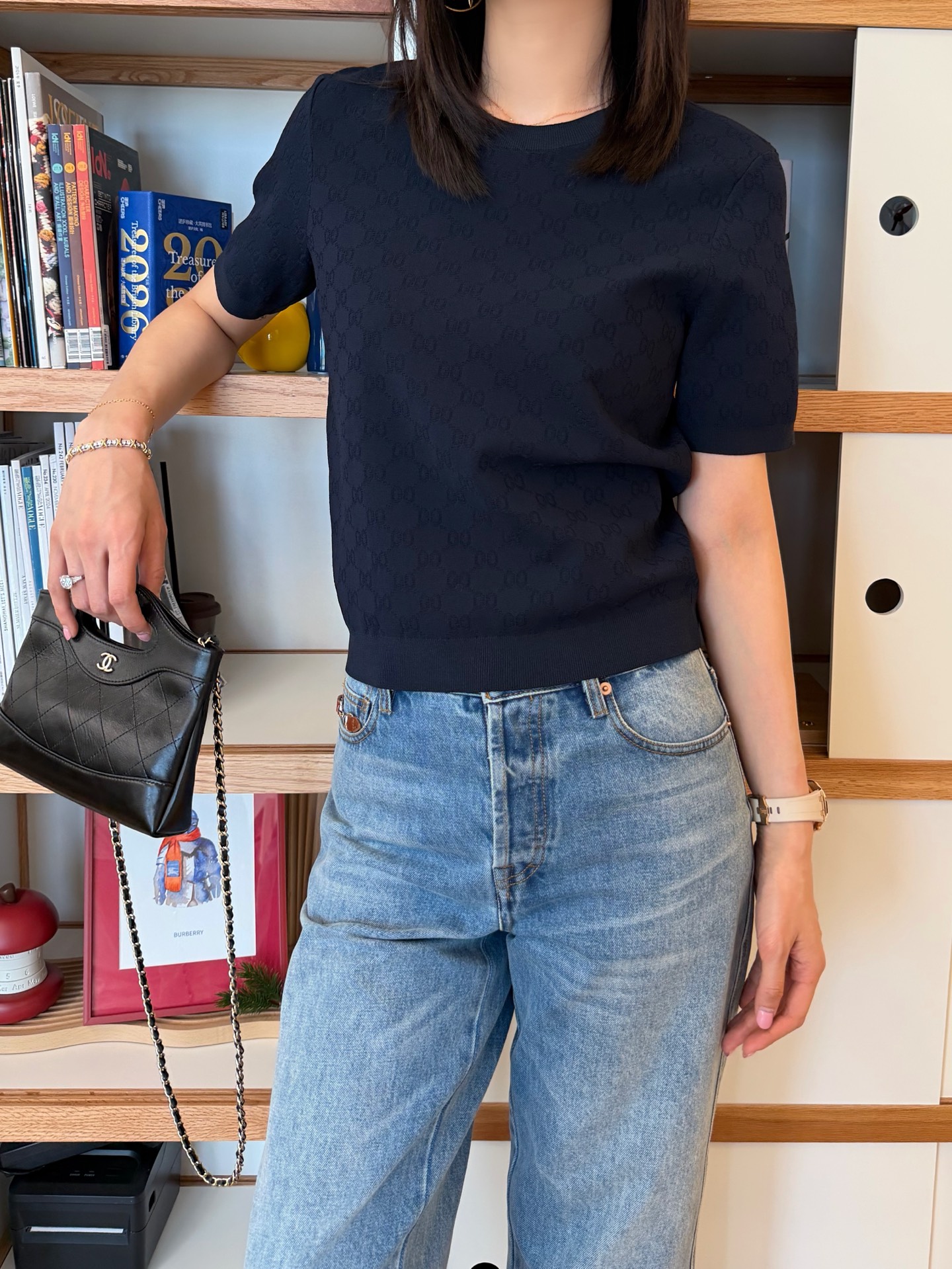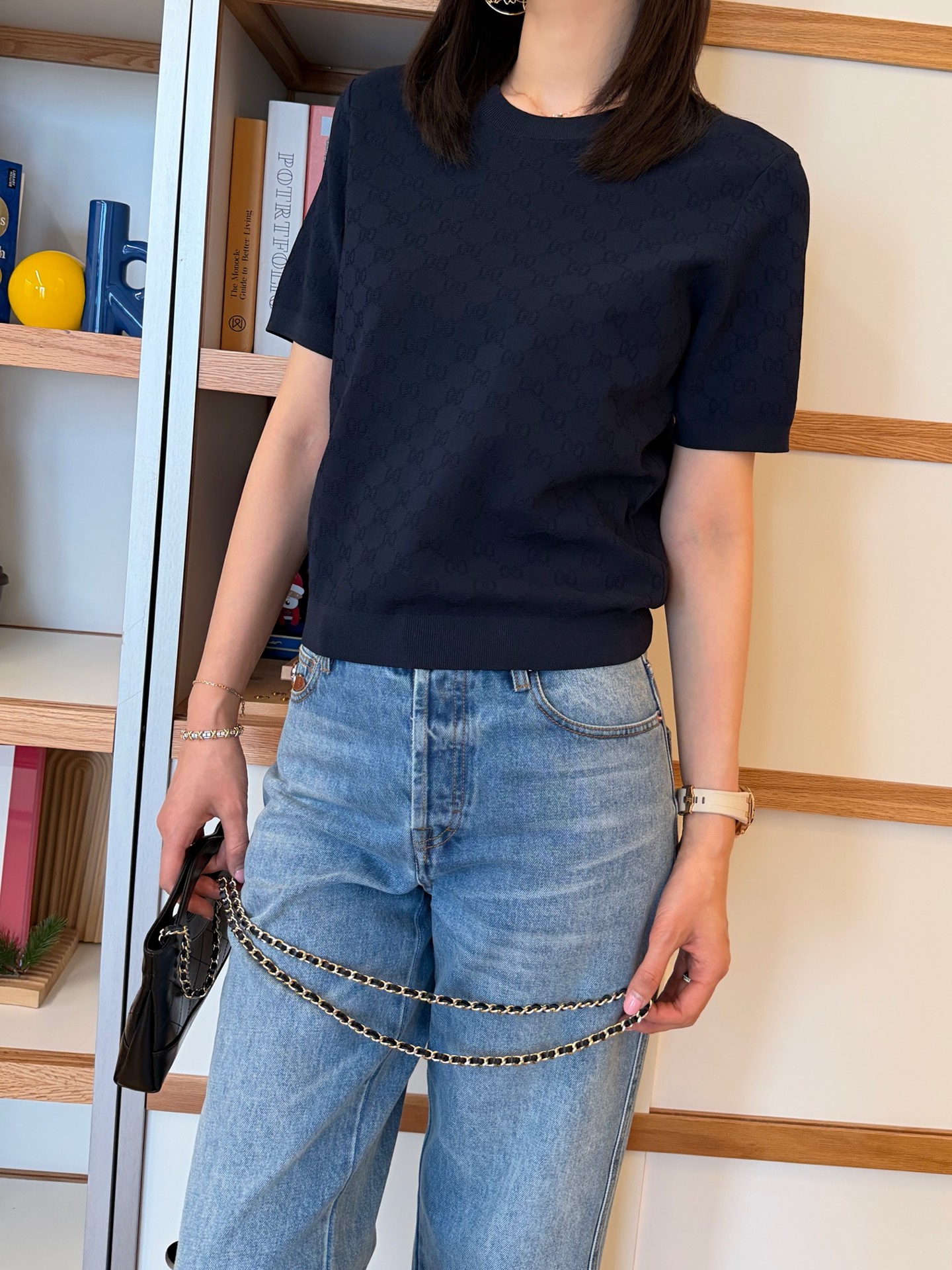 【新款现货发售】26春夏重磅上线🆕 藏蓝色字母提花针织短袖,自带优雅贵气滤镜☑️YB定制纱线🧵如丝垂坠又透气亲肤🫧 同时兼顾利落挺括与抗皱属性,罗纹细节弹性十足,贴合身形不紧绷〰️进口织机精密织就的满版字母肌理,低调又有辨识度😜胸口暗藏品牌标识💫 不张扬却自带高级感,完美诠释“老钱气质”😉质感党闭眼冲,不用刻意打扮也能穿出贵气感,买到就是赚到的气质单品✨码数SML
