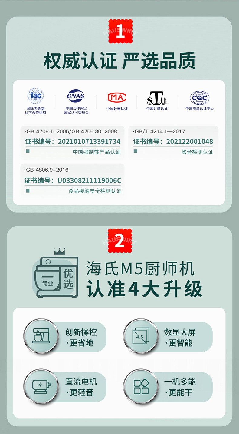 海氏M5静音多功能厨师机家用烹饪机料理机 不支持七天无理由
