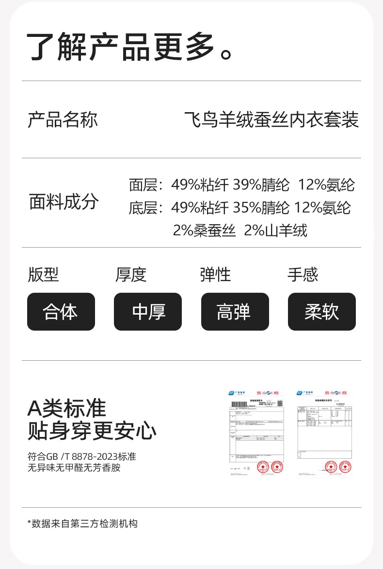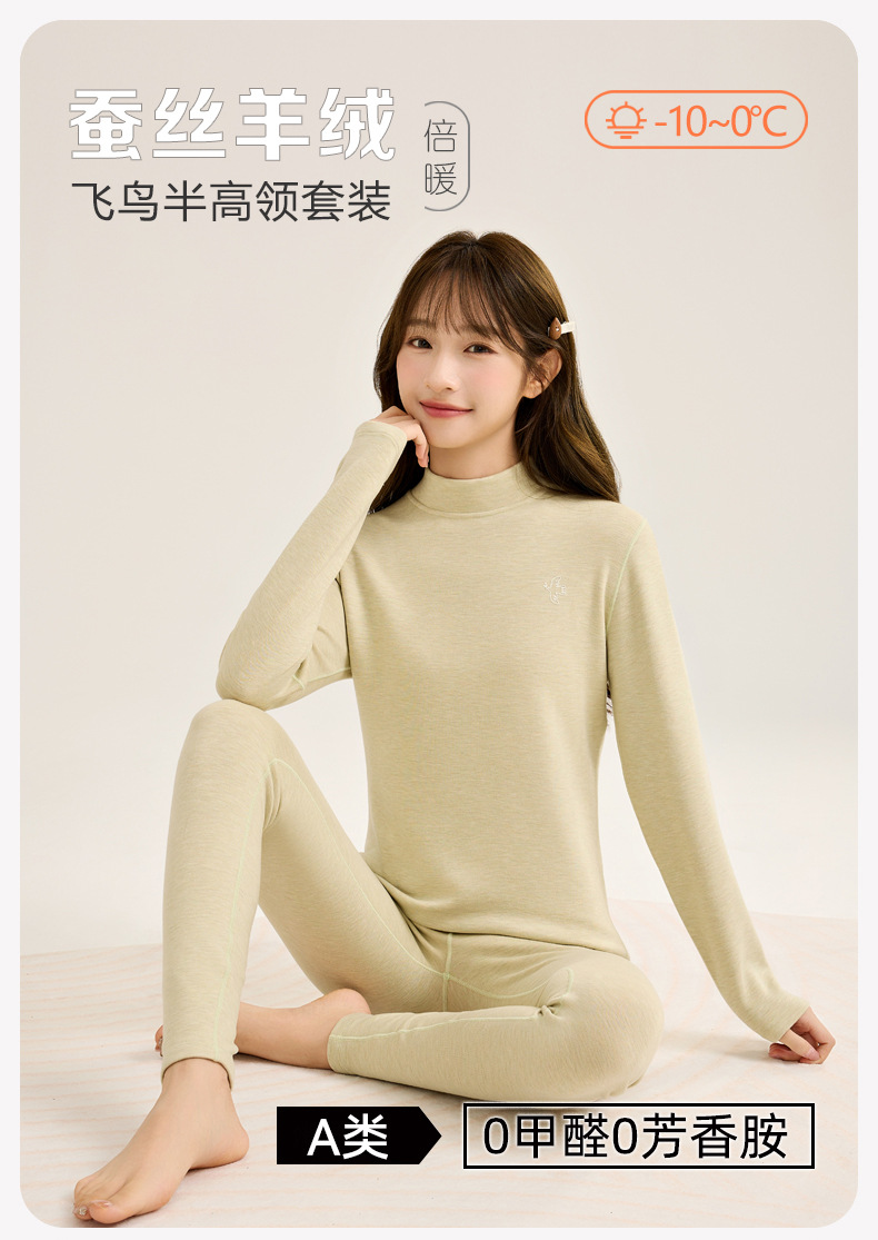 枳芽 飞鸟羊绒蚕丝内衣套装(女款) D016D