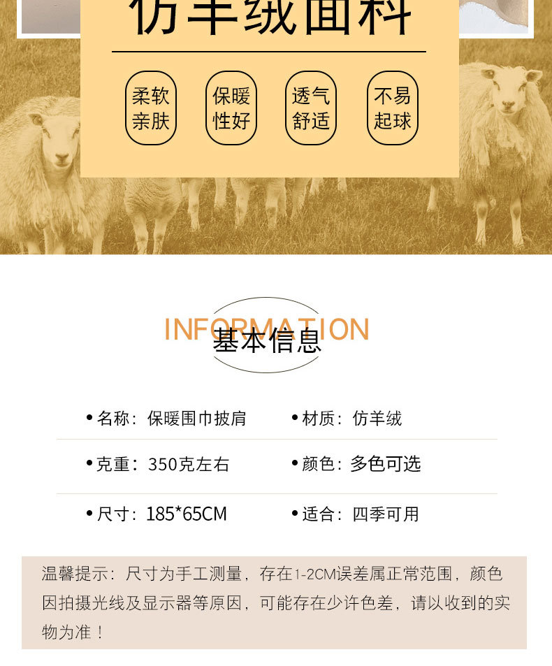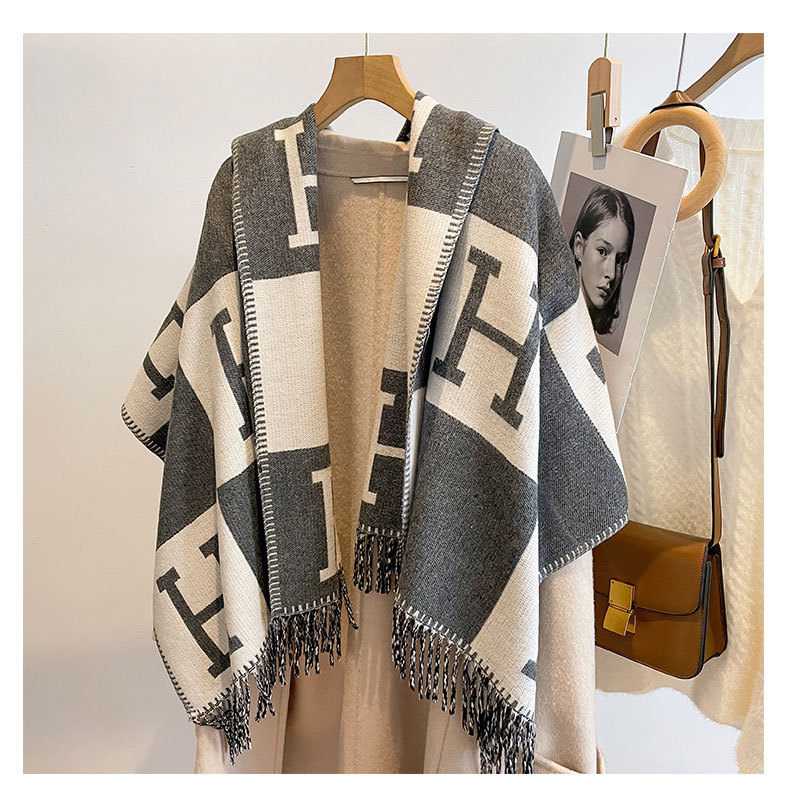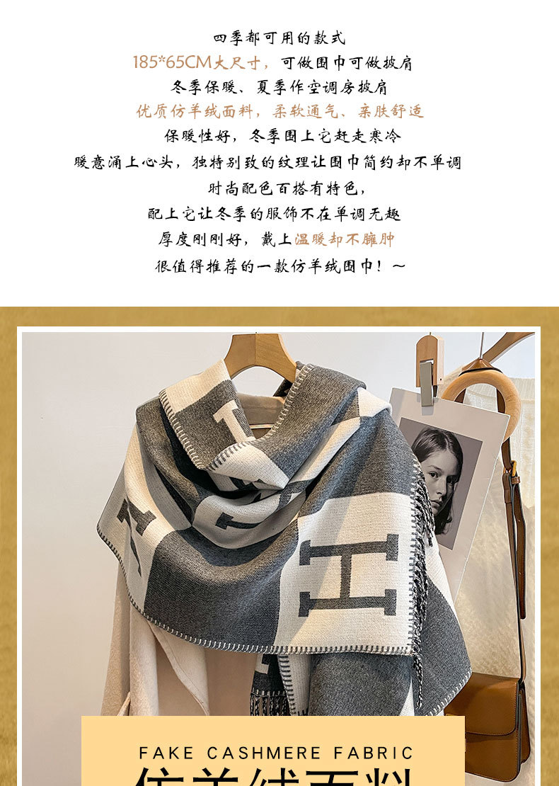 阿毣毣 新款仿羊绒流苏围巾女 H秋冬保暖双面围巾方格披肩