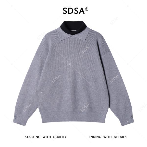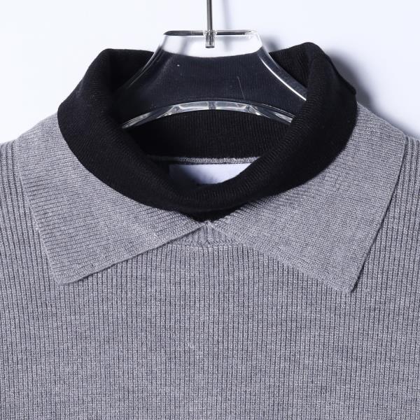 02288SDSA男士秋冬新款痞帅男装老钱风撞色假两件立领翻领针织衫毛衣