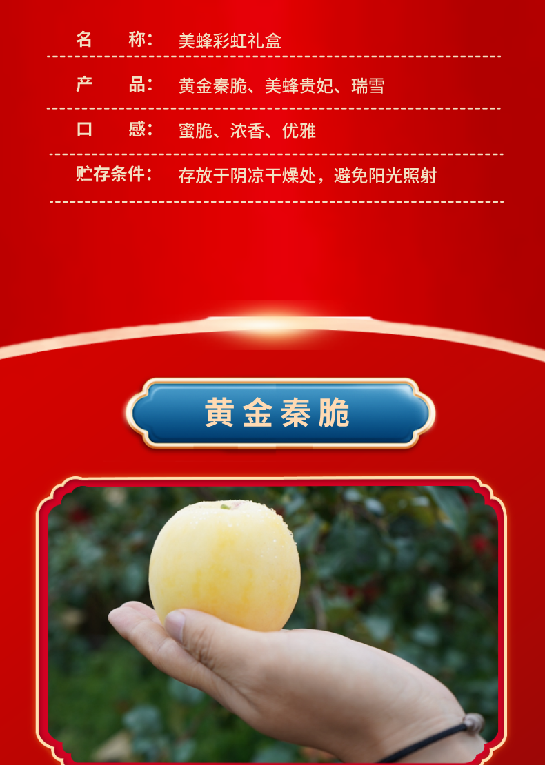 【顺丰/京东】美蜂彩虹苹果礼盒 黄金秦脆+贵妃+瑞雪 高山净土 生态种植 远离污染 口感蜜脆浓香 BMF