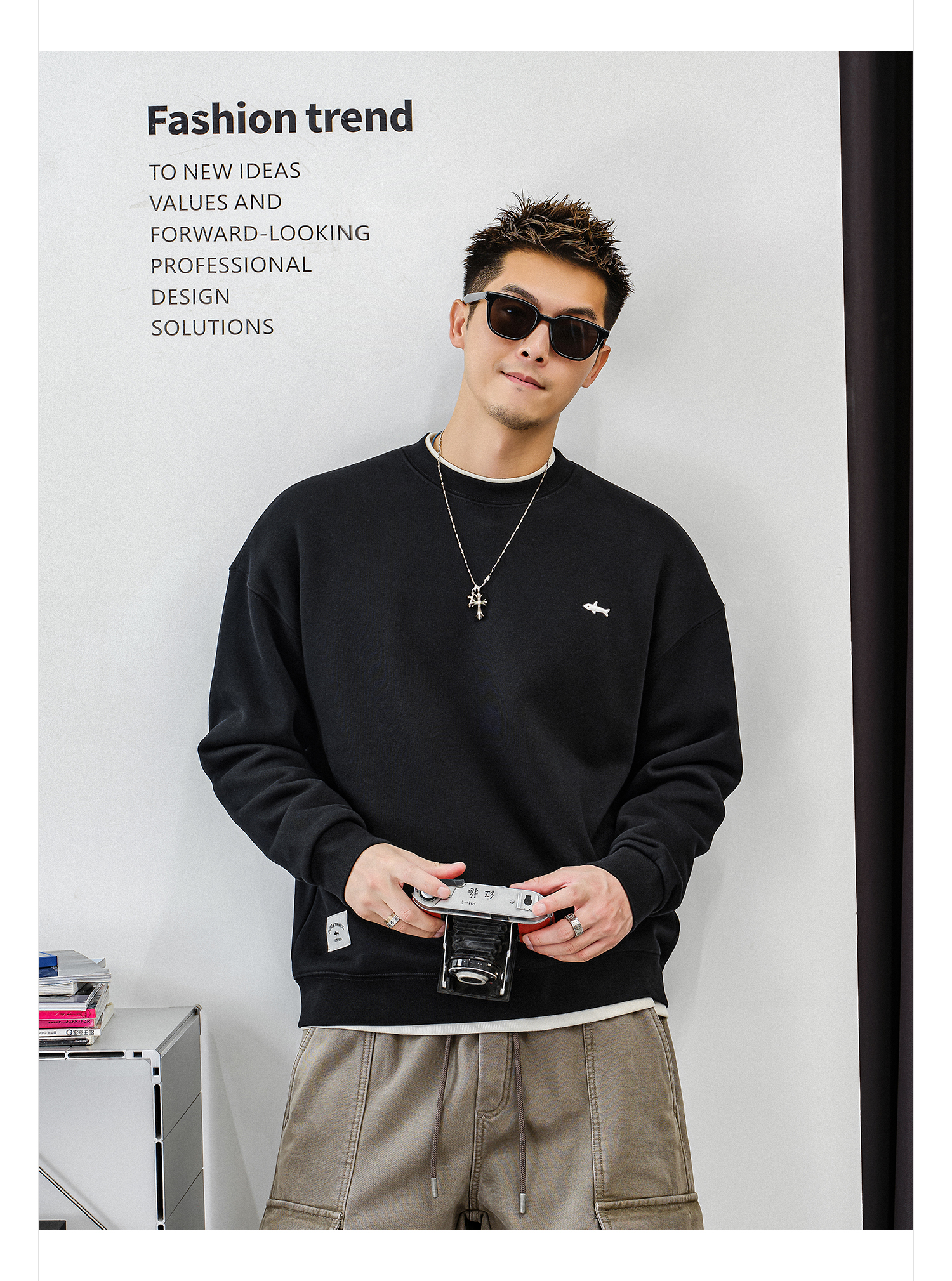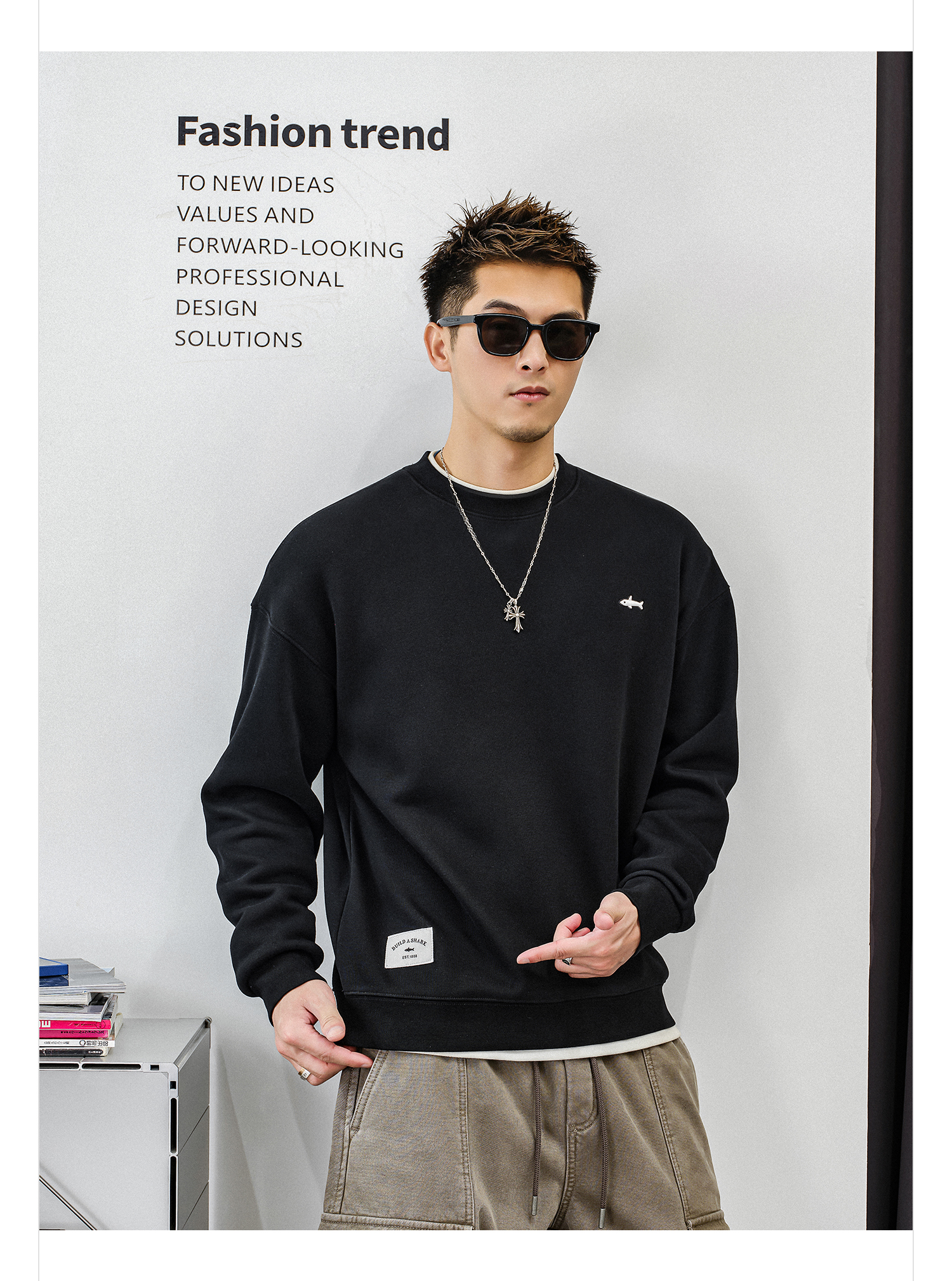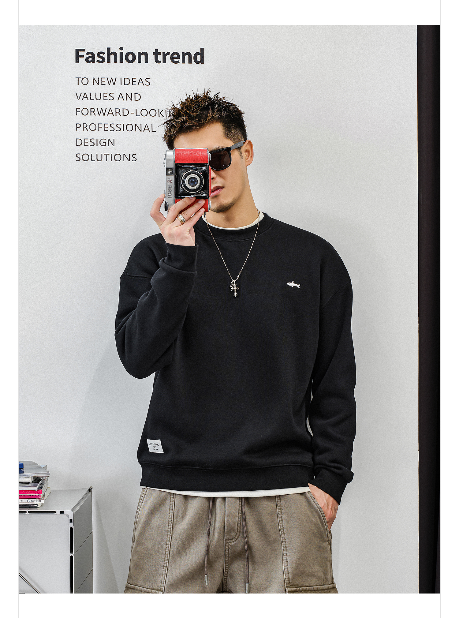 徐太浪【鲨鱼刺绣 时尚贴布】加绒卫衣男秋冬2025新款打底衫上衣