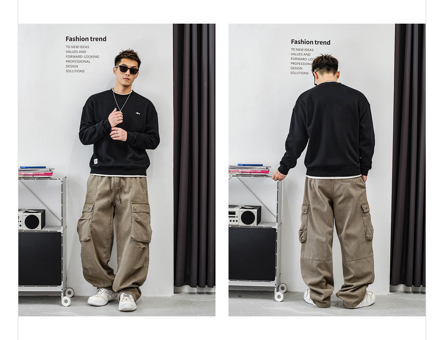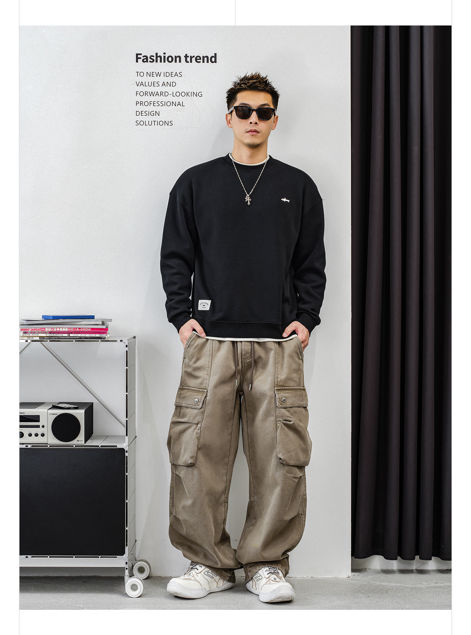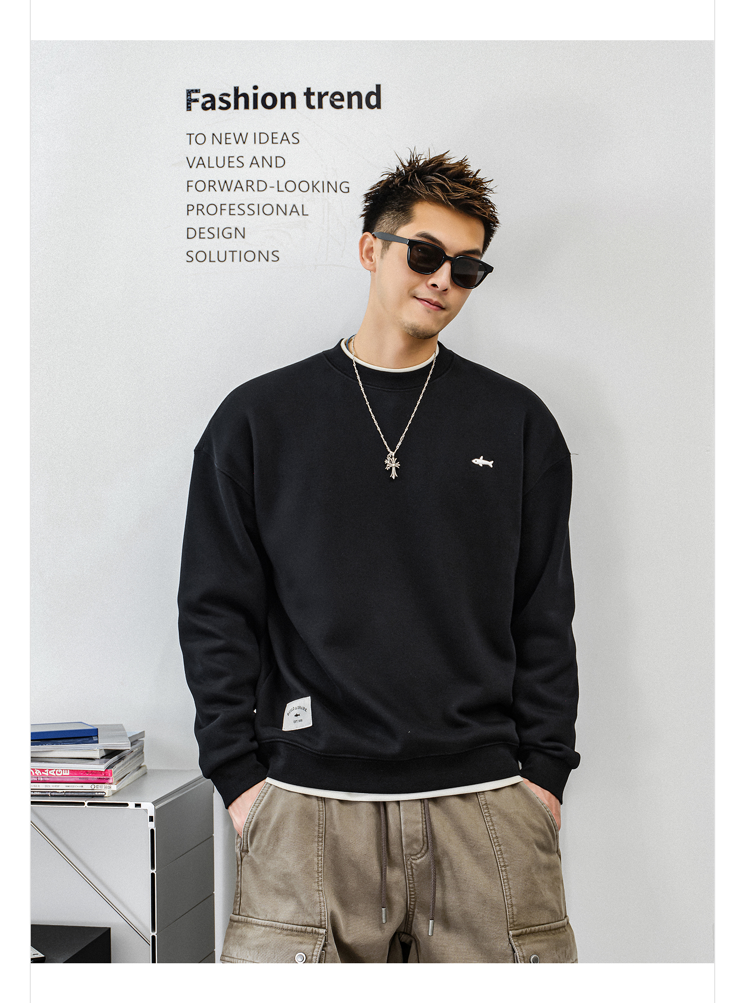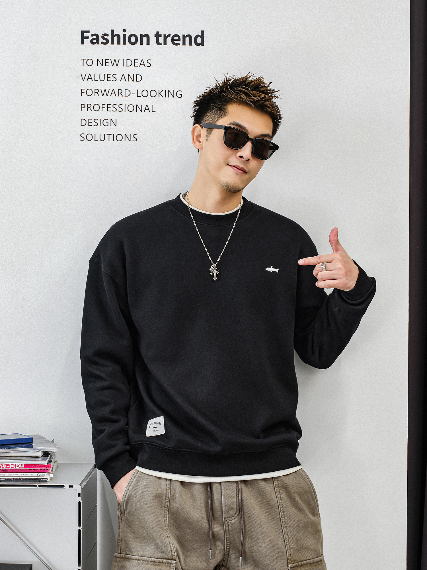 徐太浪【鲨鱼刺绣 时尚贴布】加绒卫衣男秋冬2025新款打底衫上衣