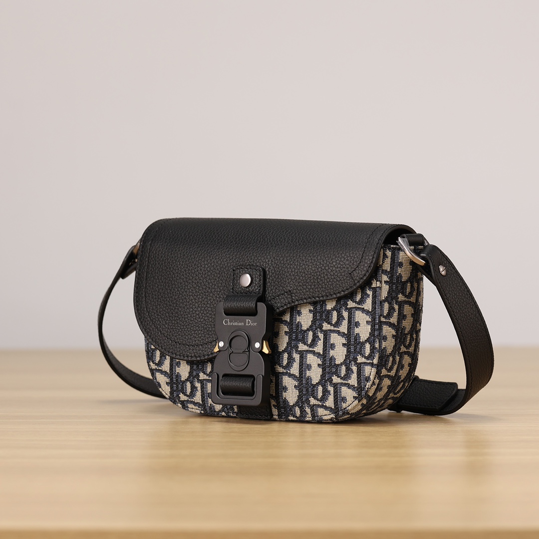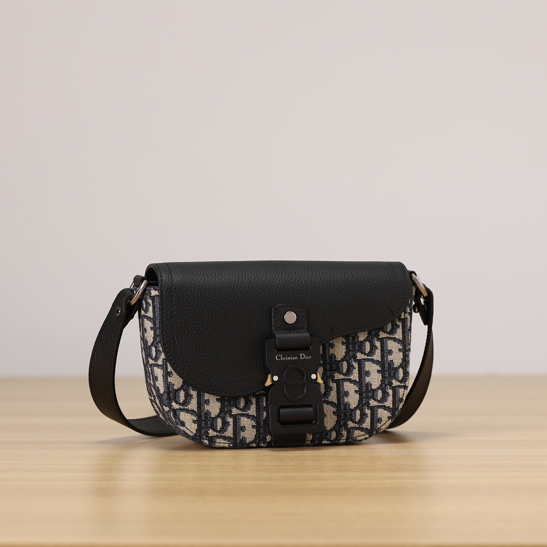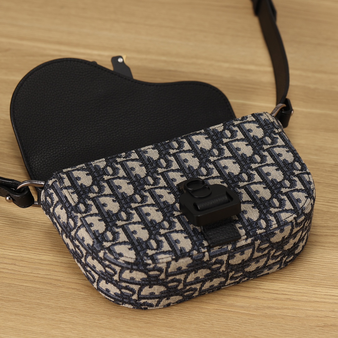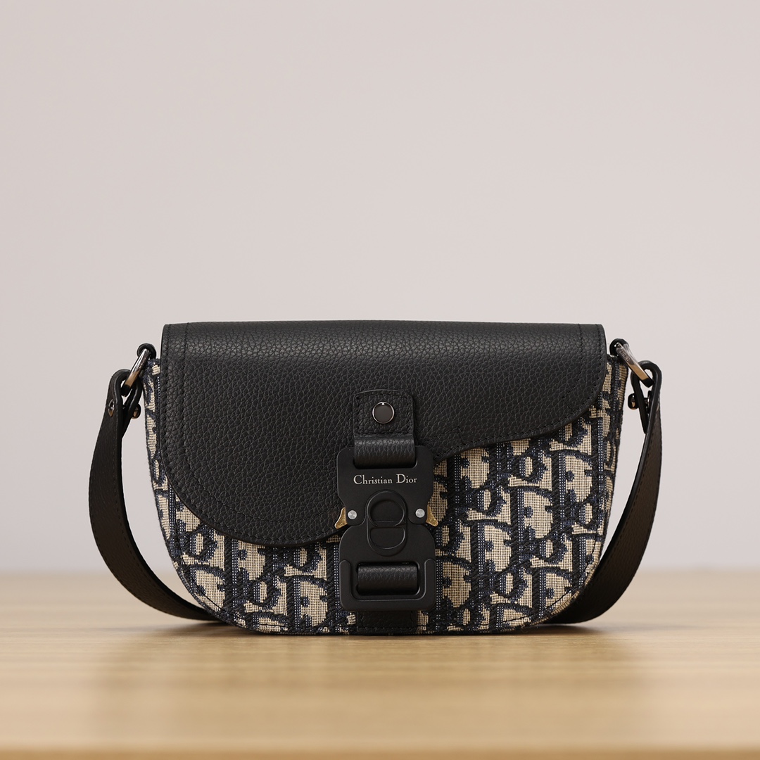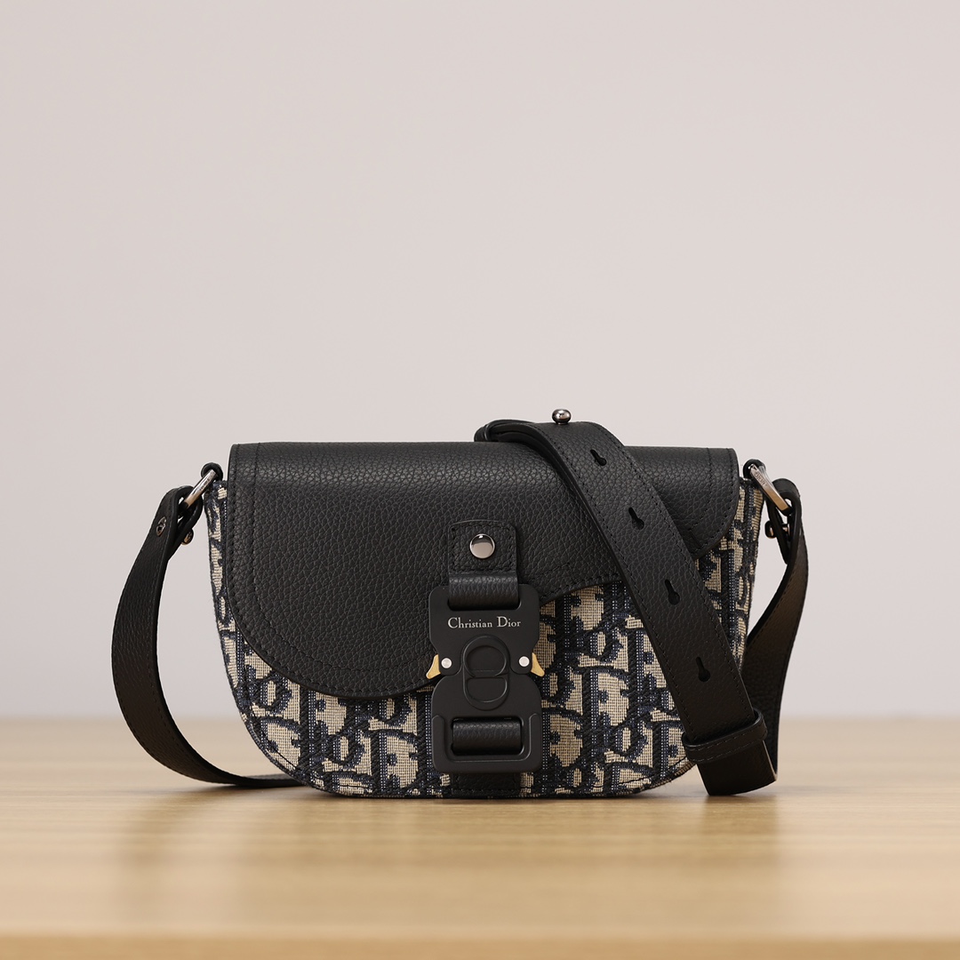 采用米色和黑色, Obique 印花面料精心制作,搭配黑色粒面牛皮革马鞍翻盖和 Christian Dior 标志铝扣。