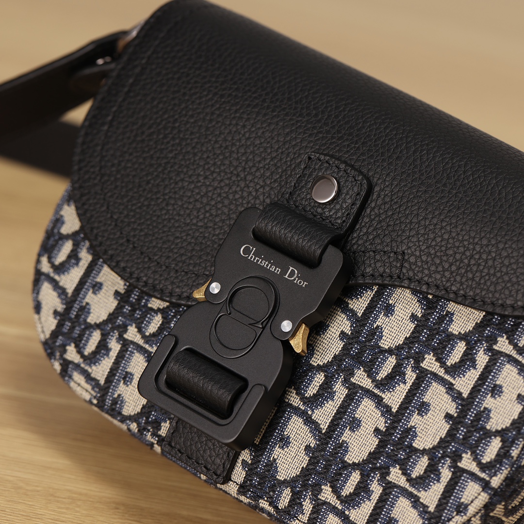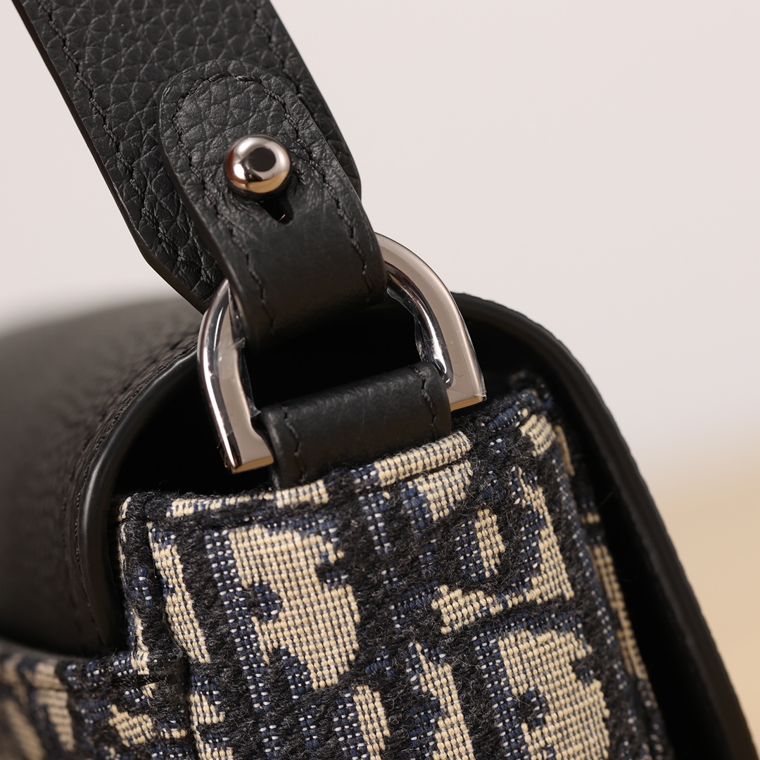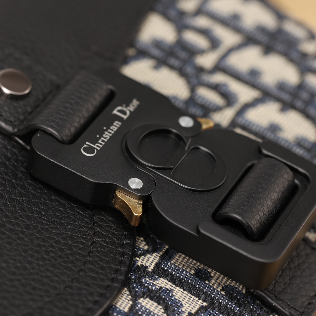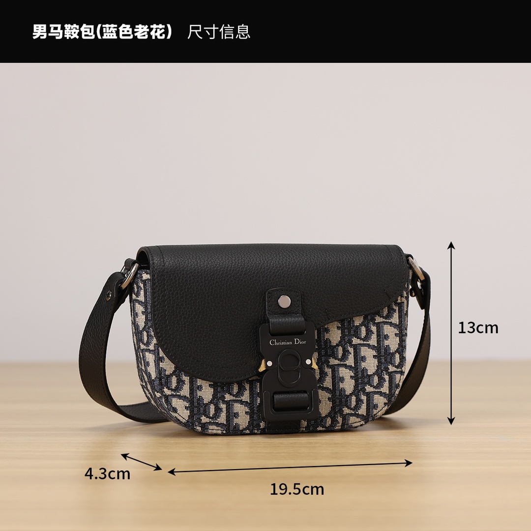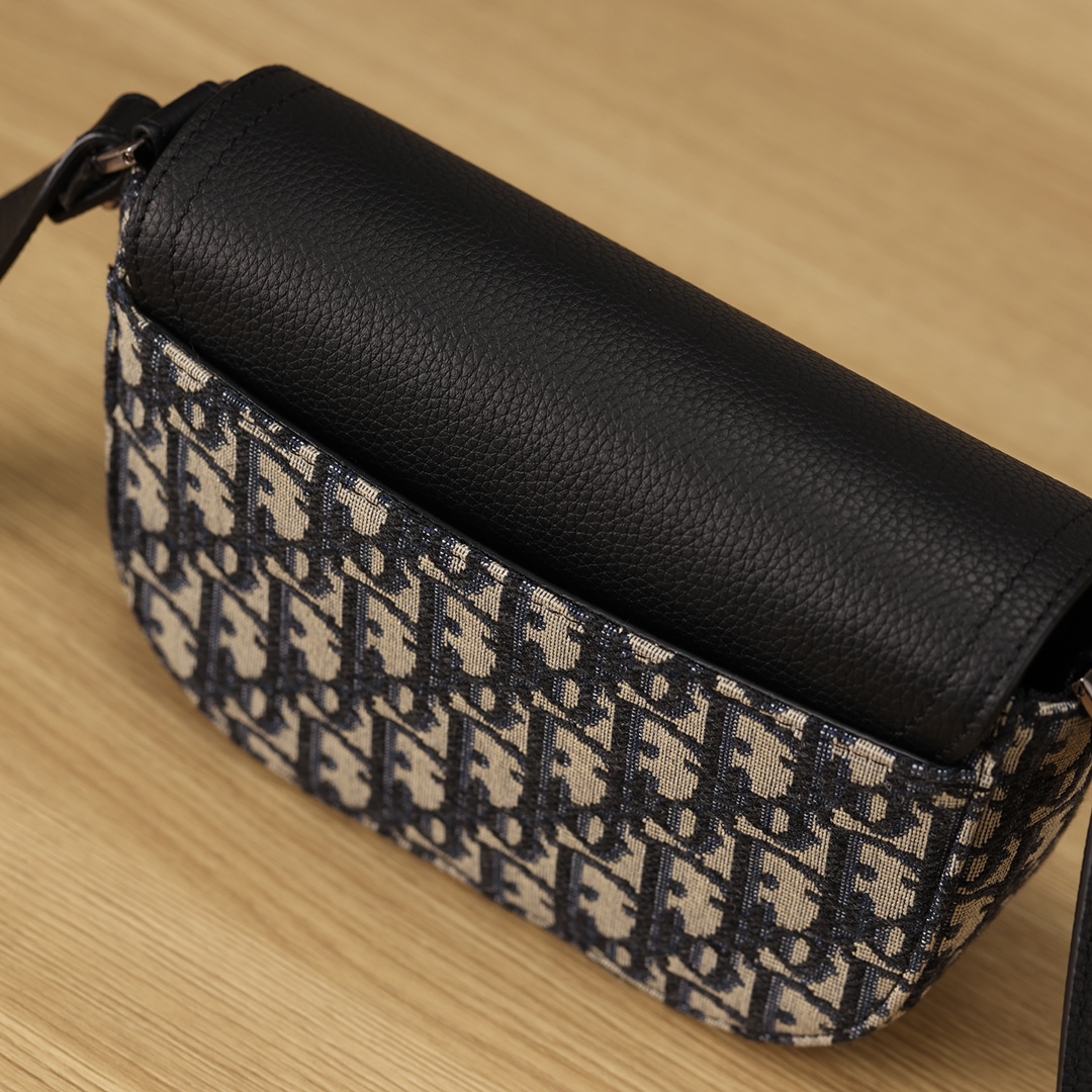采用米色和黑色, Obique 印花面料精心制作,搭配黑色粒面牛皮革马鞍翻盖和 Christian Dior 标志铝扣。