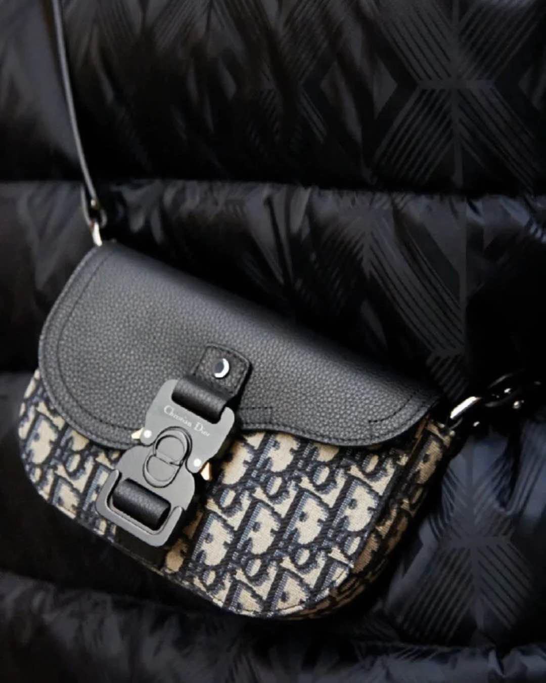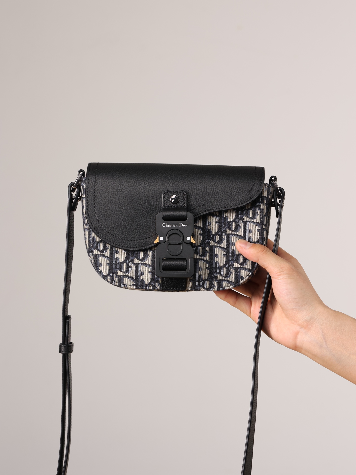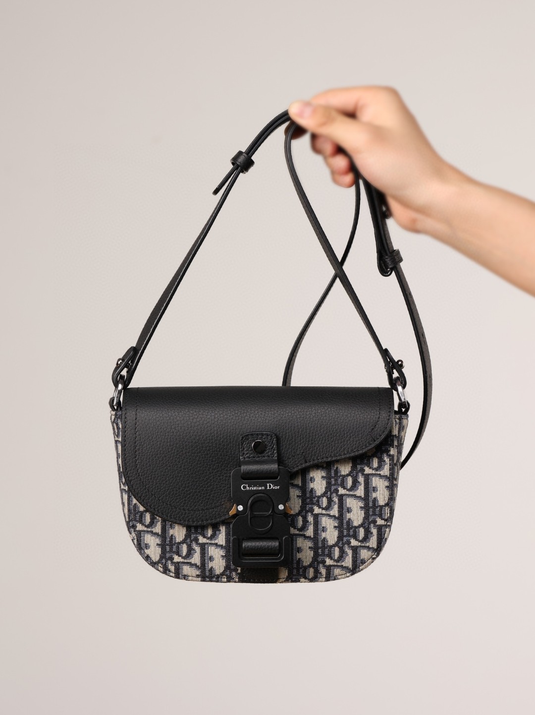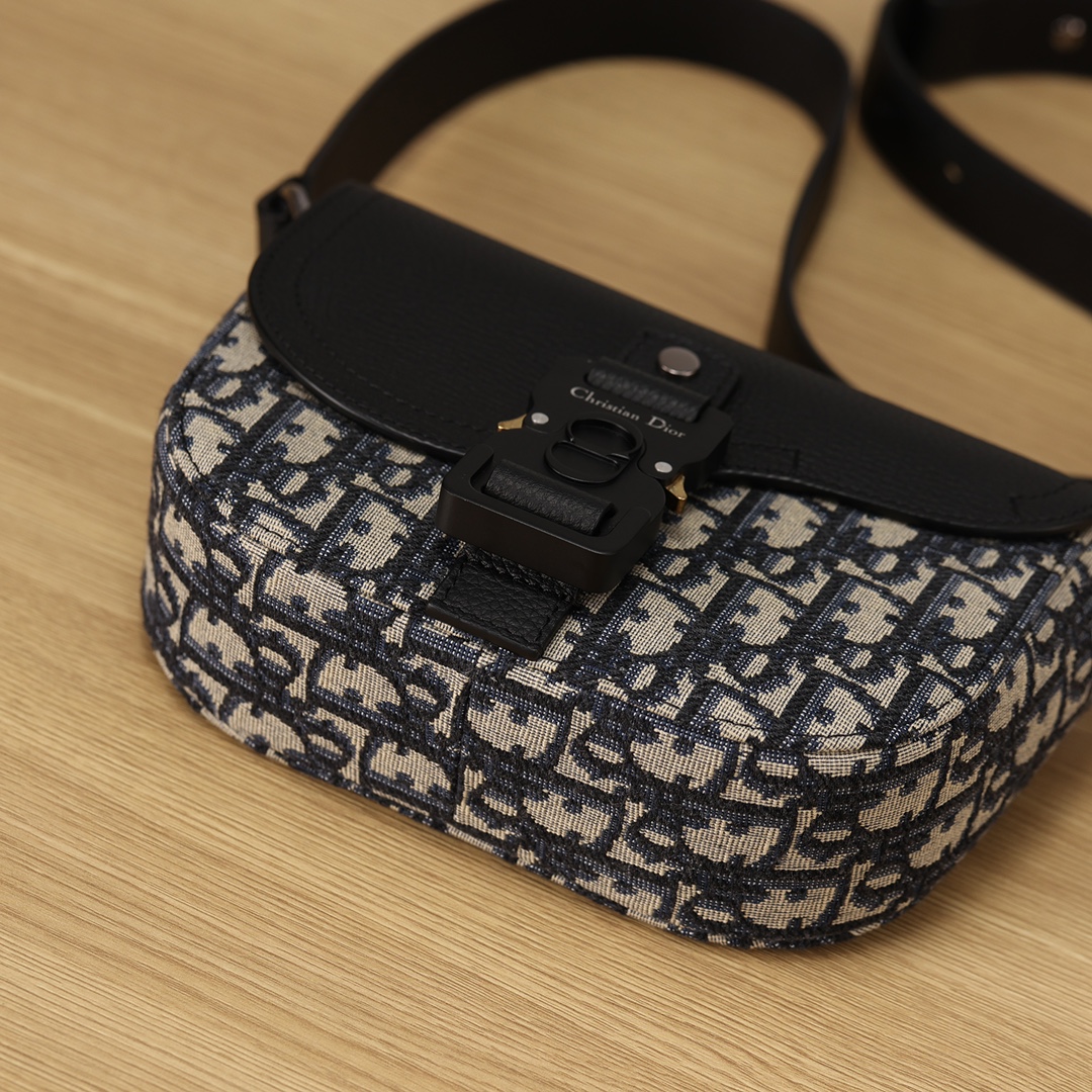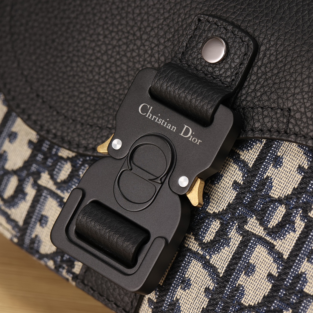 采用米色和黑色, Obique 印花面料精心制作,搭配黑色粒面牛皮革马鞍翻盖和 Christian Dior 标志铝扣。