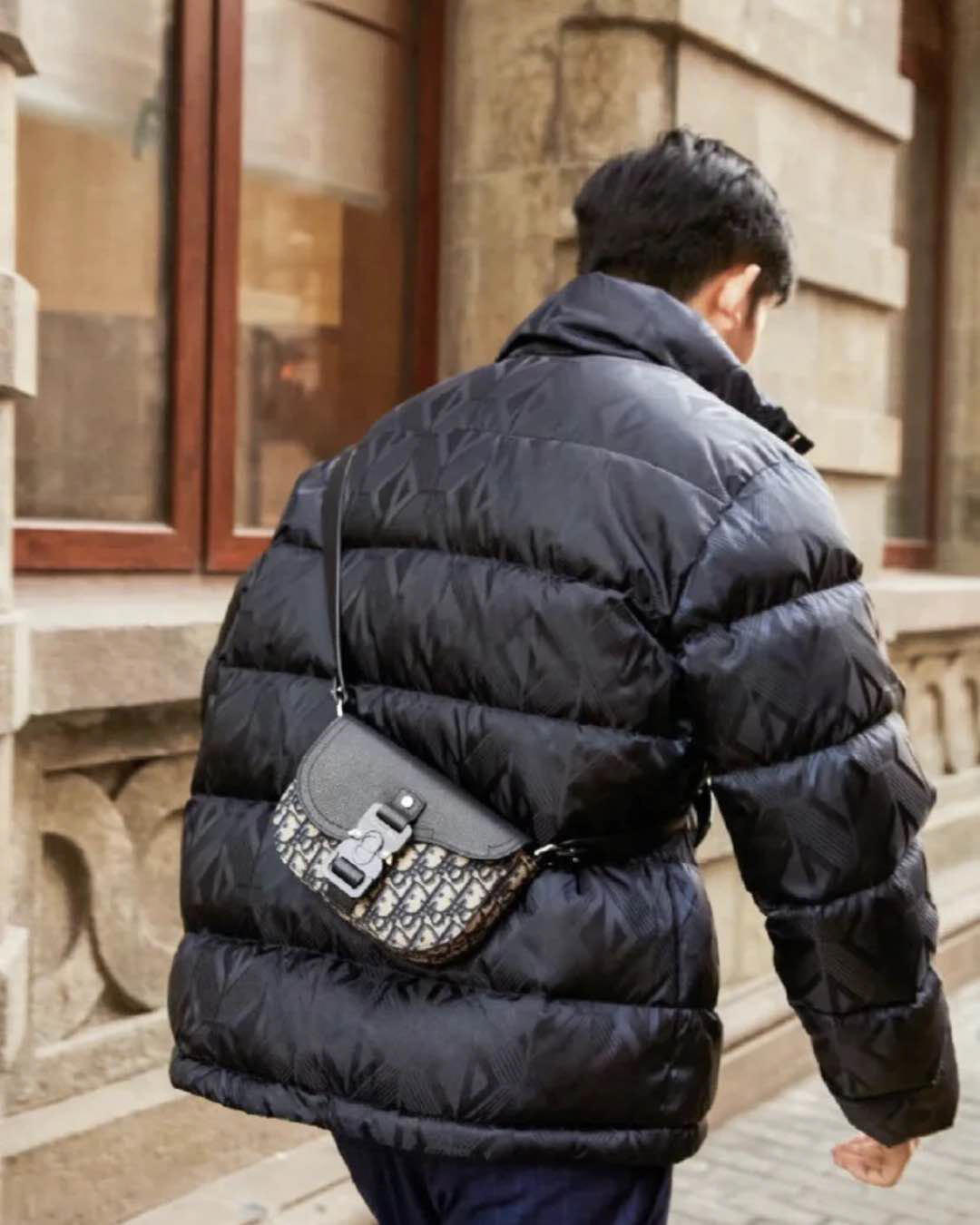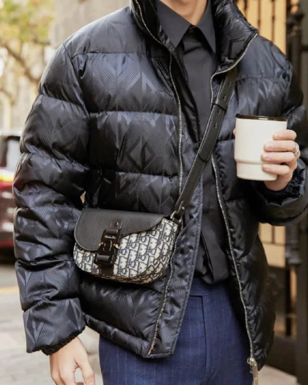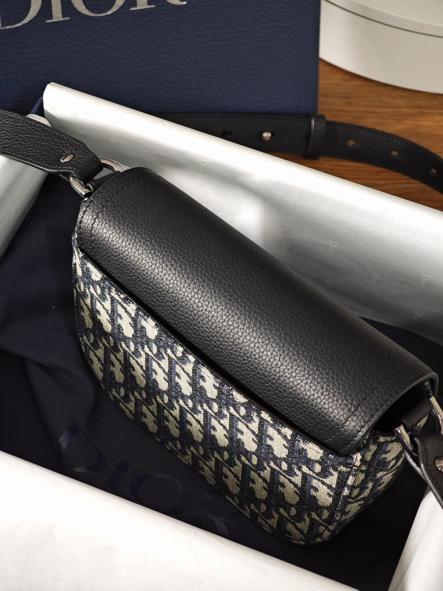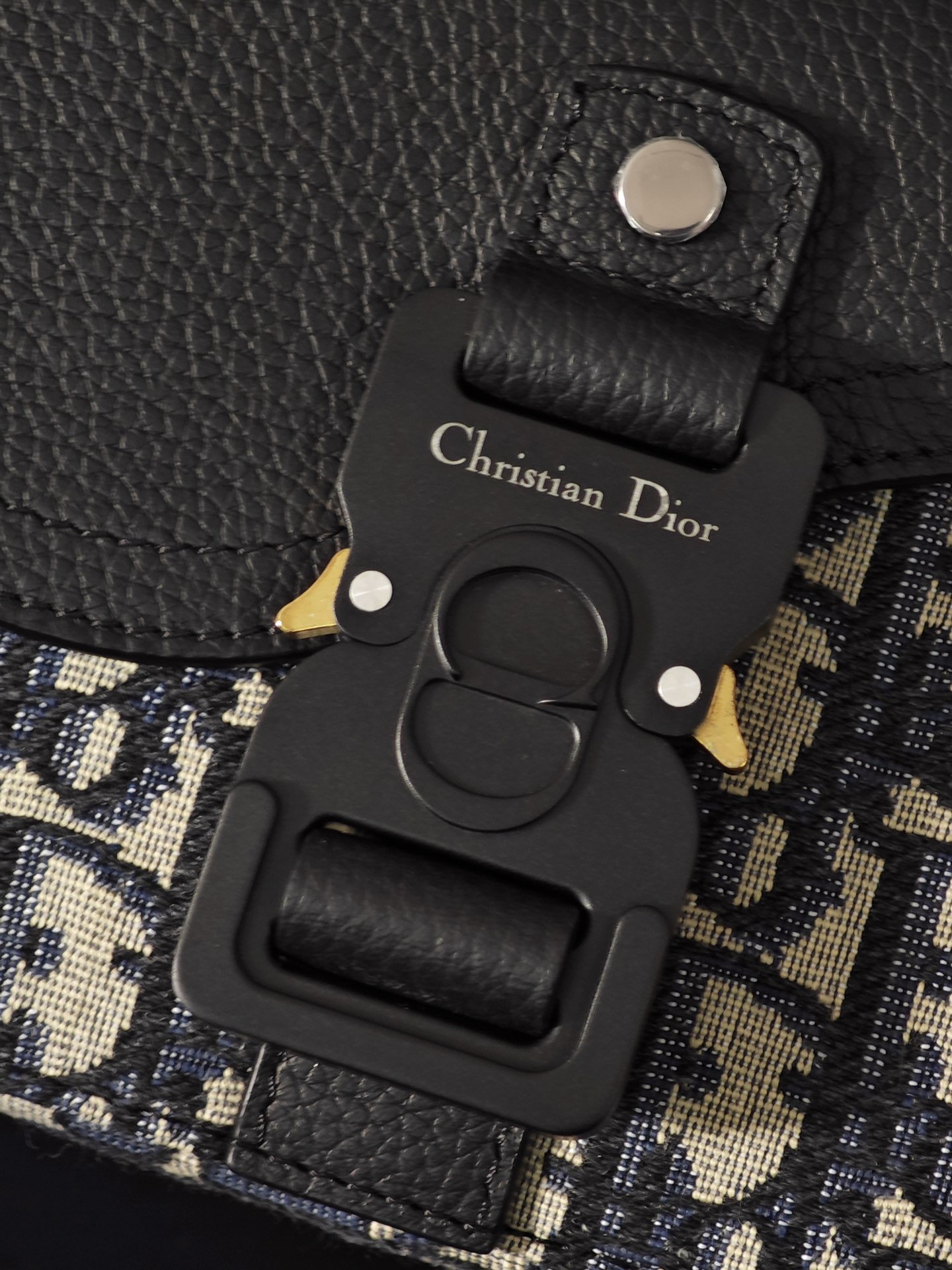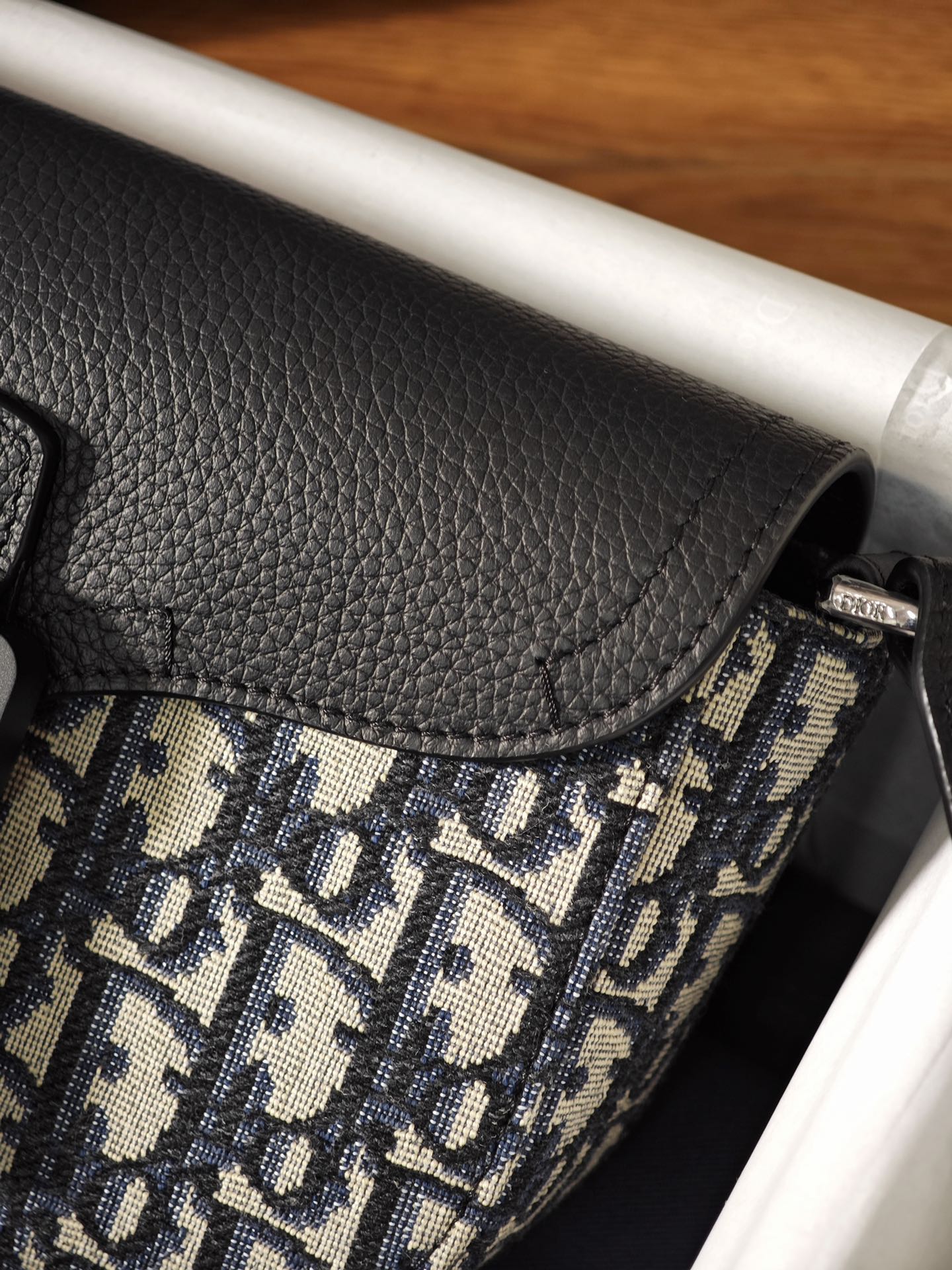 采用米色和黑色, Obique 印花面料精心制作,搭配黑色粒面牛皮革马鞍翻盖和 Christian Dior 标志铝扣。