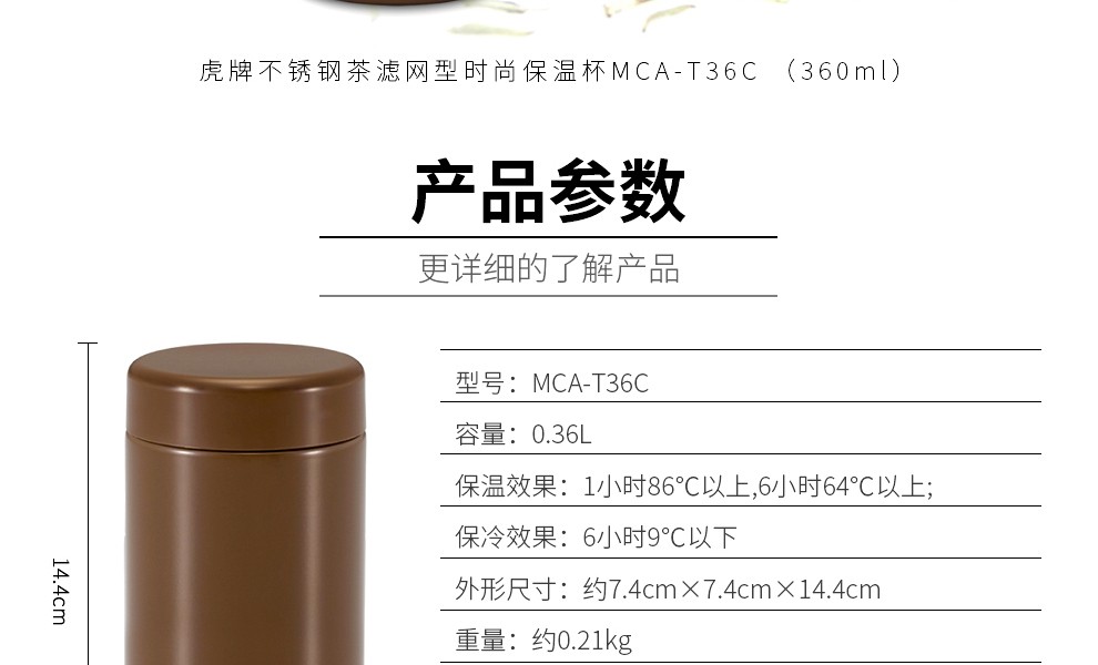 虎牌(TIGER) TIGER/虎牌茶滤网型保冷保温杯水杯 360ml MCA-T36C 茶滤网杯 奶白色WI