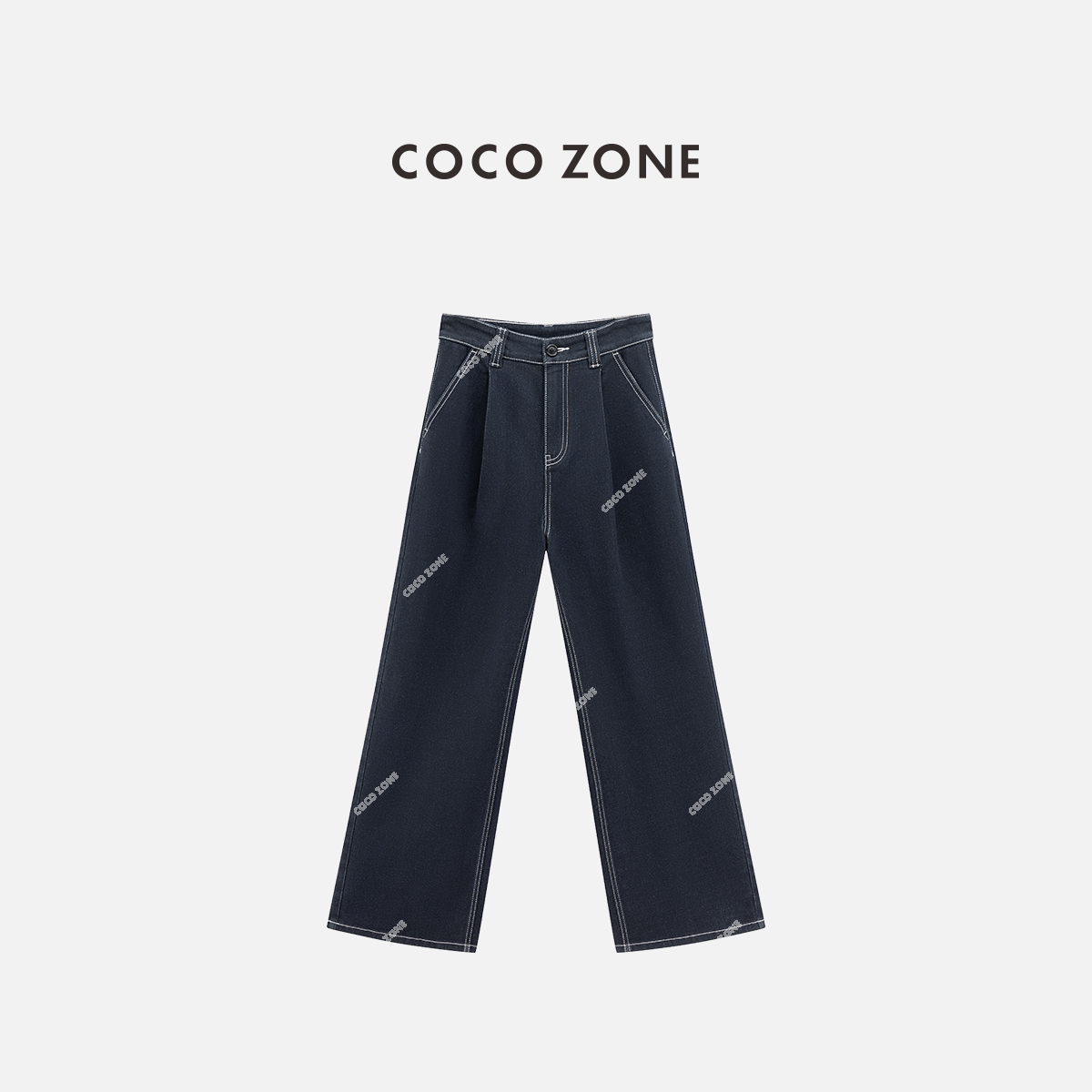 COCO ZONE 刘一一设计感明线百搭牛仔裤显瘦水洗直筒裤CC1C1583