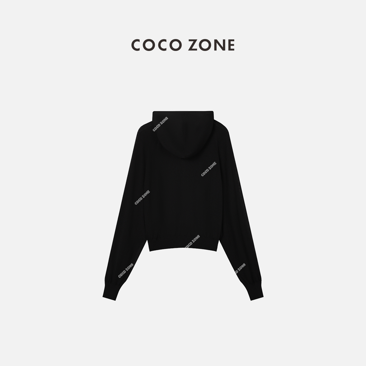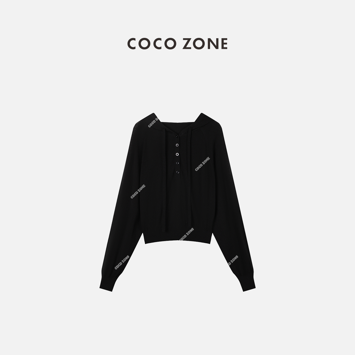 COCO ZONE 针织上衣束口长袖收腰下摆连帽系绳毛衣 23C29151