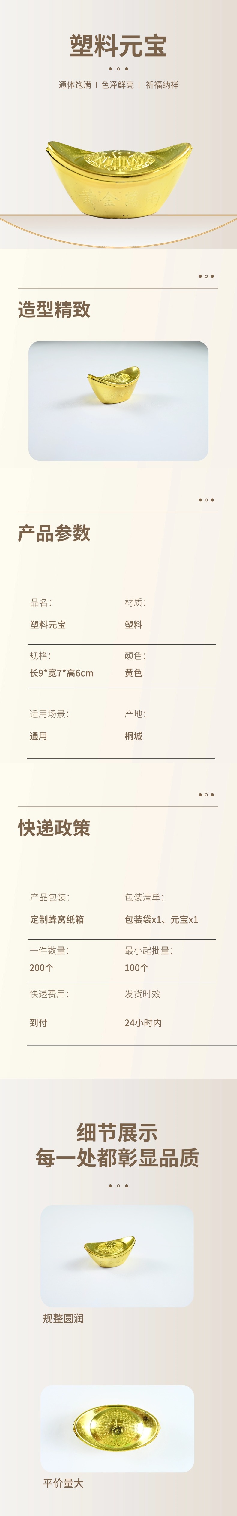 塑料元宝色泽鲜亮祈福纳祥通体饱满