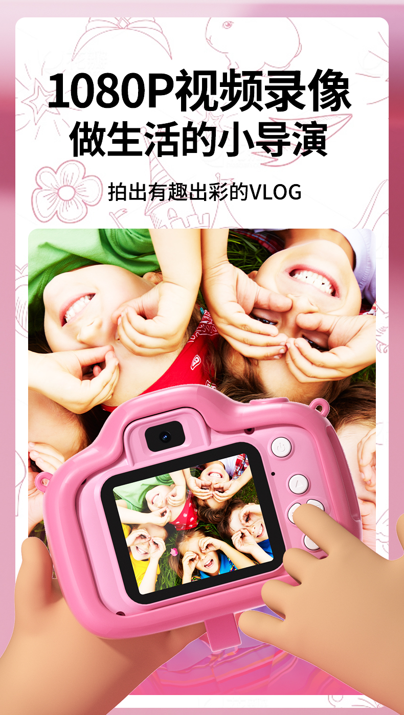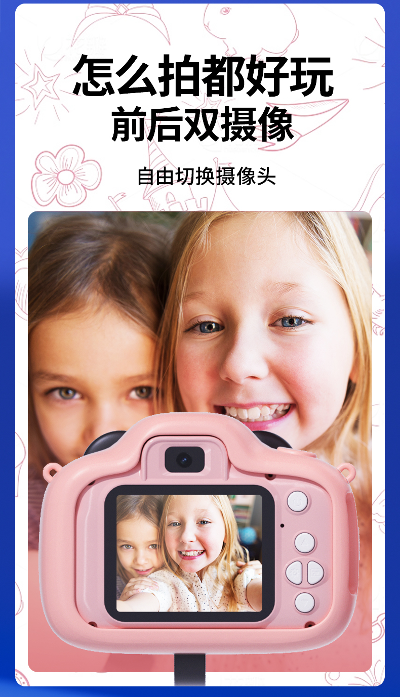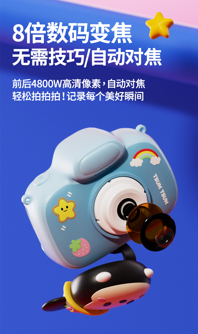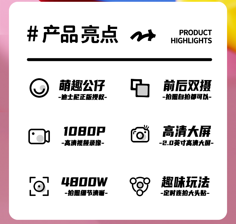【迪士尼新款拍拍乐】4800万前后双摄儿童相机 可拍照迷你数码照相机 男女孩生日 玩具礼物