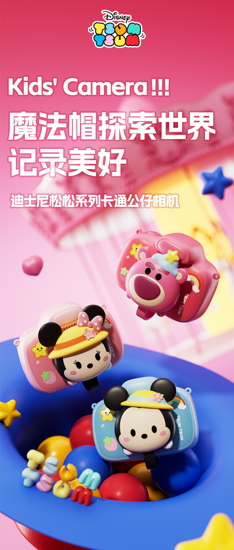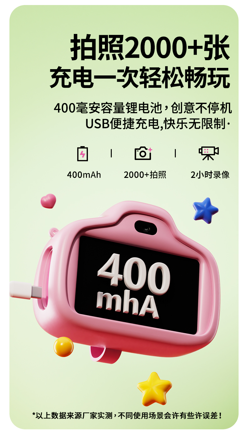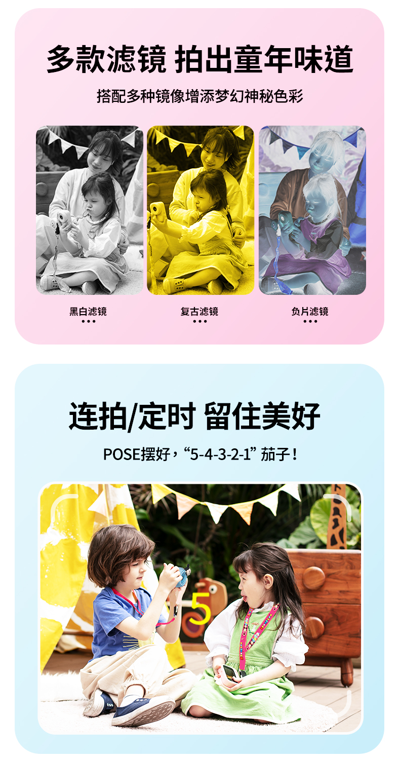 【迪士尼新款拍拍乐】4800万前后双摄儿童相机 可拍照迷你数码照相机 男女孩生日 玩具礼物